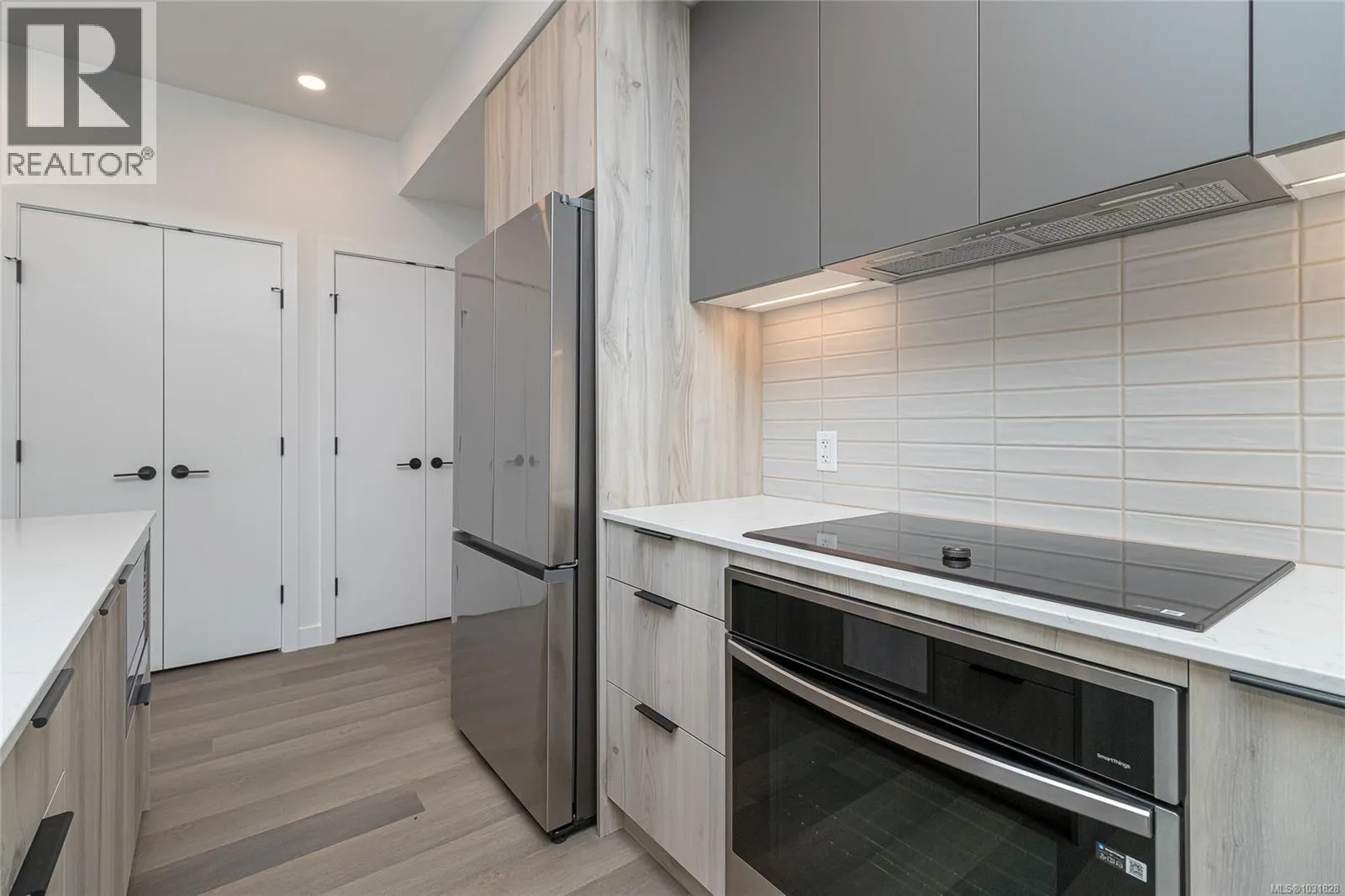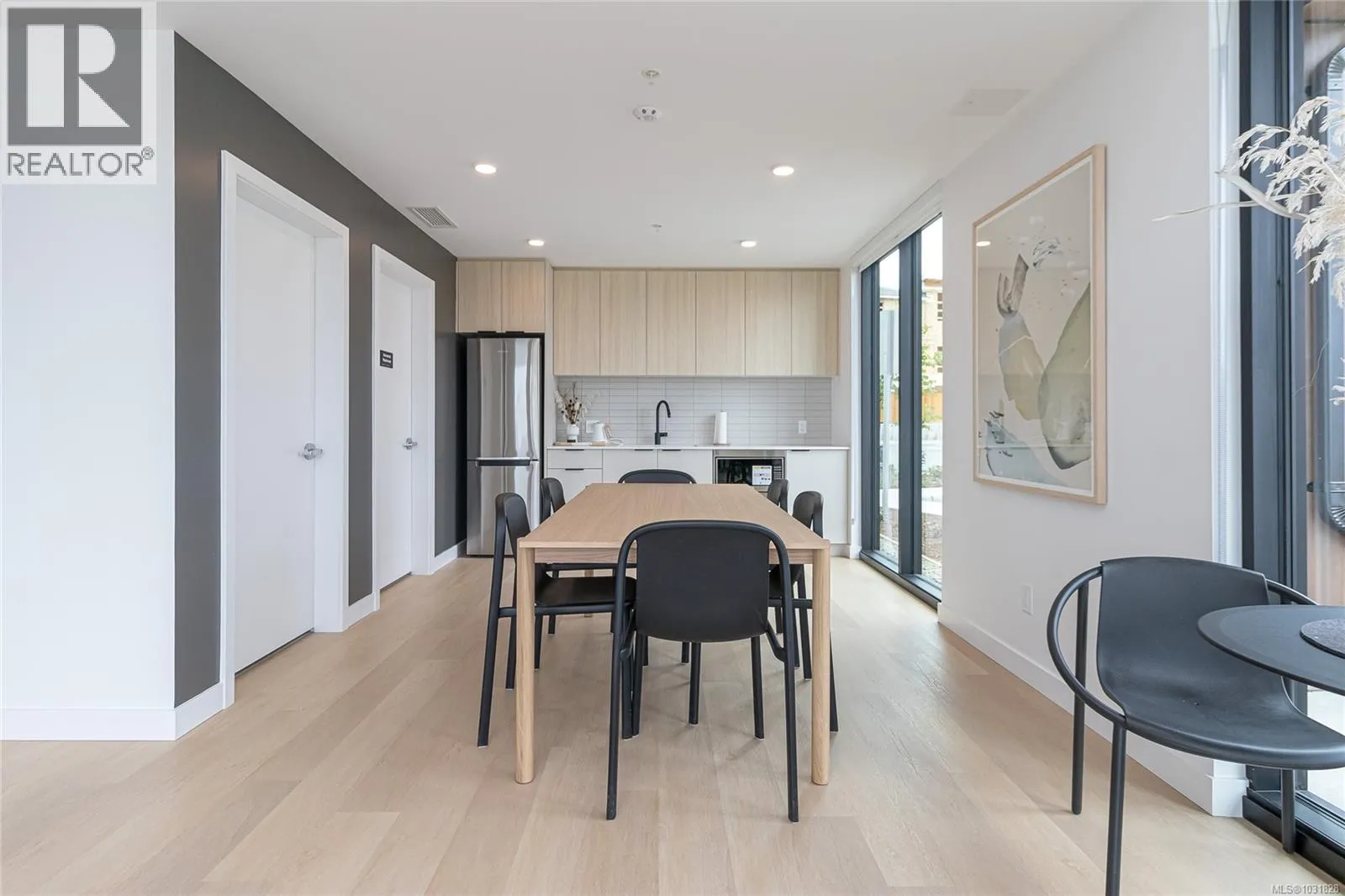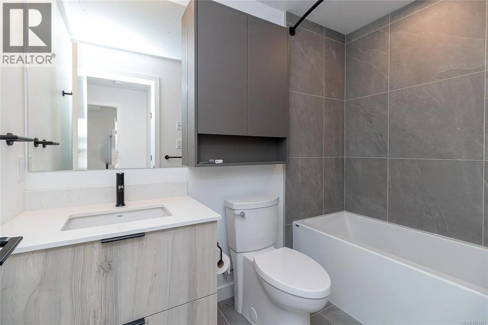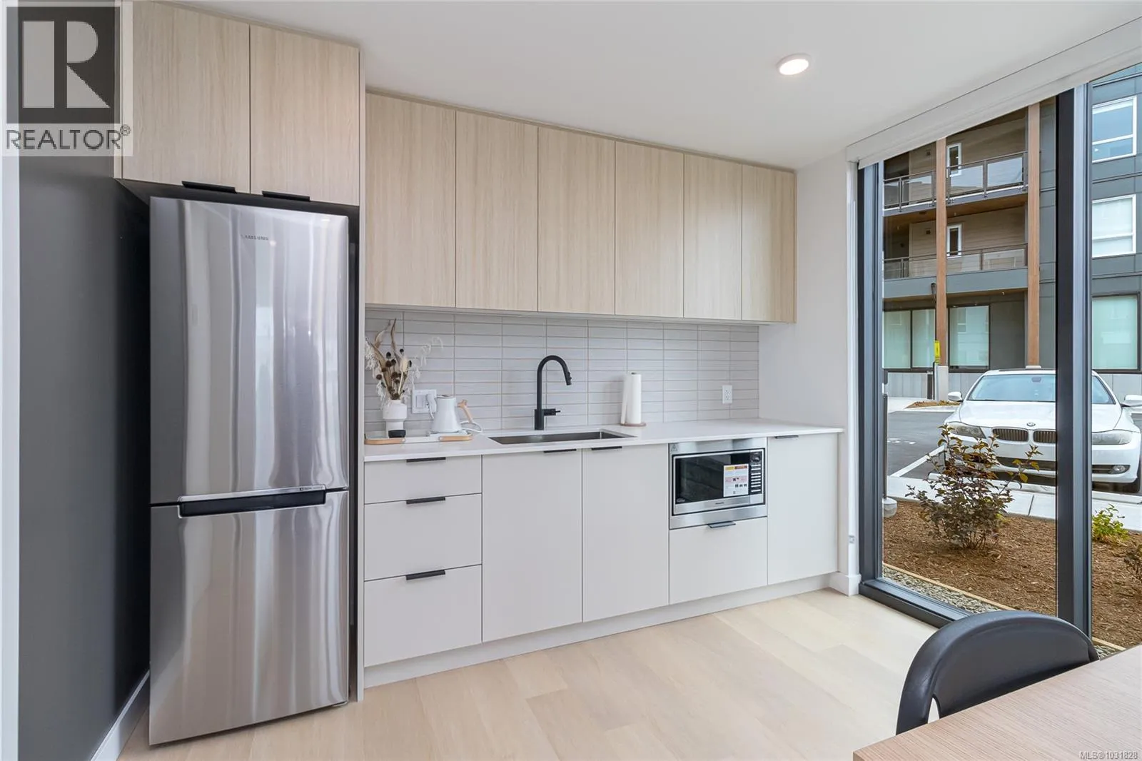 Welcome to The Eliza at Royal Bay! This spacious 2 bed, 2 bath condo offers a bright, open-concept layout with high ceilings and large windows. The modern kitchen features a large island, quartz countertops, and high-end appliancesâperfect for entertaining. The primary bedroom includes a well-appointed ensuite, with a second bedroom ideal for guests or home office. This unit Includes 2 parking stalls with EV charging. Building amenities feature a fitness centre, rooftop terrace, party room, and community garden plots. Located just steps to The Commons retail village with groceries, dining, and everyday amenities. The Eliza is surrounded by parks, green space, and extensive walking and biking trails. A fantastic opportunity to enjoy coastal community living in Royal Bay! (id:27476)