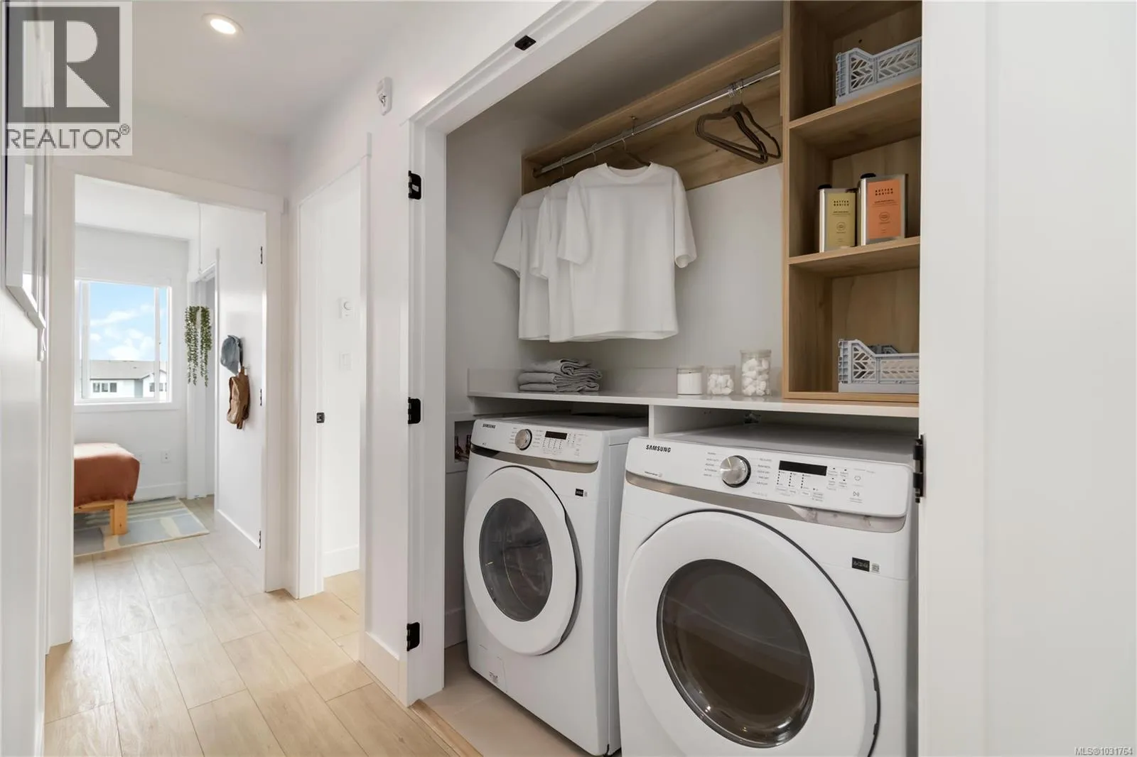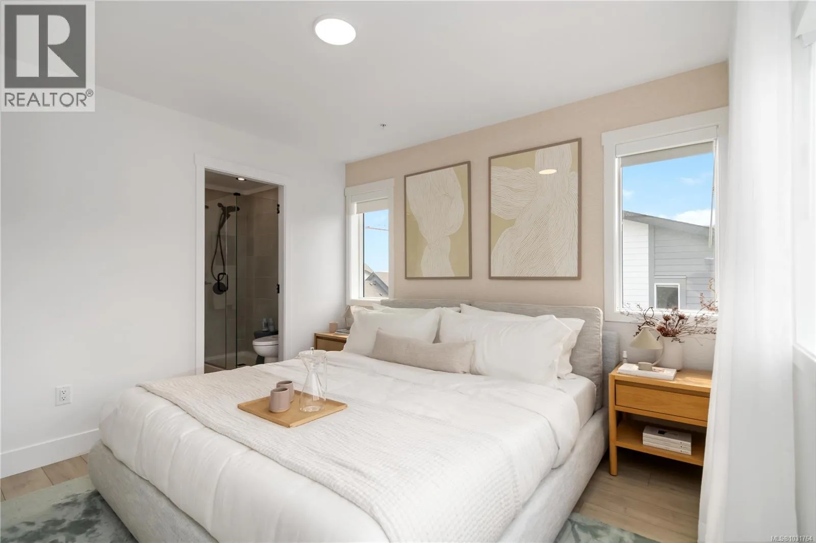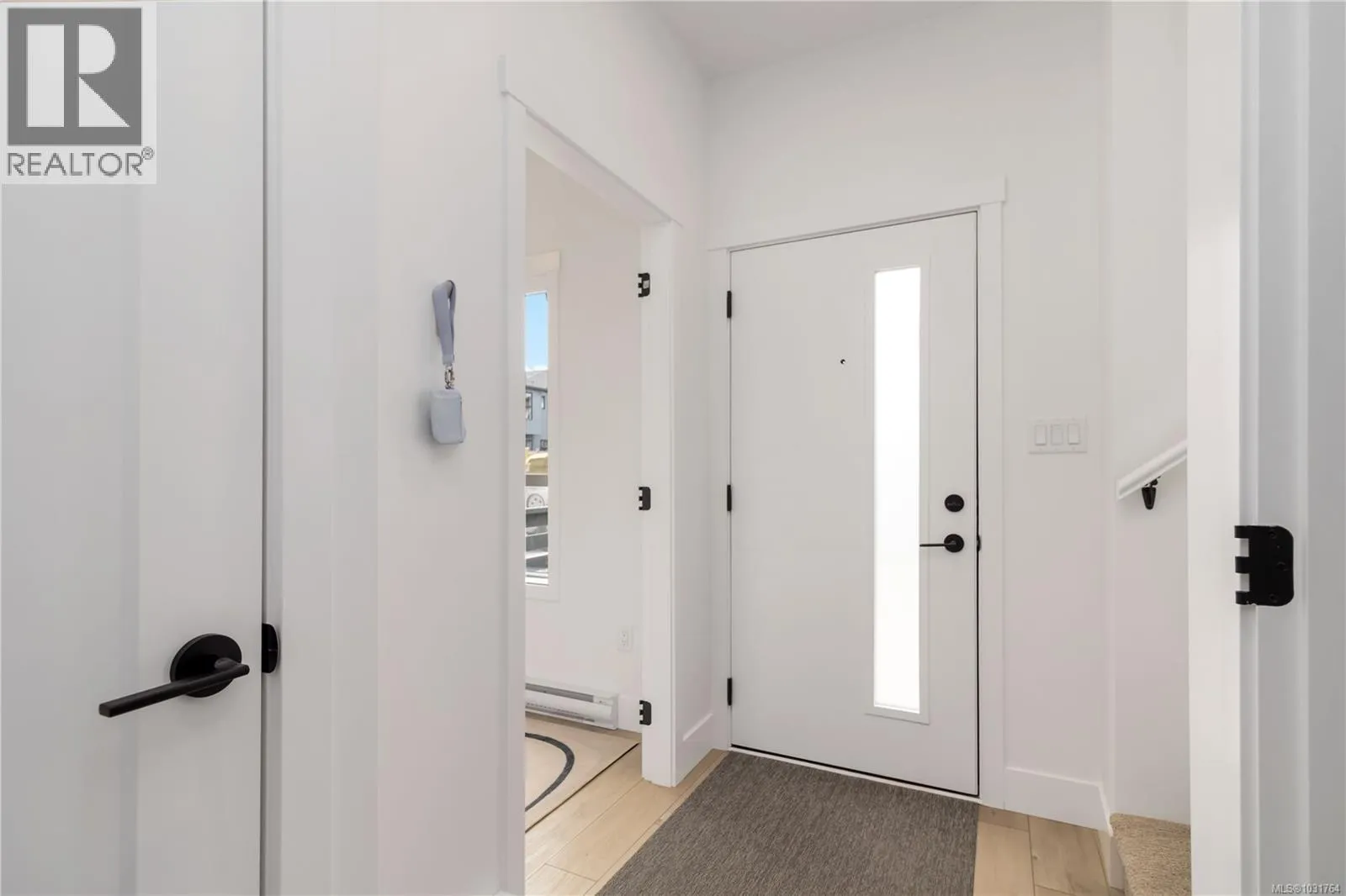 Exceptional Shoreline plan offers 1,475 sq. ft. of thoughtfully designed living space across 3 levels. Elegant designer interiors, the open-concept main floor features 9' ceilings, gourmet kitchen with modern appliances, engineered stone countertops, two-tone cabinetry, & matte black hardware, flowing seamlessly to a generous dining area, living rm, & large private balcony. Upper hosts 3 bedrooms including a serene primary suite with walk-in closet & frameless glass ensuite. Lower level flex rm offers ideal space for an office, gym, or guest rm alongside a built-in garage. Premium finishes throughout include luxury vinyl plank flooring, large-format tiled bathrooms, & ductless heat pump. Professionally landscaped yard with private patio, wood fencing, & personal entry gate. Steps to Royal Bay's ample amenities, parks, and the oceanfront. Visit the HomeStore at 394 Tradewinds Ave, Sat to Thurs 12â4 pm. Price is plus GST; measurements are approximate. Photos are of a similar show home. (id:27476)