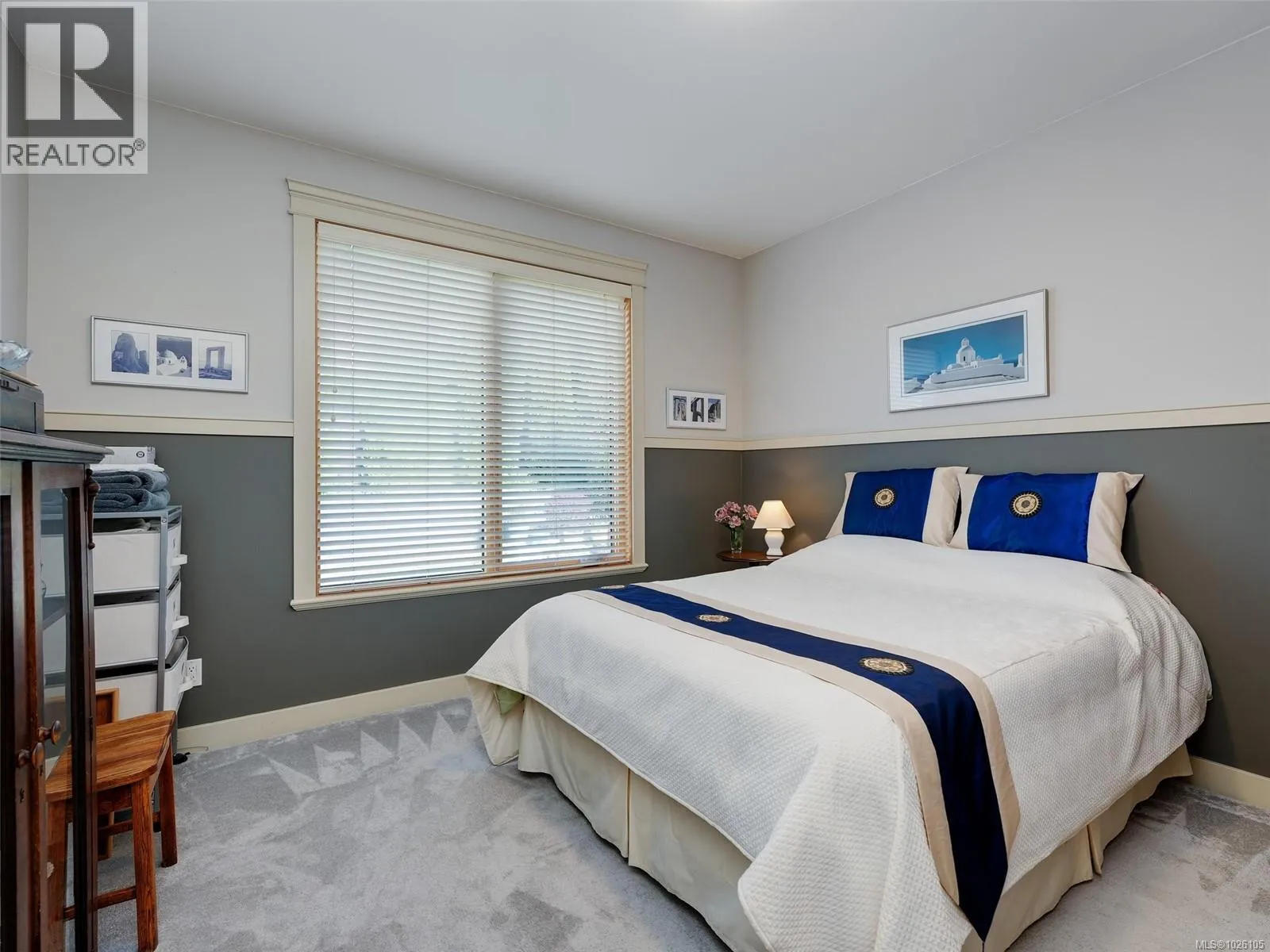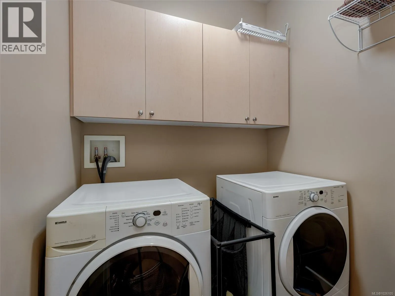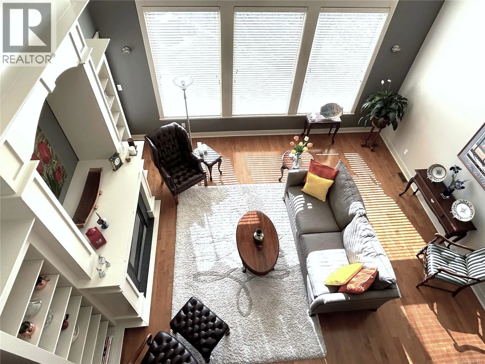 EXECUTIVE LATORIA WALK TOWNHOUSE. Featuring a spacious quality built 2 bed plus den, 3 bath home with vaulted 18â ceilings and a loft area overlooking the living room with an abundance of windows to let the natural light in. The open floor plan features hardwood floors, custom built-ins, gas fireplace and a beautifully appointed kitchen with quartz counters, SS appliances, gas stove and eating nook. Main floor primary includes walk-in closet, 5-pce ensuite and a private balcony. Lower level offers large den/media/family room, plus ample storage. Private west-facing yard with patio & garden, front courtyard, full length driveway (rare in this complex), extra large double garage & new heat pump (2023), A/C. You will appreciate the private yard space with garden shed and BBQ gas hook up. A well run and pet friendly strata. Conveniently located steps to Red Barn Market, Pharmasave & walking distance to Olympic View Golf Club. (id:27476)