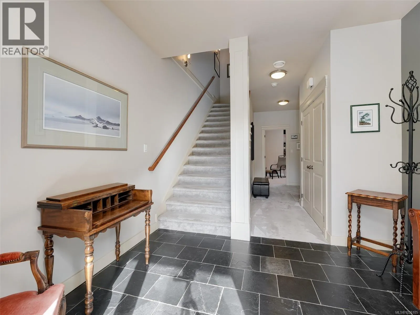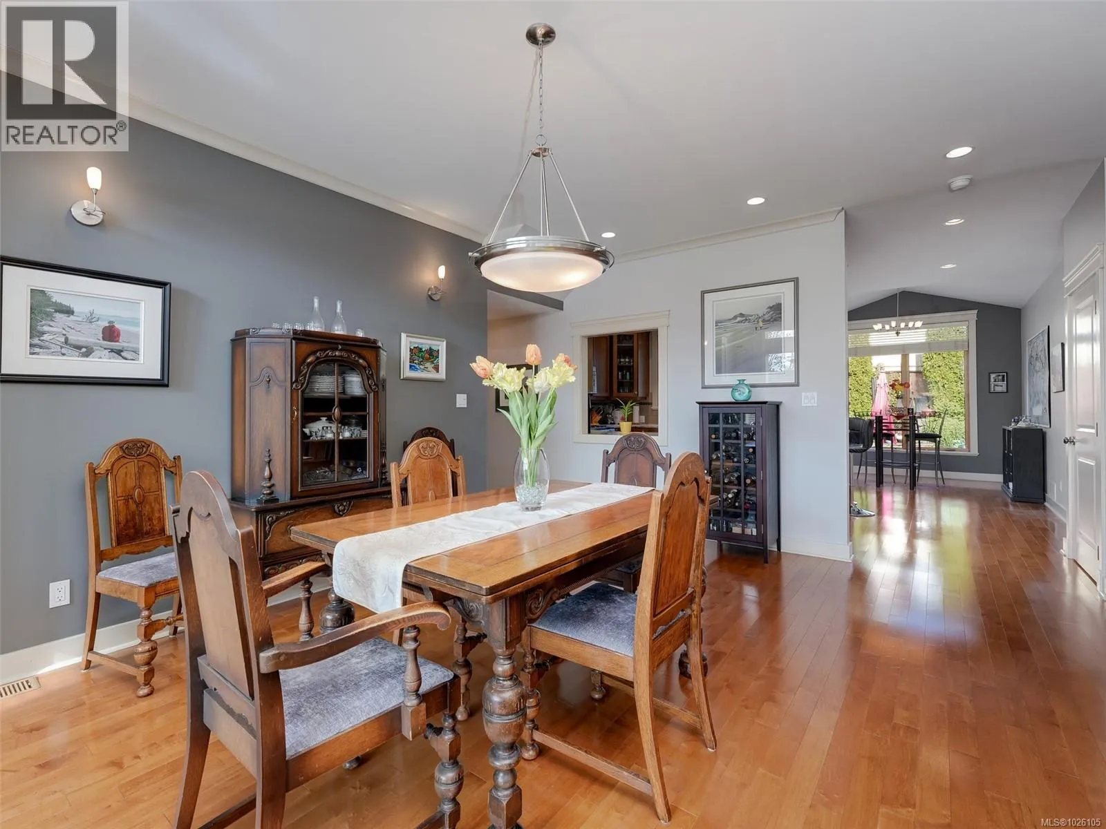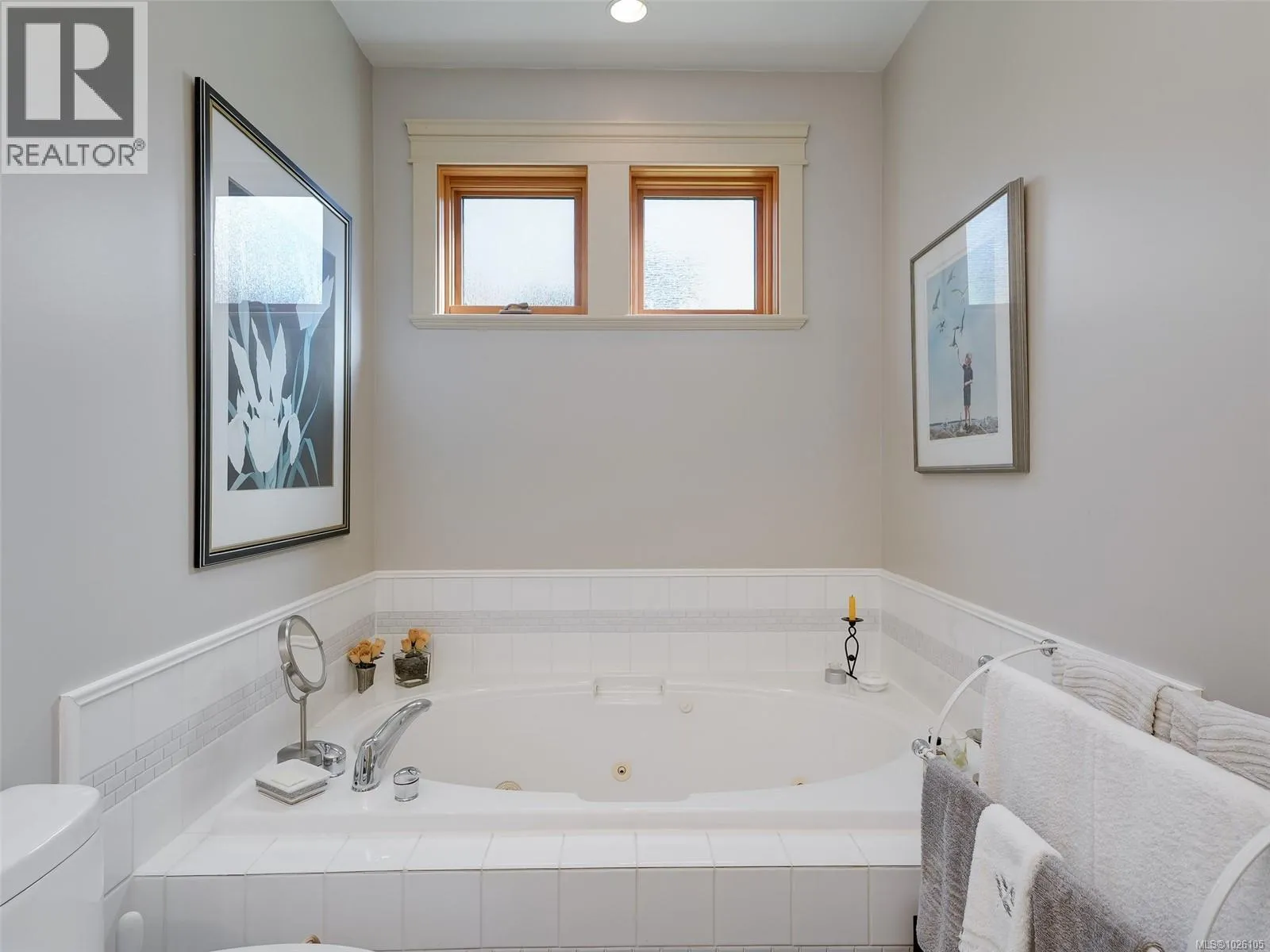 EXECUTIVE LATORIA WALK TOWNHOUSE. Featuring a spacious quality built 2 bed plus den, 3 bath home with vaulted 18â ceilings and a loft area overlooking the living room with an abundance of windows to let the natural light in. The open floor plan features hardwood floors, custom built-ins, gas fireplace and a beautifully appointed kitchen with quartz counters, SS appliances, gas stove and eating nook. Main floor primary includes walk-in closet, 5-pce ensuite and a private balcony. Lower level offers large den/media/family room, plus ample storage. Private west-facing yard with patio & garden, front courtyard, full length driveway (rare in this complex), extra large double garage & new heat pump (2023), A/C. You will appreciate the private yard space with garden shed and BBQ gas hook up. A well run and pet friendly strata. Conveniently located steps to Red Barn Market, Pharmasave & walking distance to Olympic View Golf Club. (id:27476)