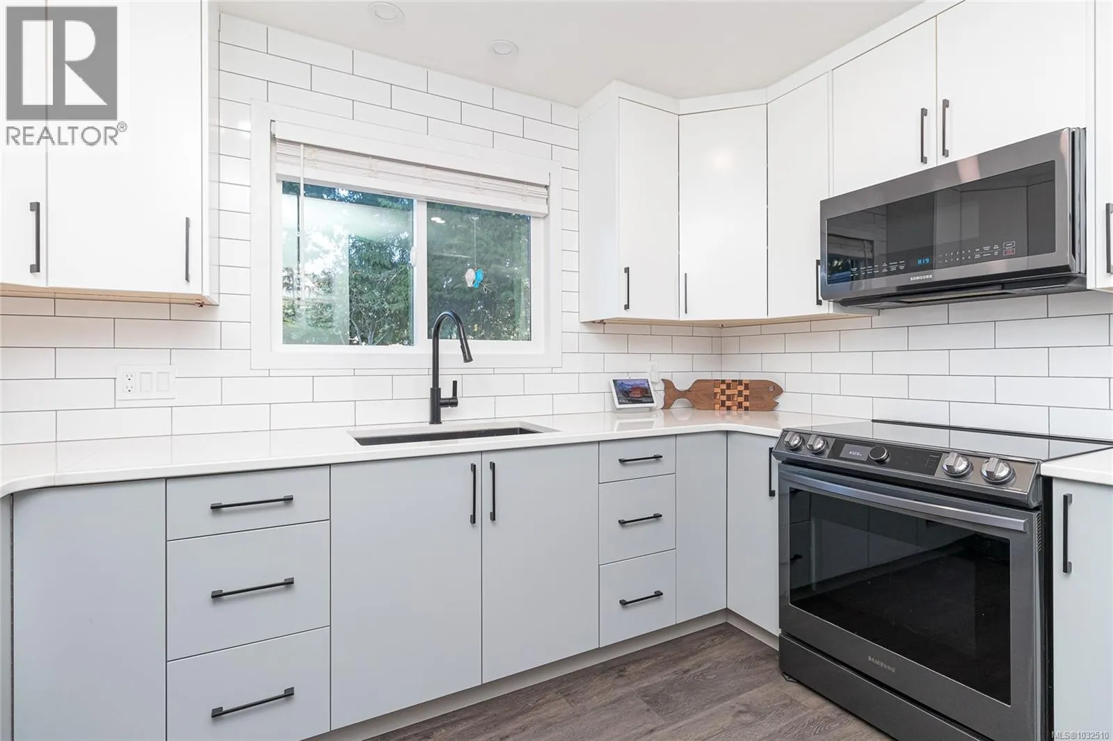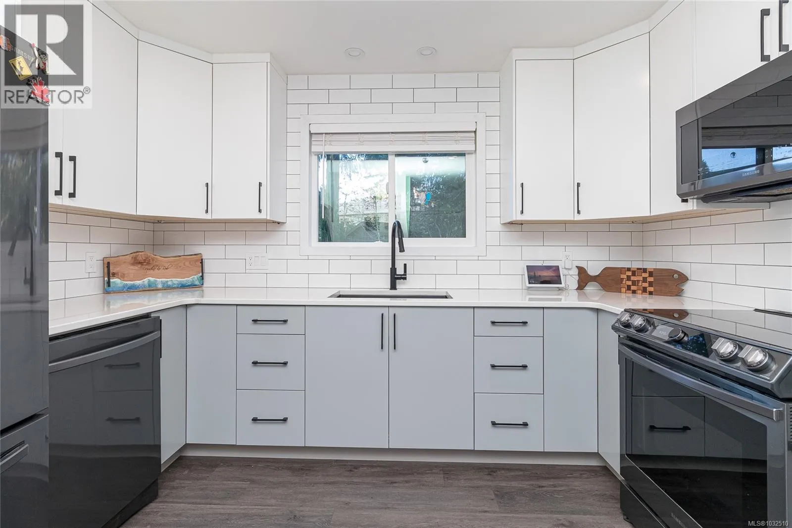 Open House Sat 1-3 Pm. Welcome to B 614 Evans Dr, a beautifully updated single level home offering over 1,200 sq ft of bright and functional living space. The open layout features a spacious living room with a modern fireplace, flowing into the dining area and a fully renovated kitchen with white cabinetry, subway tile backsplash, stainless steel appliances, and ample counter space. The home offers three well-sized bedrooms, a stylishly updated bathroom, and a dedicated laundry area. Step outside to a standout backyard with a large patio, covered seating area, and beautifully maintained lawn, perfect for entertaining or relaxing year-round. A detached shed provides extra storage, and the carport adds convenience. Located in a quiet, family-friendly area close to parks, schools, and amenities. (id:27476)