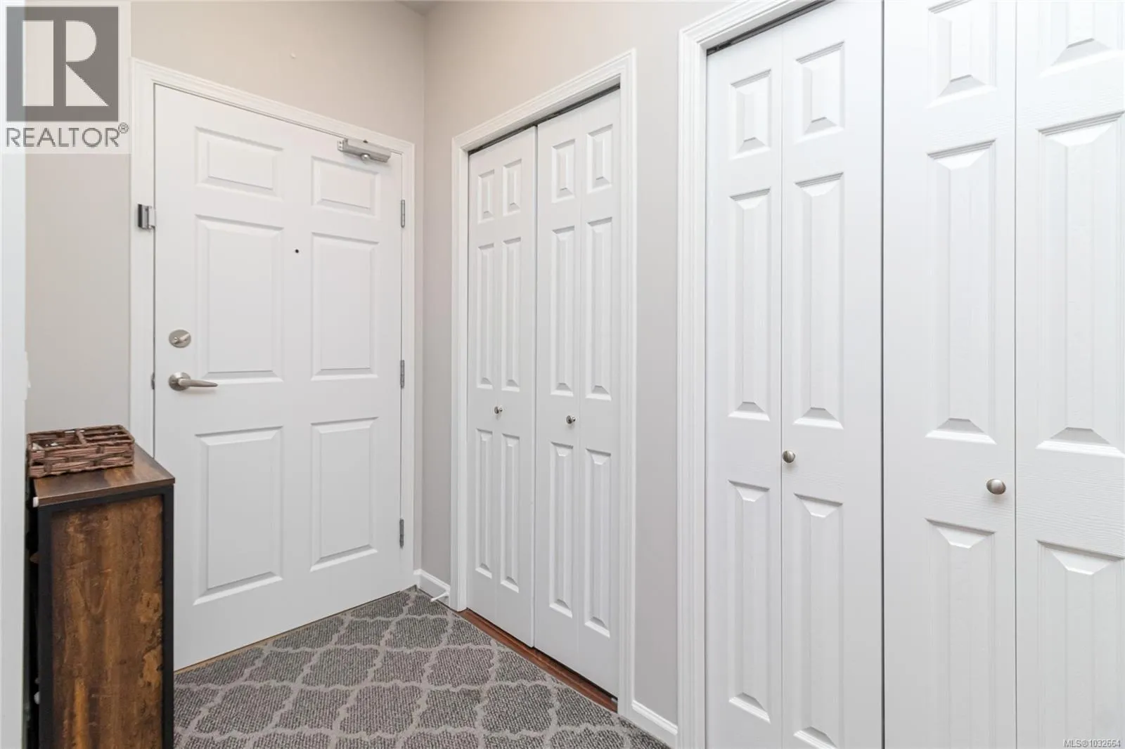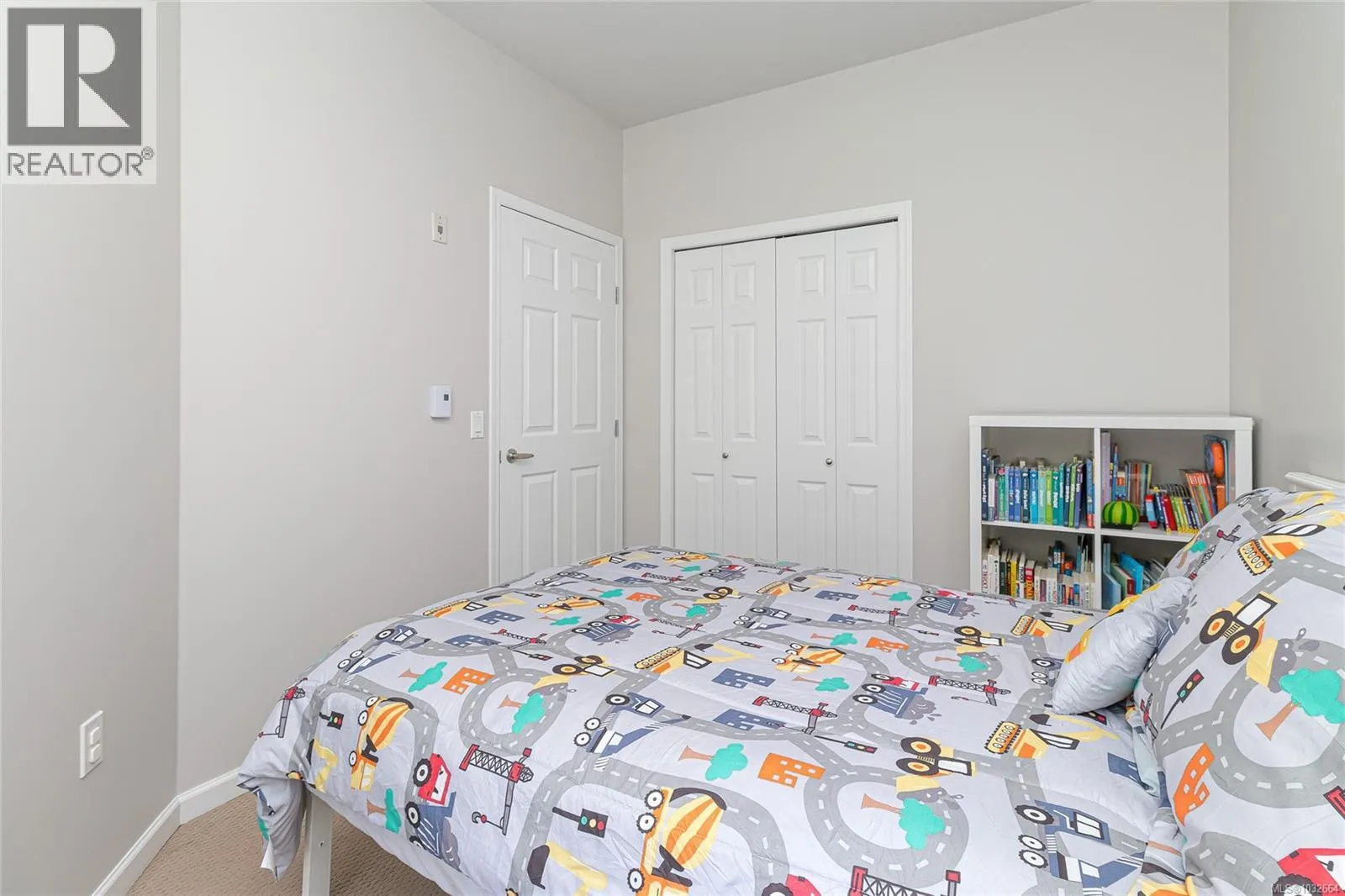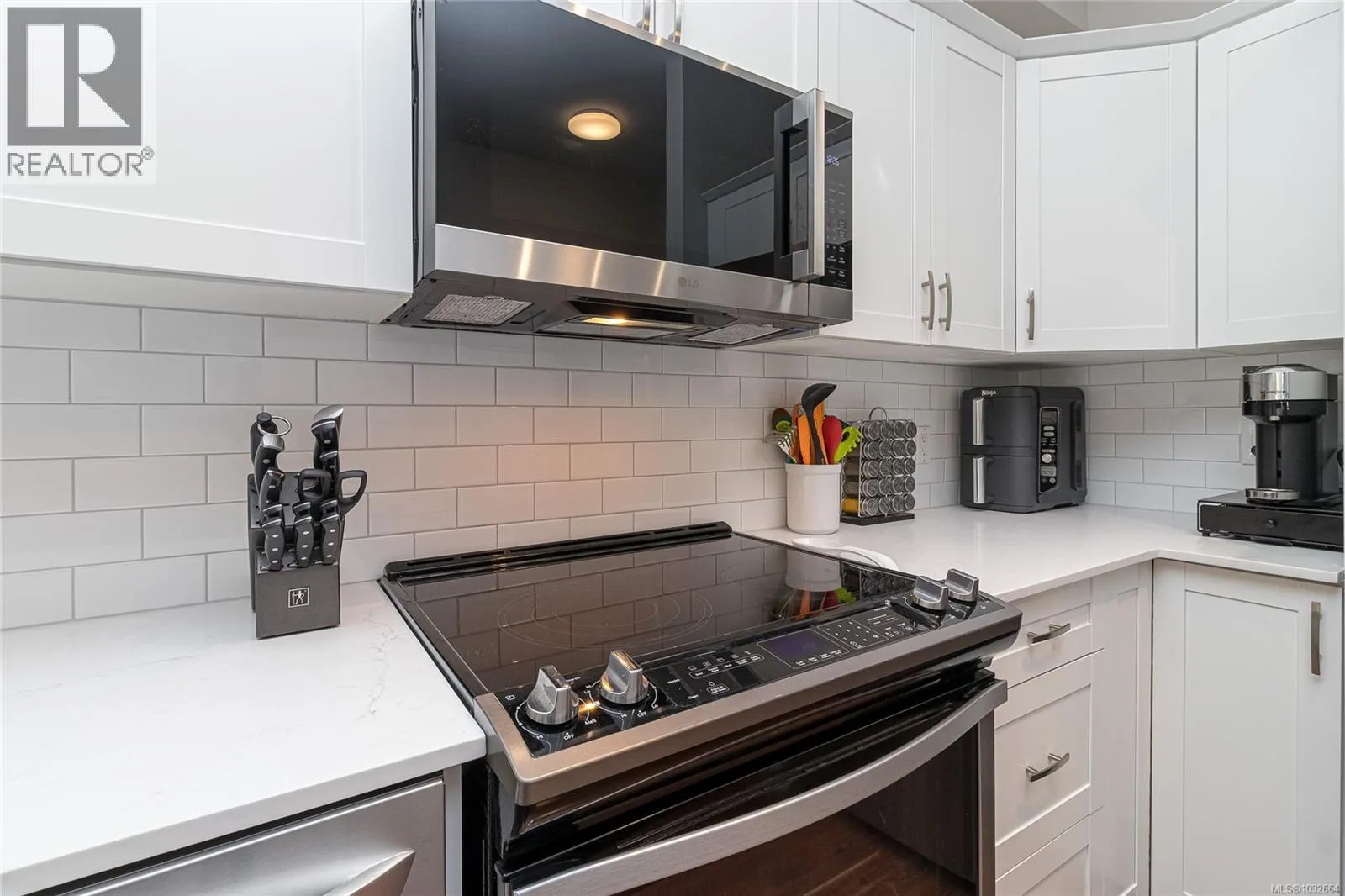 Sun-soaked, south-facing top floor condo overlooking Colwood Golf Course! This beautifully updated 2 bedroom, 2 bathroom home offers a bright, open-concept layout with thoughtful design throughout. The spacious primary bedroom features a walk in closet, ensuite, while large windows fill the living space with natural light and frame peaceful views of towering fir trees. Step out onto your private deck and enjoy the serene outlook. Tastefully updated with fresh paint, new stainless steel appliances, quartz countertops, a classic subway tile backsplash, and modern light fixtures, this home is truly move in ready with nothing left to do. Built in 2005, this well-maintained complex offers secure underground parking, storage lockers, a separate clubhouse, fitness room, bike storage and a large rooftop deck just down the hall. Ideally located steps to grocery stores, shops, restaurants, transit, and the Galloping Goose Trail, and only minutes to JDF Recreation Centre, parks, and beaches. (id:27476)