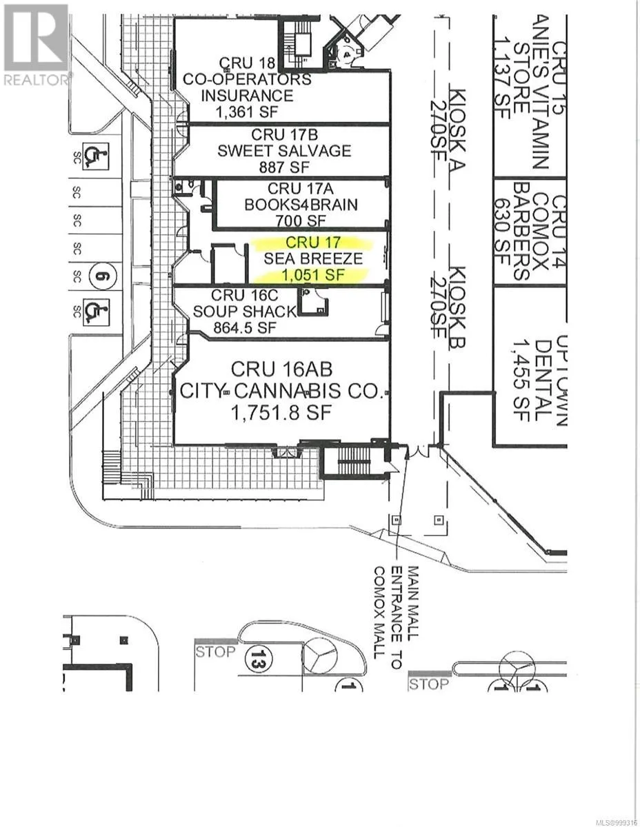 Immaculate commercial space to lease In the heart of downtown Comox In the Comox Center Mall. Space here rarely becomes available so don't miss your opportunity In this thriving location; The unit extends to 1,051 sq ft and has air conditioning and HVAC; Includes washroom and store rooms as well as the main retail area. Ground level access from Inside the Comox Mall, no stairs, wheelchair accessible. Shops, services, restaurants, medical and dental clinics, public transit all in the mall or nearby; Extensive mall parking available. Perfect retails uses include Salons, Shoe Sales or service uses like Chiropractors etc. Some restrictions to apply, ask listing realtor for further information. (id:27476)