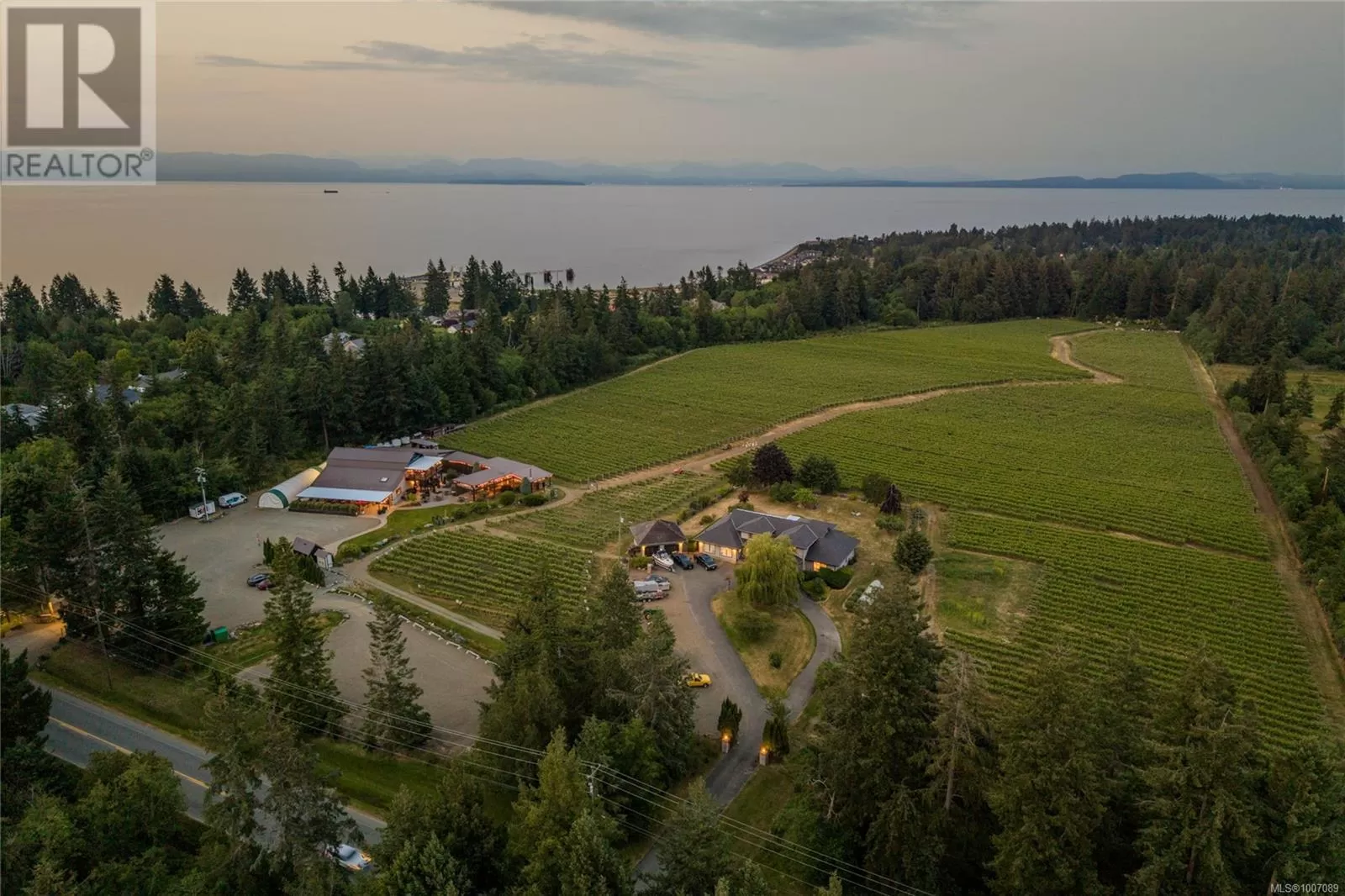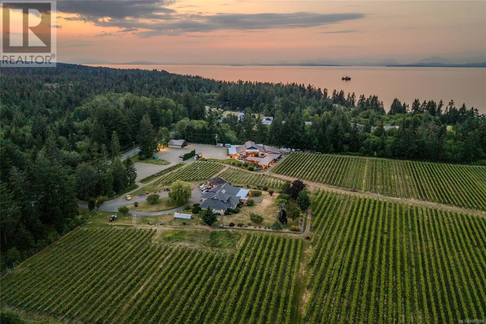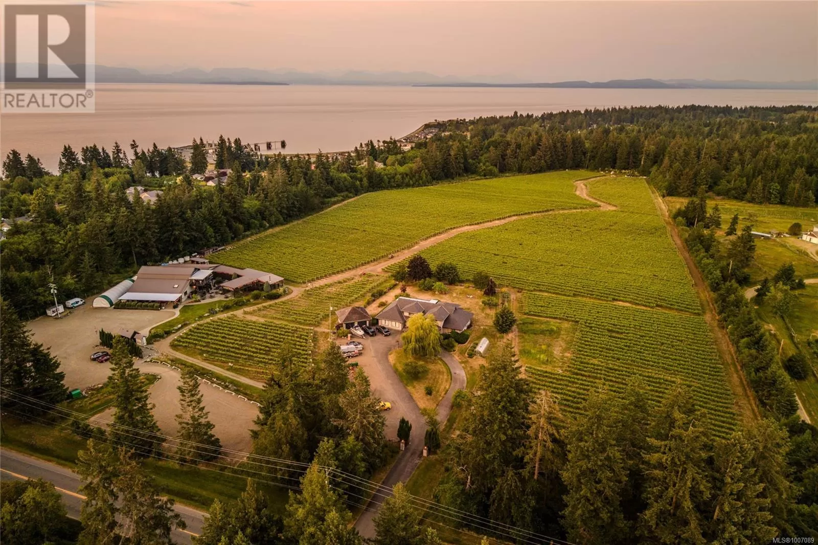 Presenting the offering of 40 Knots Estate Winery. This beloved Comox Valley business is situated on an idyllic, ocean-adjacent 23.5 acre estate. The offering includes the owned property, lease on the neighbouring property, equipment, business assets, and inventory (in addition to the listing price).The coastal property has 20.5 acres of vineyard planted with cool climate varietals. The vineyard is both sustainably and efficiently farmed - one of the only fully automated boutique vineyards. 40 Knots produces award-winning wines and ciders with their highest regarded wines and ciders scoring 93 points. Wine styles range from traditional sparkling wines to silky Pinot Noirs to Normandy-style ciders. Along with producing and selling wine, 40 Knots Winery has a popular vineyard terrace event centre able to host weddings, meeting, and corporate events year-round with panoramic vineyard views. The property structures include the 8,003 square foot winery building (home to the tasting room and production facilities), the event centre with 1,600 square feet of dining space, the 4,741 square foot country estate house, a 1,200 square foot workshop/shed, a washroom facility, and a pump house for irrigation. The property has municipal water and a well maintained septic system. With 4 bedrooms and 5 bathrooms, the character estate house features a primary bedroom with two closets and ensuite with soaker tub, a spacious kitchen with breakfast nook, two propane fireplaces, granite countertops, a large dining room with wet bar, a living room, a sitting room, a family room, and a spacious home office. The Comox Valley is an emerging wine region, offering superior growing conditions to other areas in Canada and a temperate Mediterranean climate. The winery is located close to the Comox Valley Airport, CFB, and Highway 19. The ferry to Departure Bay from the mainland is just 1.25 hours away. We respectfully ask that you do not disturb the staff regarding the sale of the business (id:27476)