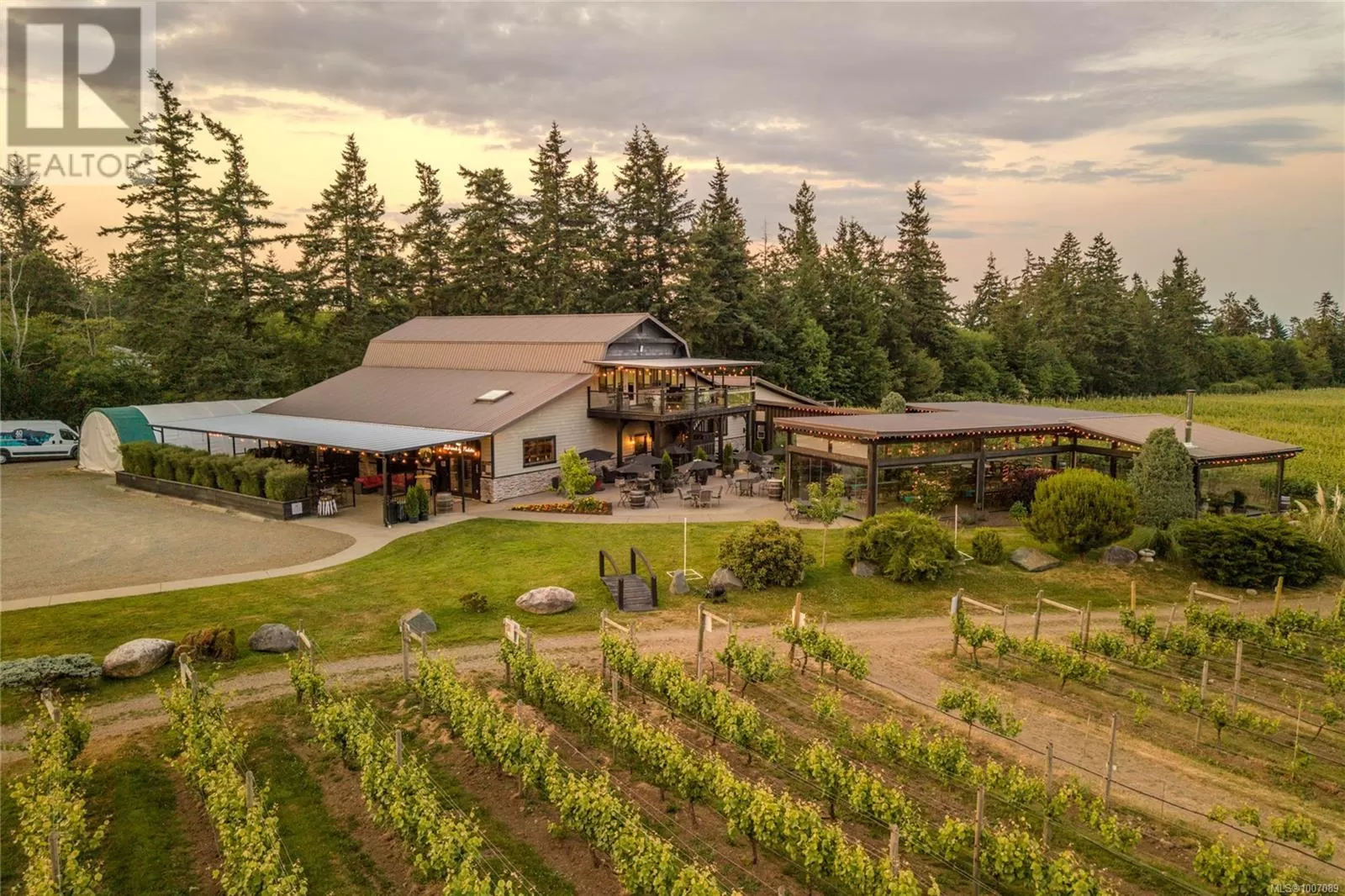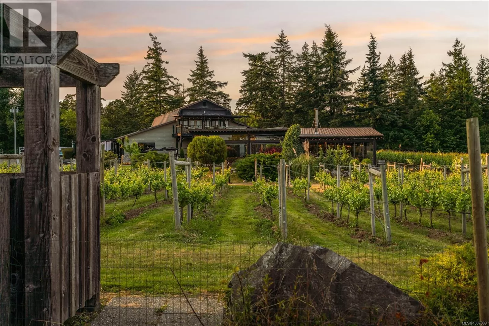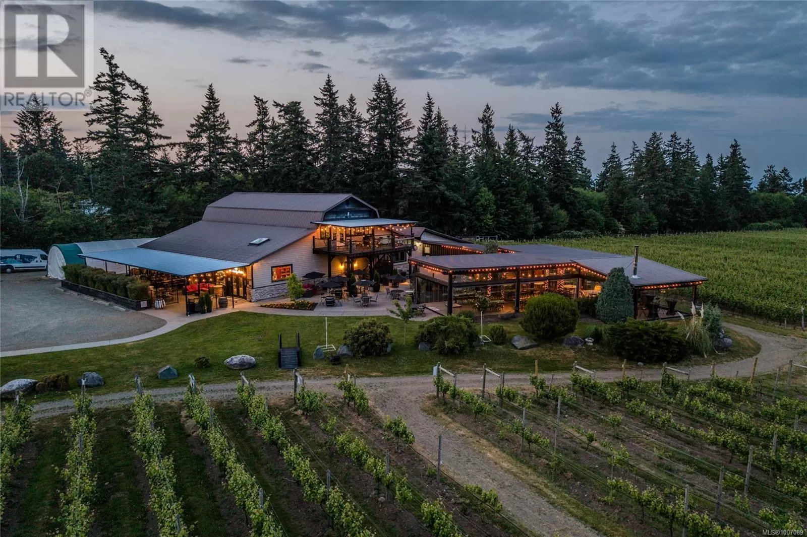 Presenting the offering of 40 Knots Estate Winery. This beloved Comox Valley business is situated on an idyllic, ocean-adjacent 23.5 acre estate. The offering includes the owned property, lease on the neighbouring property, equipment, business assets, and inventory (in addition to the listing price).The coastal property has 20.5 acres of vineyard planted with cool climate varietals. The vineyard is both sustainably and efficiently farmed - one of the only fully automated boutique vineyards. 40 Knots produces award-winning wines and ciders with their highest regarded wines and ciders scoring 93 points. Wine styles range from traditional sparkling wines to silky Pinot Noirs to Normandy-style ciders. Along with producing and selling wine, 40 Knots Winery has a popular vineyard terrace event centre able to host weddings, meeting, and corporate events year-round with panoramic vineyard views. The property structures include the 8,003 square foot winery building (home to the tasting room and production facilities), the event centre with 1,600 square feet of dining space, the 4,741 square foot country estate house, a 1,200 square foot workshop/shed, a washroom facility, and a pump house for irrigation. The property has municipal water and a well maintained septic system. With 4 bedrooms and 5 bathrooms, the character estate house features a primary bedroom with two closets and ensuite with soaker tub, a spacious kitchen with breakfast nook, two propane fireplaces, granite countertops, a large dining room with wet bar, a living room, a sitting room, a family room, and a spacious home office. The Comox Valley is an emerging wine region, offering superior growing conditions to other areas in Canada and a temperate Mediterranean climate. The winery is located close to the Comox Valley Airport, CFB, and Highway 19. The ferry to Departure Bay from the mainland is just 1.25 hours away. We respectfully ask that you do not disturb the staff regarding the sale of the business (id:27476)