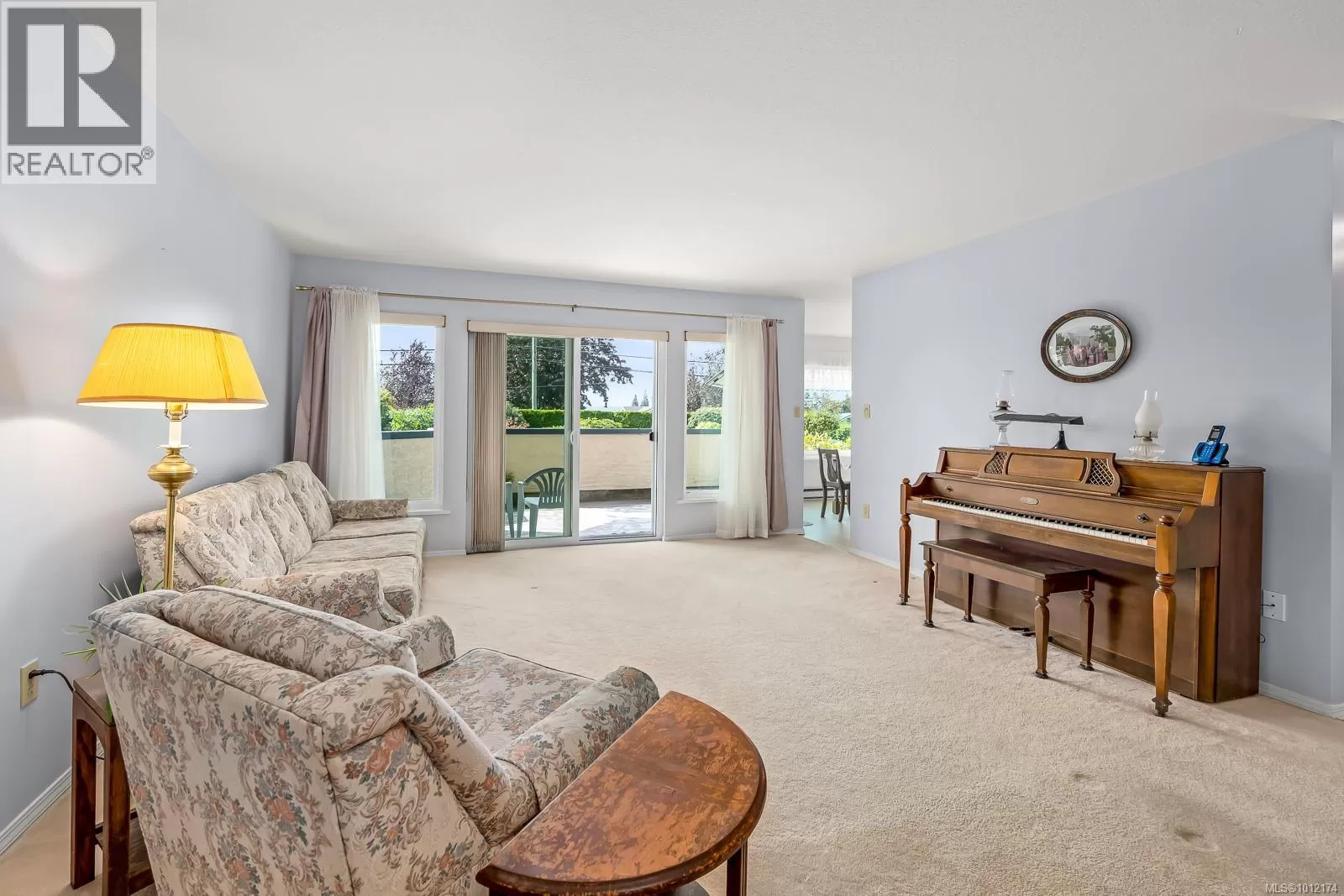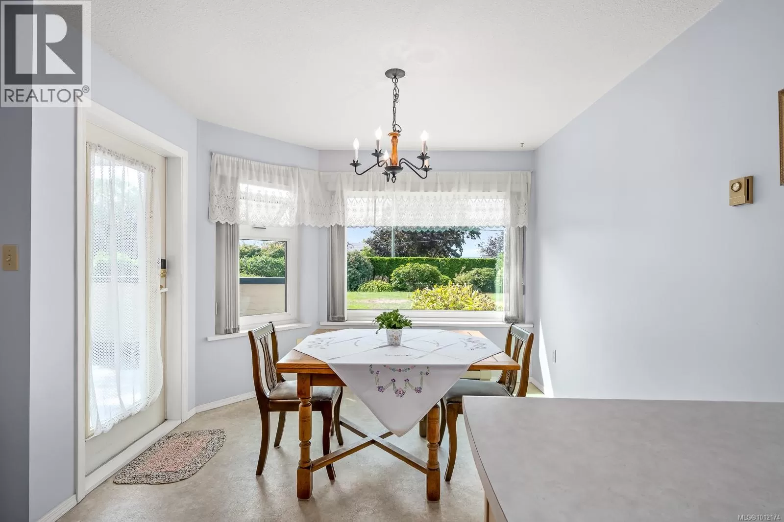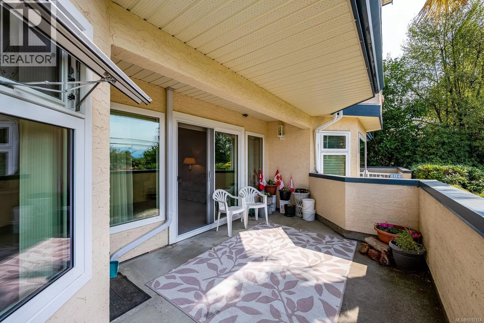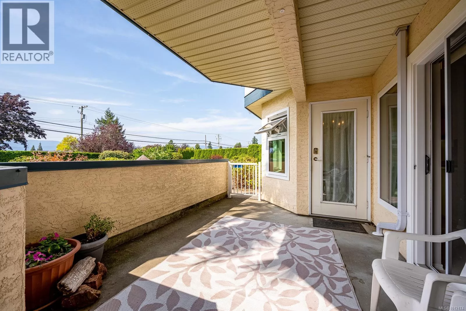 Welcome to Capistrano, where comfort and convenience meet in the heart of Comox. This charming ground-level condo offers 1215 sq ft of thoughtfully designed living space, featuring 2 bedrooms and 1 bathroom. The inviting open-concept living and dining area is filled with natural light from large windows, creating a bright and airy atmosphere. A cozy breakfast nook off the kitchen makes the perfect spot to enjoy your morning coffee. The spacious primary bedroom boasts a walk-in closet, while the home also includes an indoor storage room and in-suite laundry for added practicality. Step outside through sliding doors to your covered patio, overlooking beautifully maintained gardensâideal for relaxing or entertaining. Perfectly situated on Comox Ave, youâre just steps from shopping, the library, marina, parks, and all that downtown Comox has to offer. This welcoming 55+ complex allows one small pet, making it an excellent choice for those seeking a peaceful lifestyle in a prime location. Listed by The Courtney & Anglin Real Estate Group - The Name Friends Recommend! (id:27476)