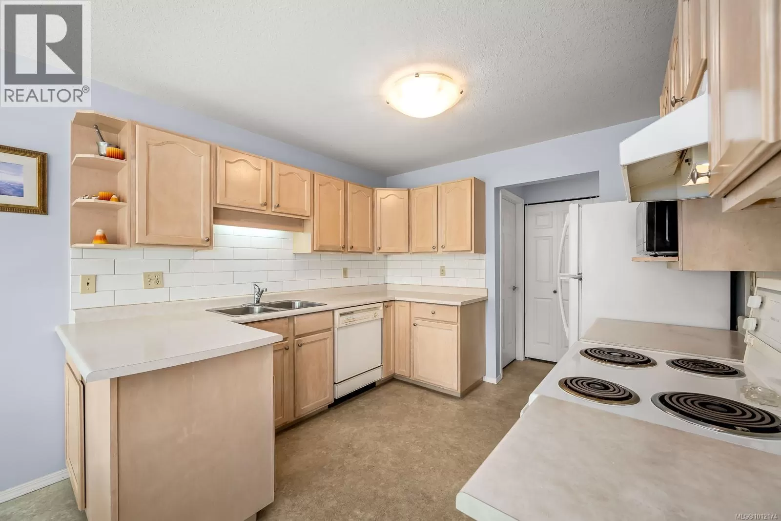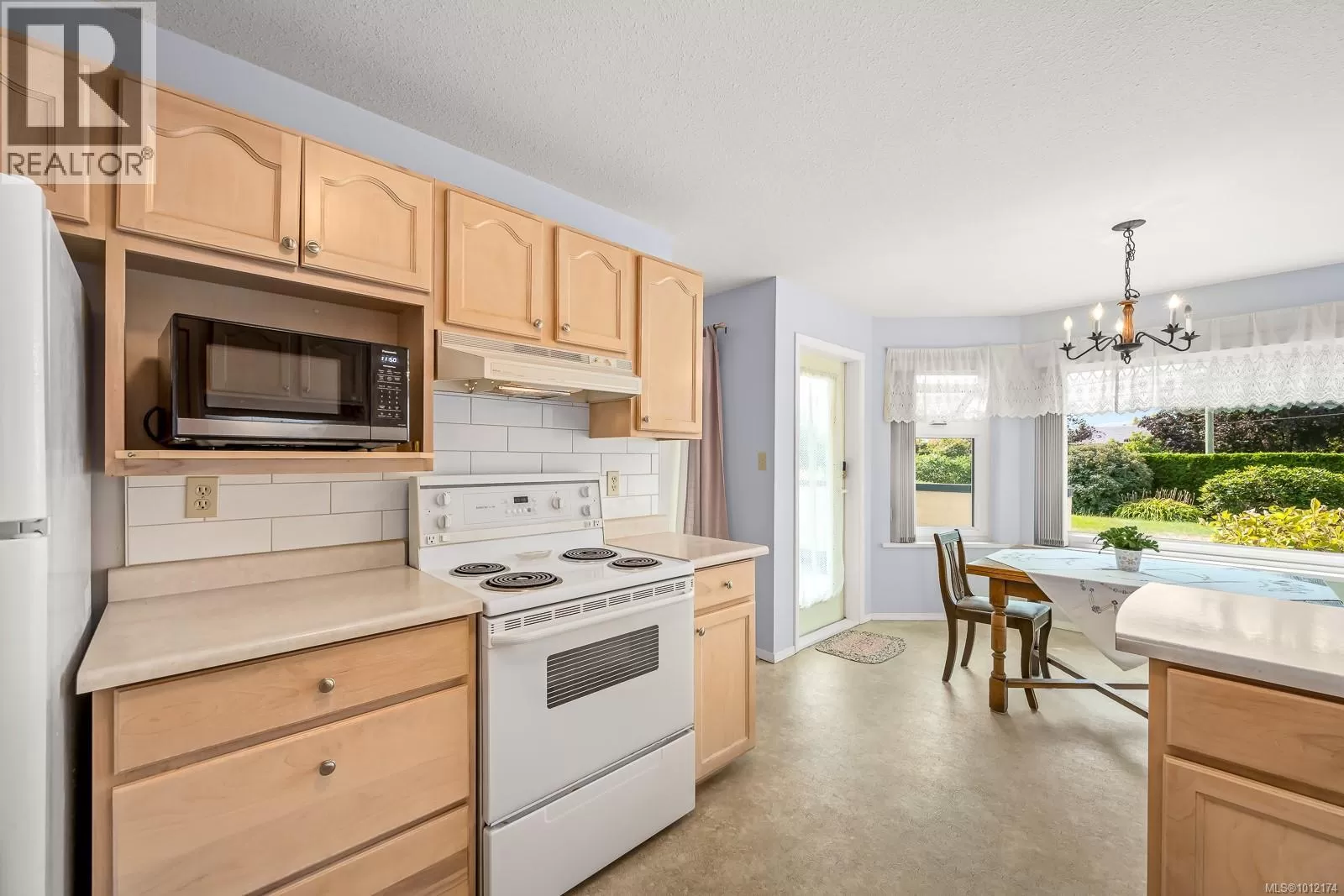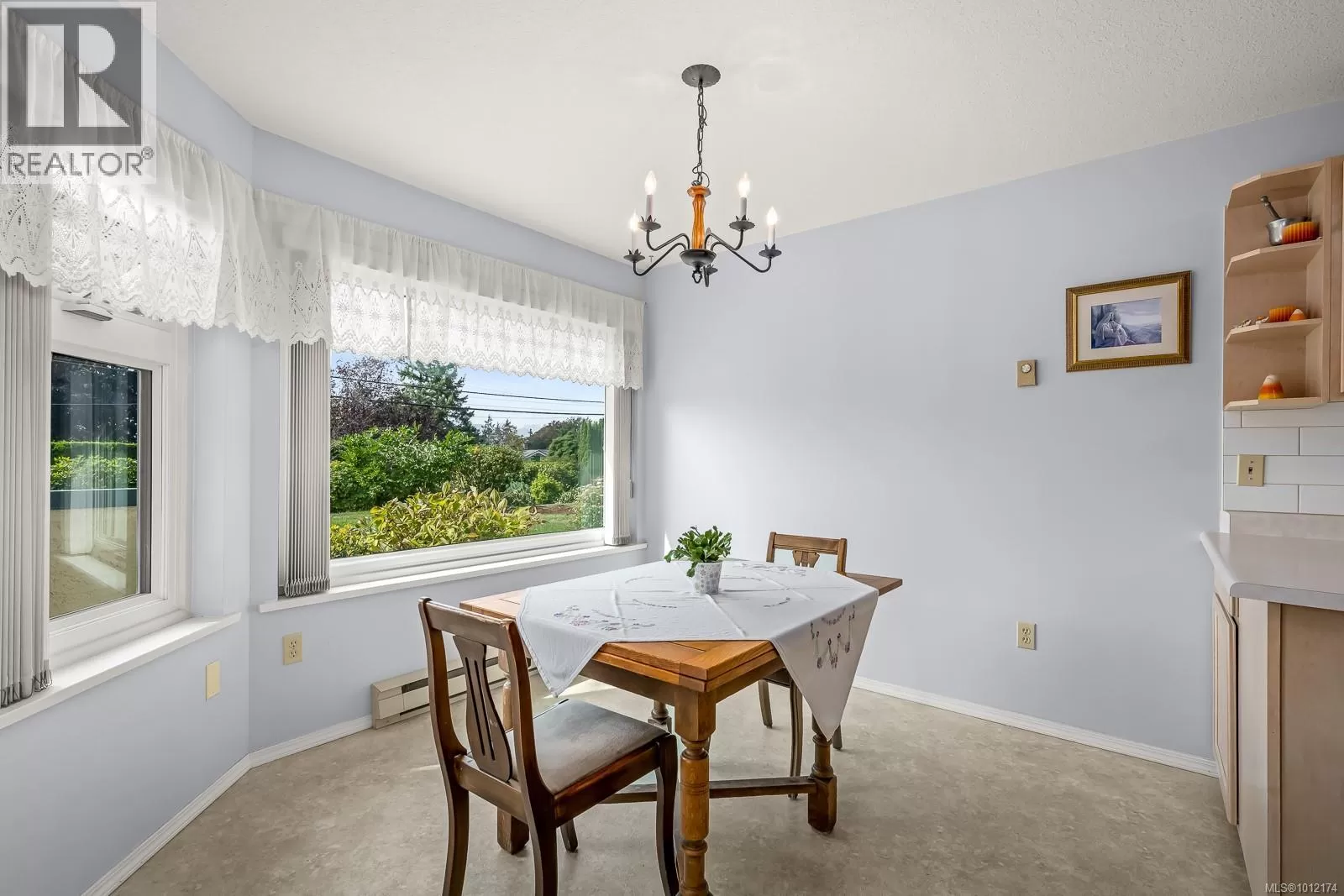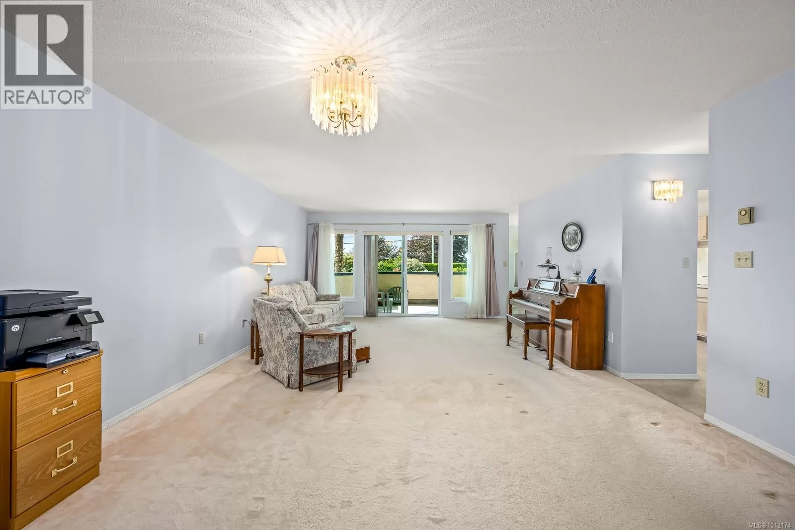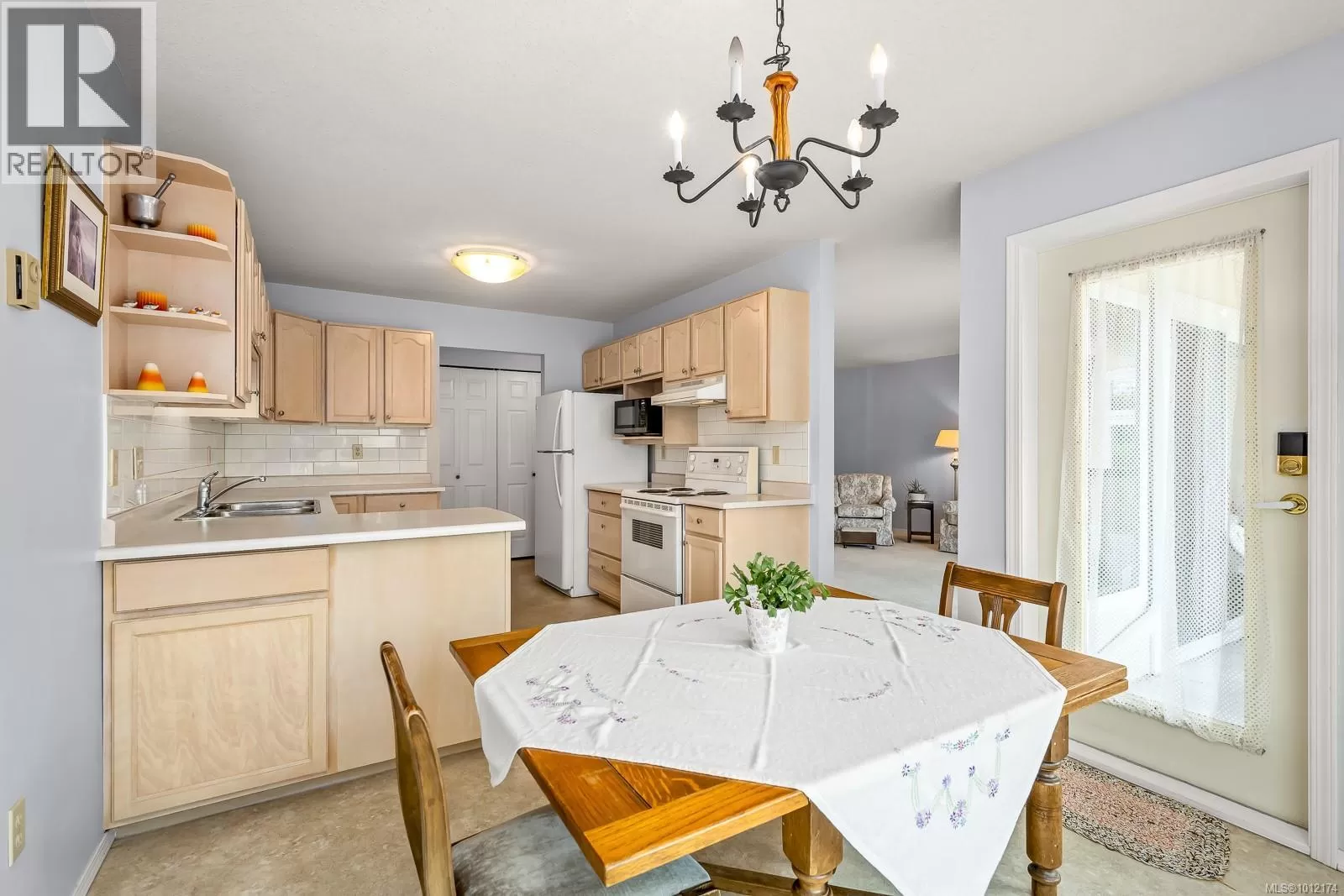 Welcome to Capistrano, where comfort and convenience meet in the heart of Comox. This charming ground-level condo offers 1215 sq ft of thoughtfully designed living space, featuring 2 bedrooms and 1 bathroom. The inviting open-concept living and dining area is filled with natural light from large windows, creating a bright and airy atmosphere. A cozy breakfast nook off the kitchen makes the perfect spot to enjoy your morning coffee. The spacious primary bedroom boasts a walk-in closet, while the home also includes an indoor storage room and in-suite laundry for added practicality. Step outside through sliding doors to your covered patio, overlooking beautifully maintained gardensâideal for relaxing or entertaining. Perfectly situated on Comox Ave, youâre just steps from shopping, the library, marina, parks, and all that downtown Comox has to offer. This welcoming 55+ complex allows one small pet, making it an excellent choice for those seeking a peaceful lifestyle in a prime location. Listed by The Courtney & Anglin Real Estate Group - The Name Friends Recommend! (id:27476)