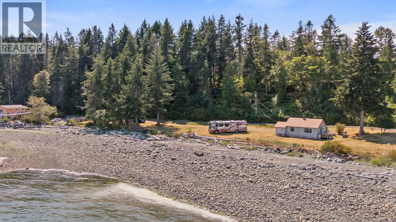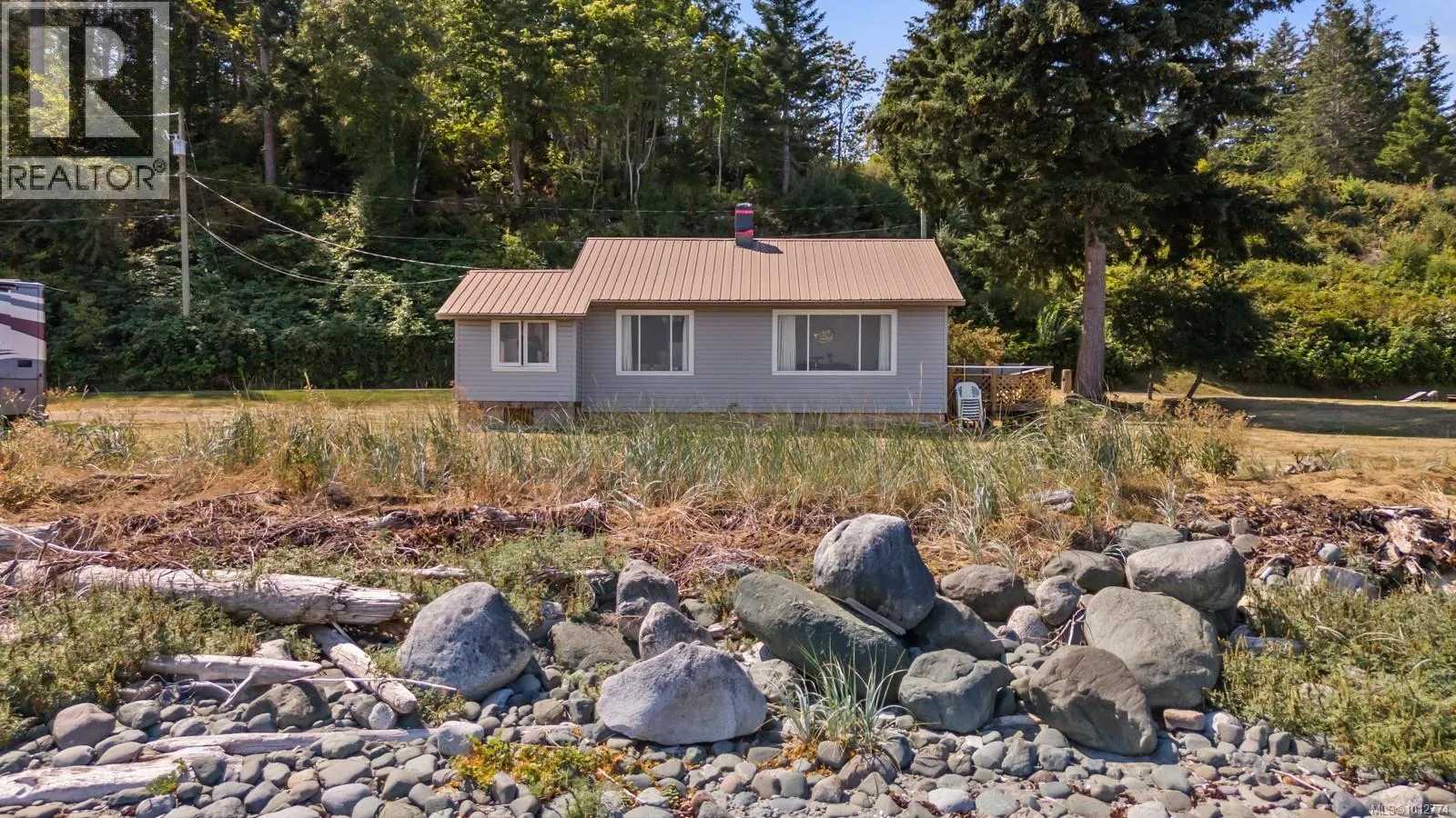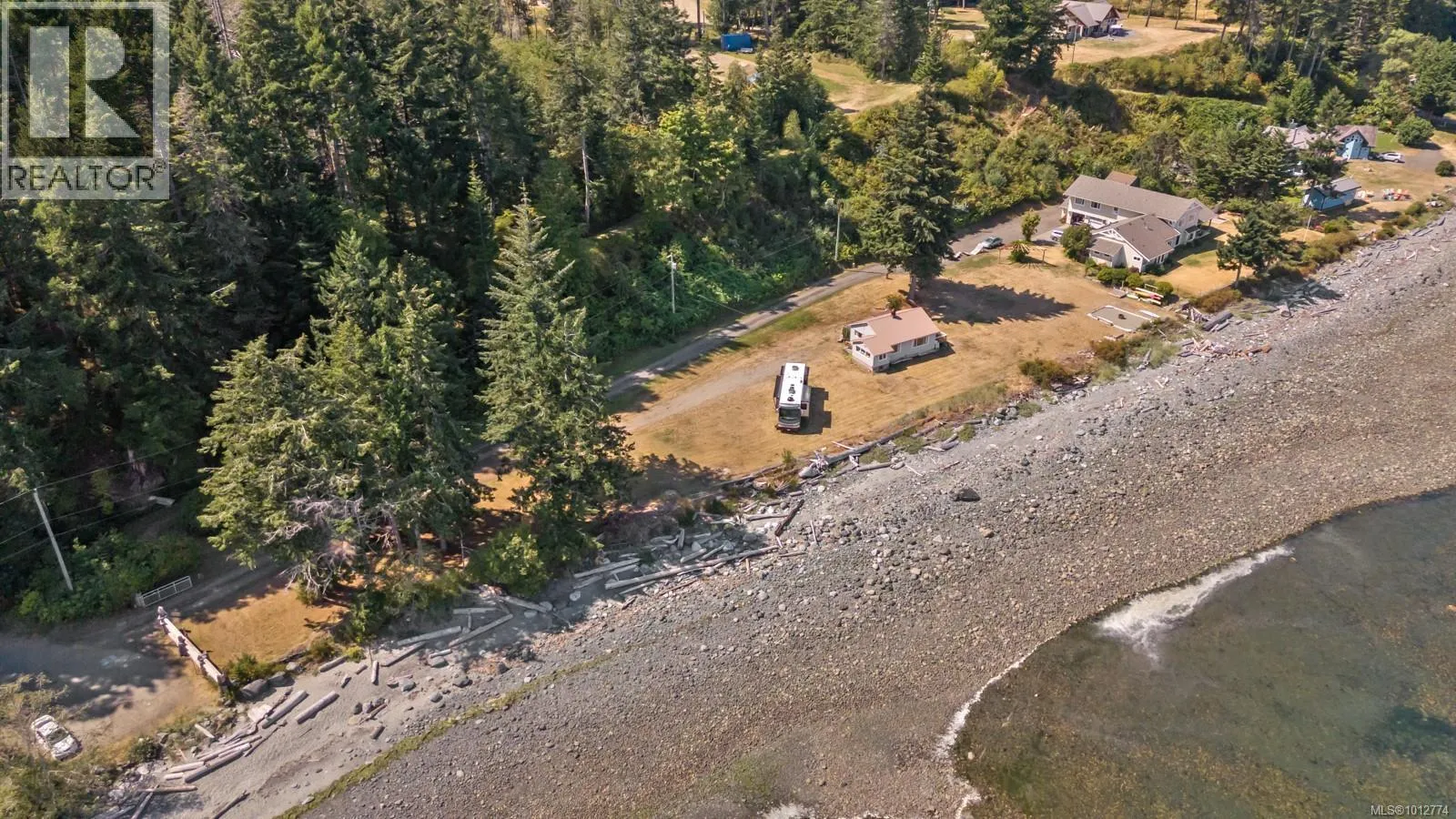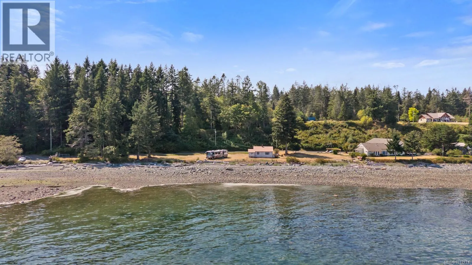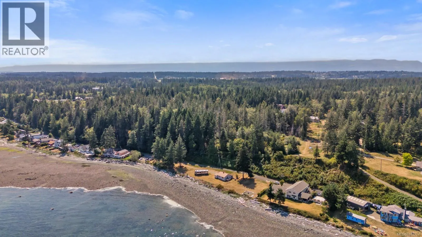 An iconic waterfront property. Here's an amazing opportunity to own 10+ acres with 300ft of private oceanfront on the desirable Wilkinson Rd. This unique offering has approximately 2 acres on the water, & 8 acres, with stunning views of the Northern Strait of Georgia and Coast Mountains, on the bench above. This large property, zoned CR-1, would allow for 2 full size dwellings or a possible subdivision. A 2 bed, 1bath, 800 sqft cottage is a snapshot from generations before, perfectly preserved, a time capsule of memories on the beach. This home has municipal water, septic system, metal roof, AC Minisplit, and a renovated bathroom. Nestled on a private no-through road, this property is just minutes away from the airport & amenities of town. (id:27476)