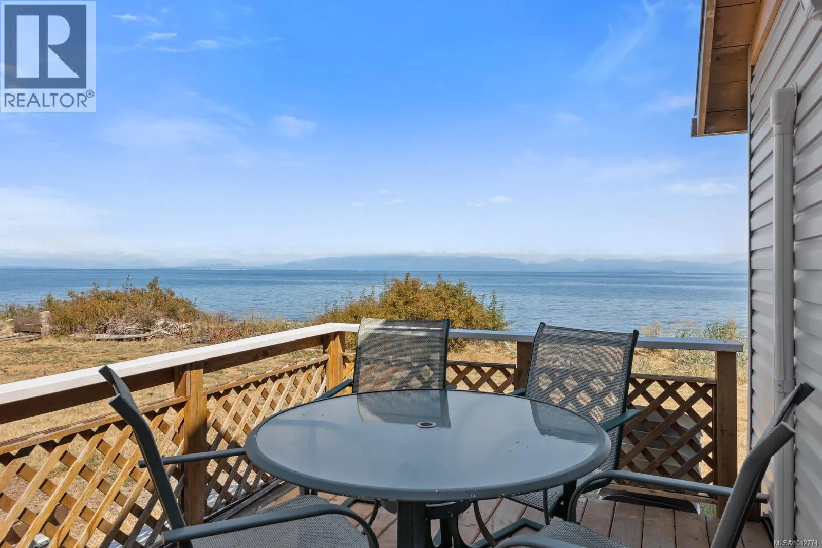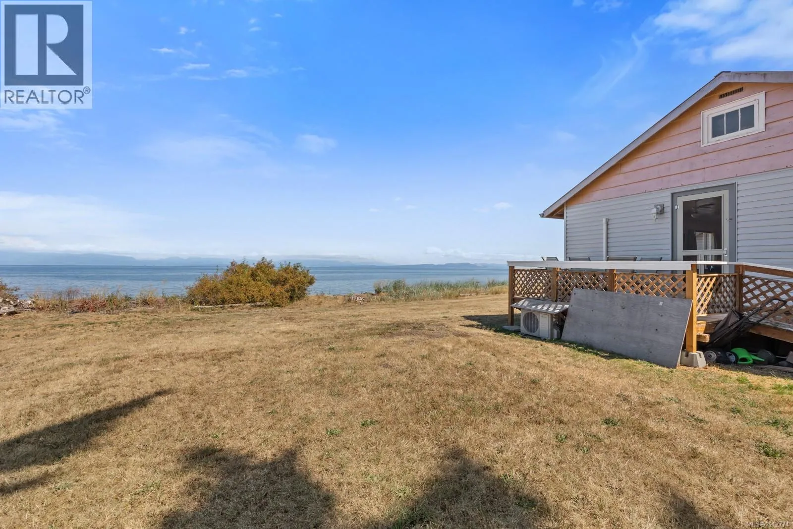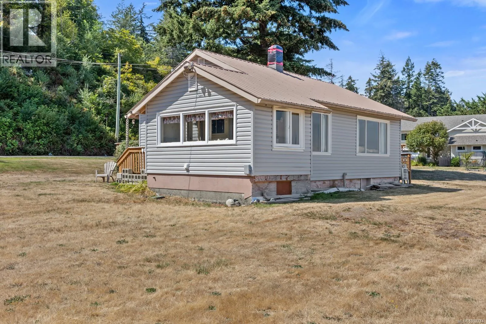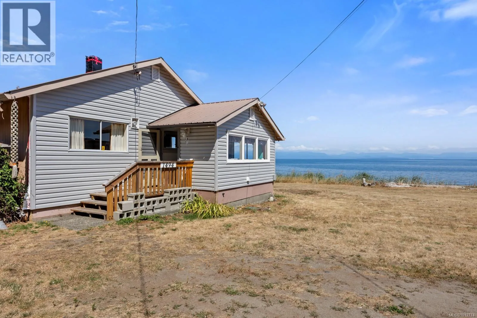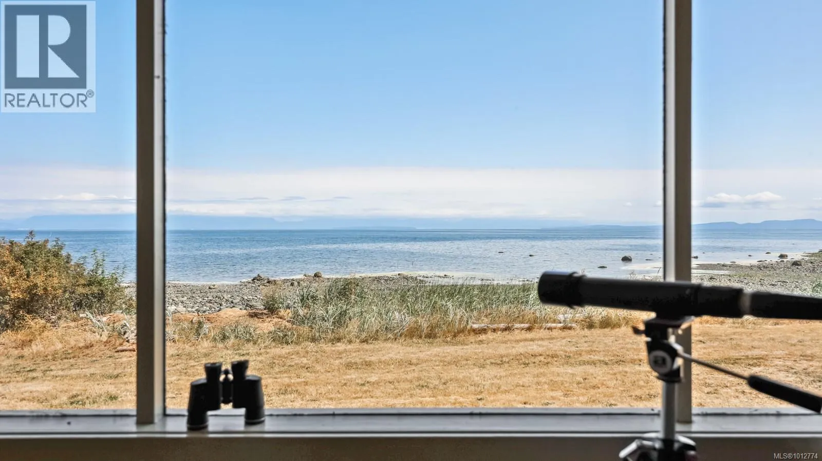 An iconic waterfront property. Here's an amazing opportunity to own 10+ acres with 300ft of private oceanfront on the desirable Wilkinson Rd. This unique offering has approximately 2 acres on the water, & 8 acres, with stunning views of the Northern Strait of Georgia and Coast Mountains, on the bench above. This large property, zoned CR-1, would allow for 2 full size dwellings or a possible subdivision. A 2 bed, 1bath, 800 sqft cottage is a snapshot from generations before, perfectly preserved, a time capsule of memories on the beach. This home has municipal water, septic system, metal roof, AC Minisplit, and a renovated bathroom. Nestled on a private no-through road, this property is just minutes away from the airport & amenities of town. (id:27476)