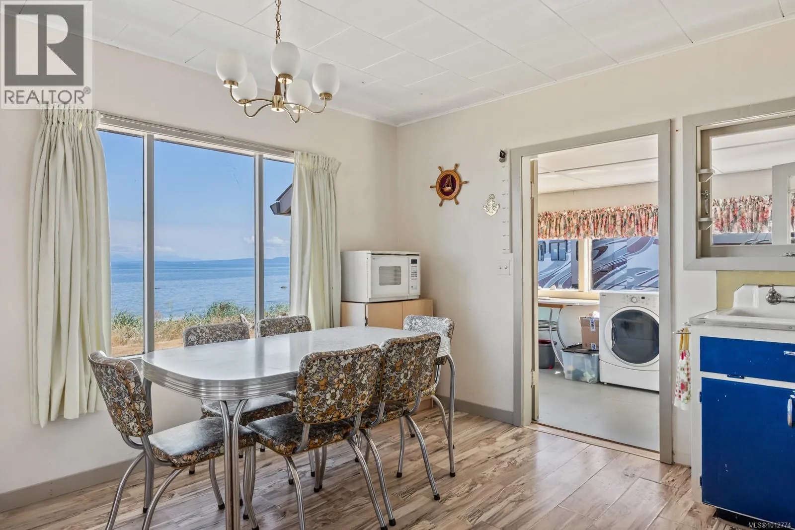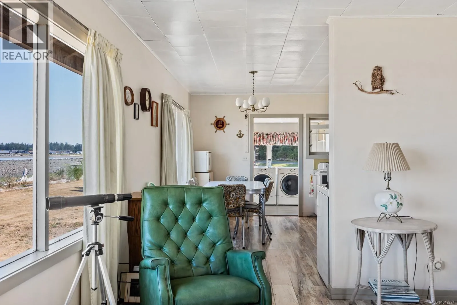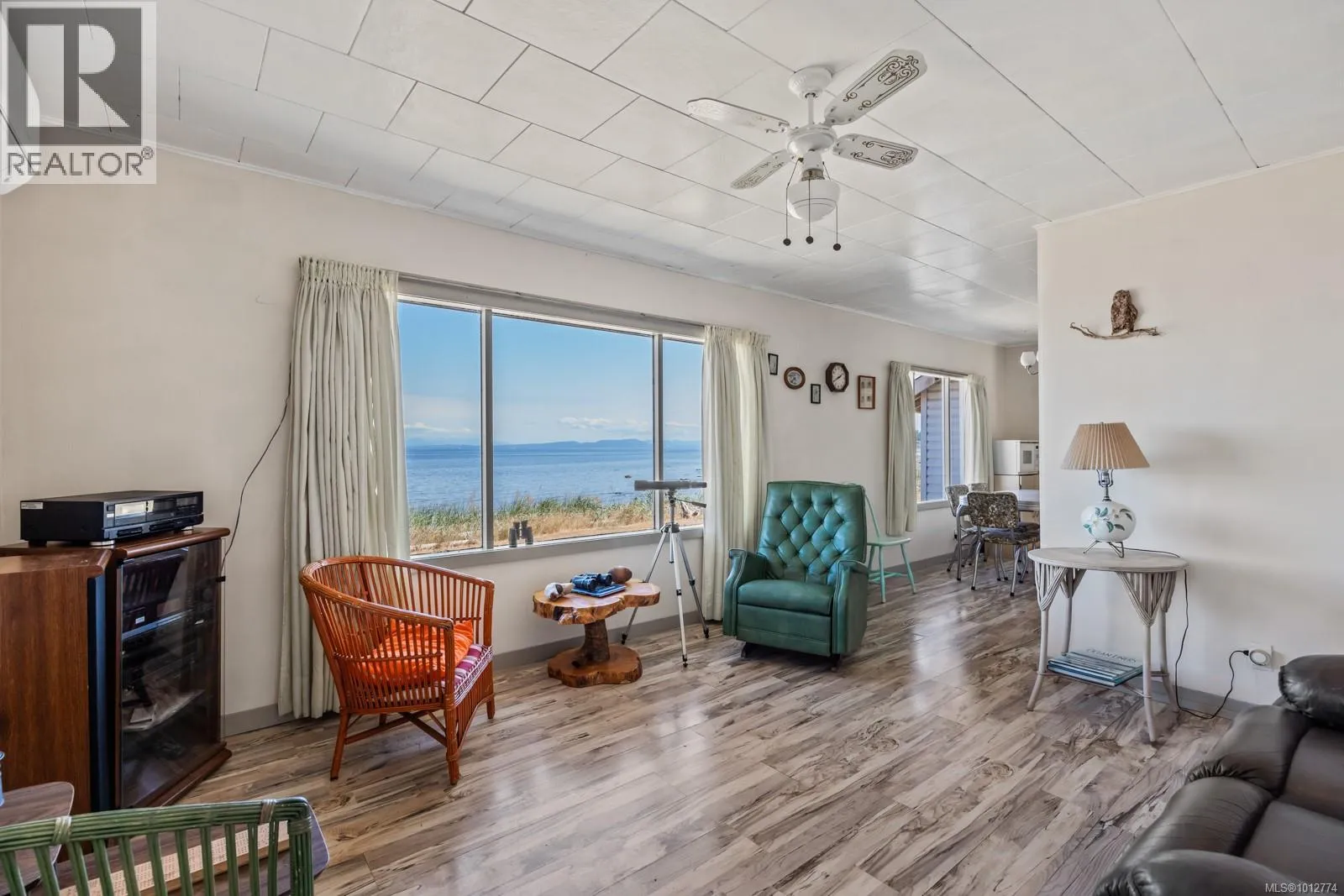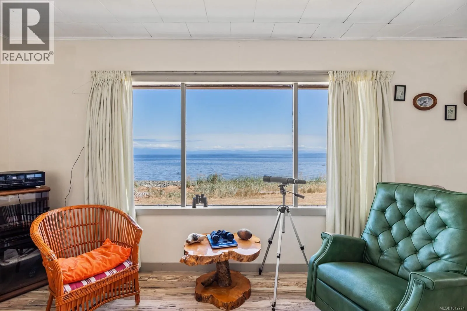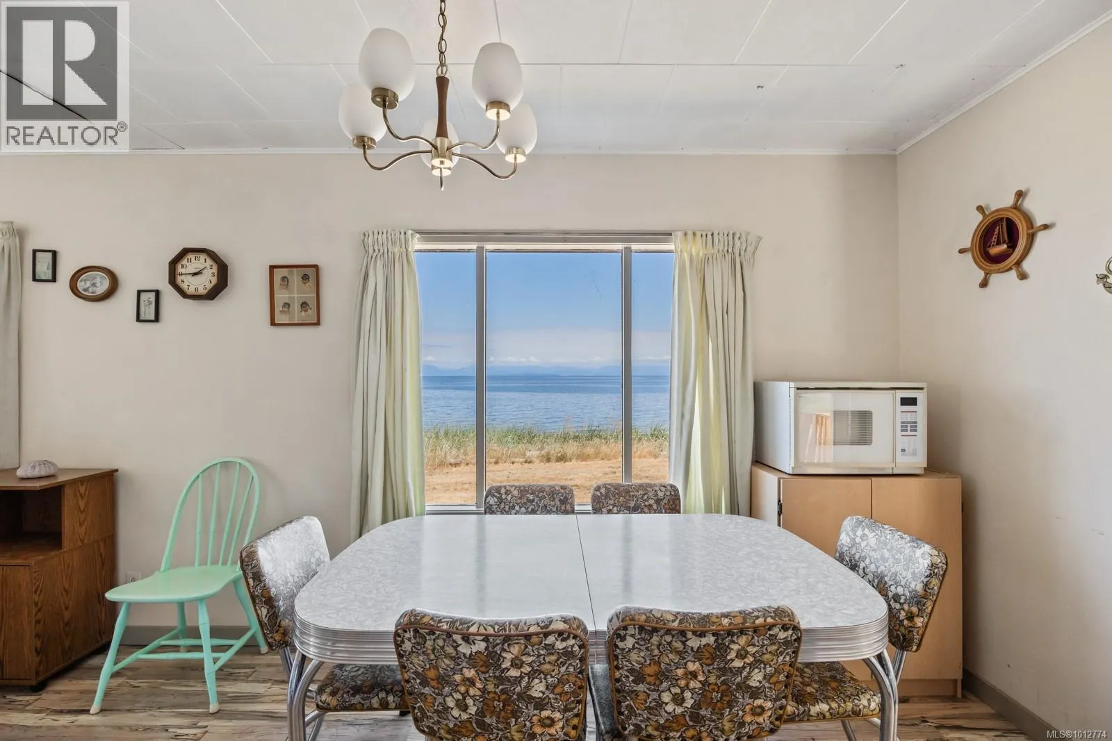 An iconic waterfront property. Here's an amazing opportunity to own 10+ acres with 300ft of private oceanfront on the desirable Wilkinson Rd. This unique offering has approximately 2 acres on the water, & 8 acres, with stunning views of the Northern Strait of Georgia and Coast Mountains, on the bench above. This large property, zoned CR-1, would allow for 2 full size dwellings or a possible subdivision. A 2 bed, 1bath, 800 sqft cottage is a snapshot from generations before, perfectly preserved, a time capsule of memories on the beach. This home has municipal water, septic system, metal roof, AC Minisplit, and a renovated bathroom. Nestled on a private no-through road, this property is just minutes away from the airport & amenities of town. (id:27476)