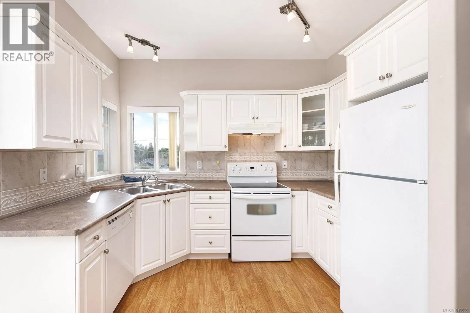 Location location location! Welcome to Ocean Pointe, a beautifully maintained development situated in downtown Comox, across the street from Anderton Park, and next to the golf course. This well kept, second floor condominium features two-bedrooms two-bathrooms, offers tons of natural light with windows on three sides with views, and is an end unit which ensures quiet enjoyment. The primary suite is a generous size and features a 4-piece washroom, there is a sundeck off the kitchen, and excellent bedroom separation. The highlight is the fact you can leave your vehicle in the carport and walk to most amenities, the marina, and the shops and restaurants Comox has to offer. For more information, please contact Christiaan Horsfall at 250-702-7150. (id:27476)