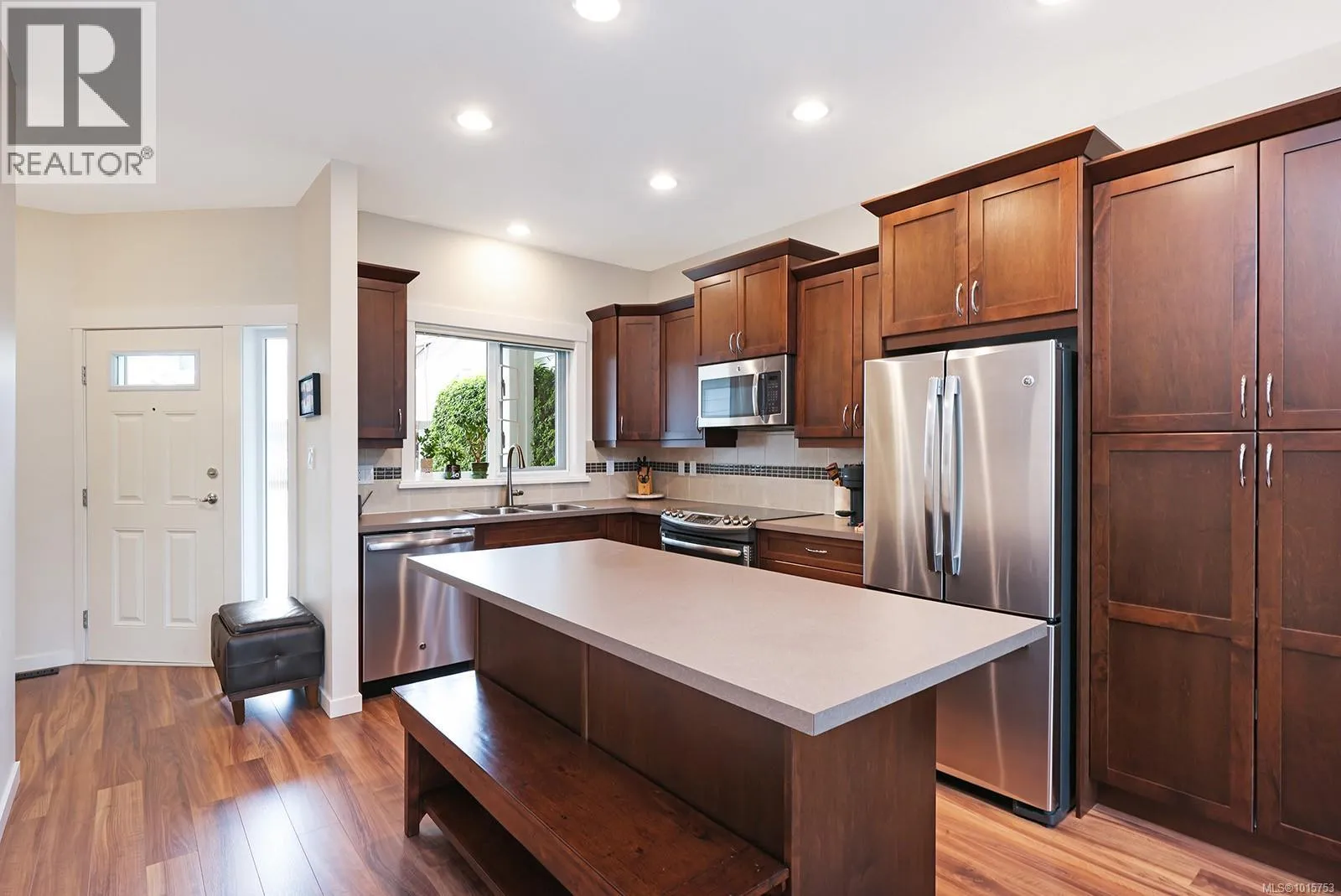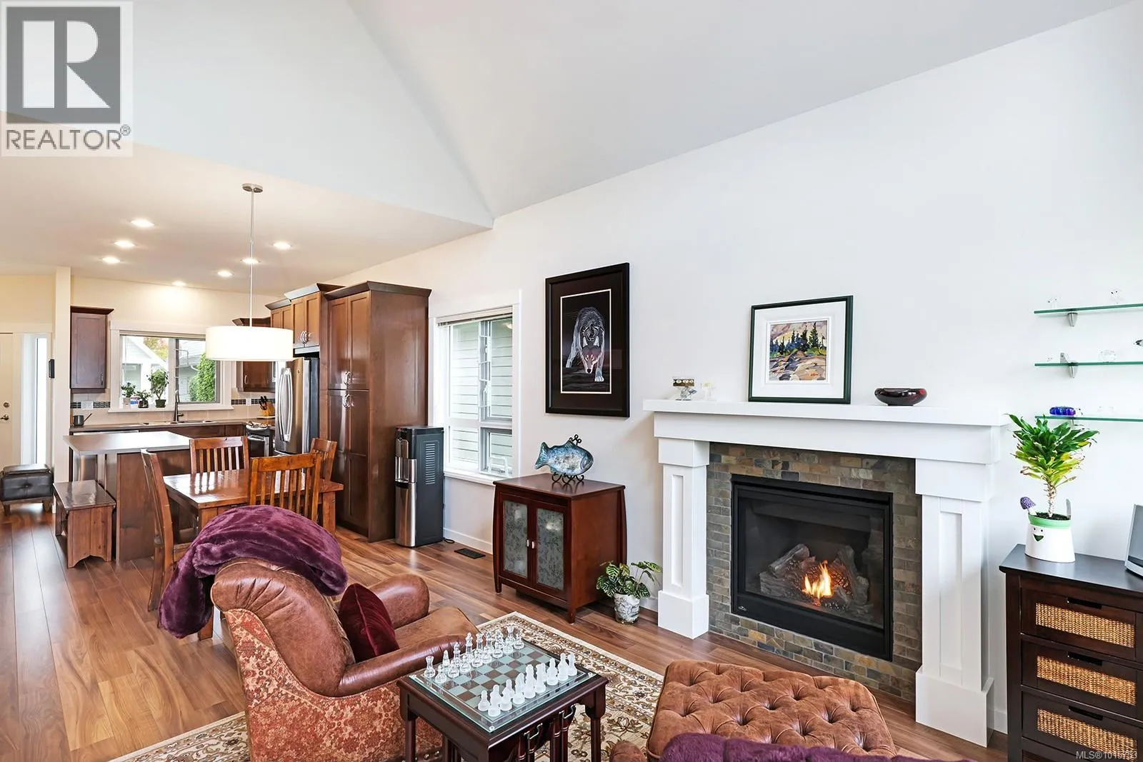 Welcome to 50-700 Lancaster Way â a three bedroom, three bathroom townhouse offering comfortable living in a peaceful neighbourhood, where quiet evenings and starry skies are part of everyday life. The bright, open concept kitchen, dining area, and living room centers around a cozy Napoleon gas fireplace; perfect for cozy mornings with coffee. The spacious primary bedroom on the main level adds everyday ease, complemented by an ensuite with heated tile floors and 2 closets. Modern touches like luxury laminate flooring and a touchless kitchen faucet provide everyday comfort and style. Upstairs, you'll find two additional bedrooms and a generous loft style family room; ideal for guests, a home office, or movie nights. Additional features include an overheight 4.5 foot crawl space, a garage with a tool pegboard, and a second full size refrigerator. Move in ready and perfectly located, this home is just minutes from scenic walking trails, schools, grocery stores, and local coffee shops, offering the best of Comox living. (id:27476)
