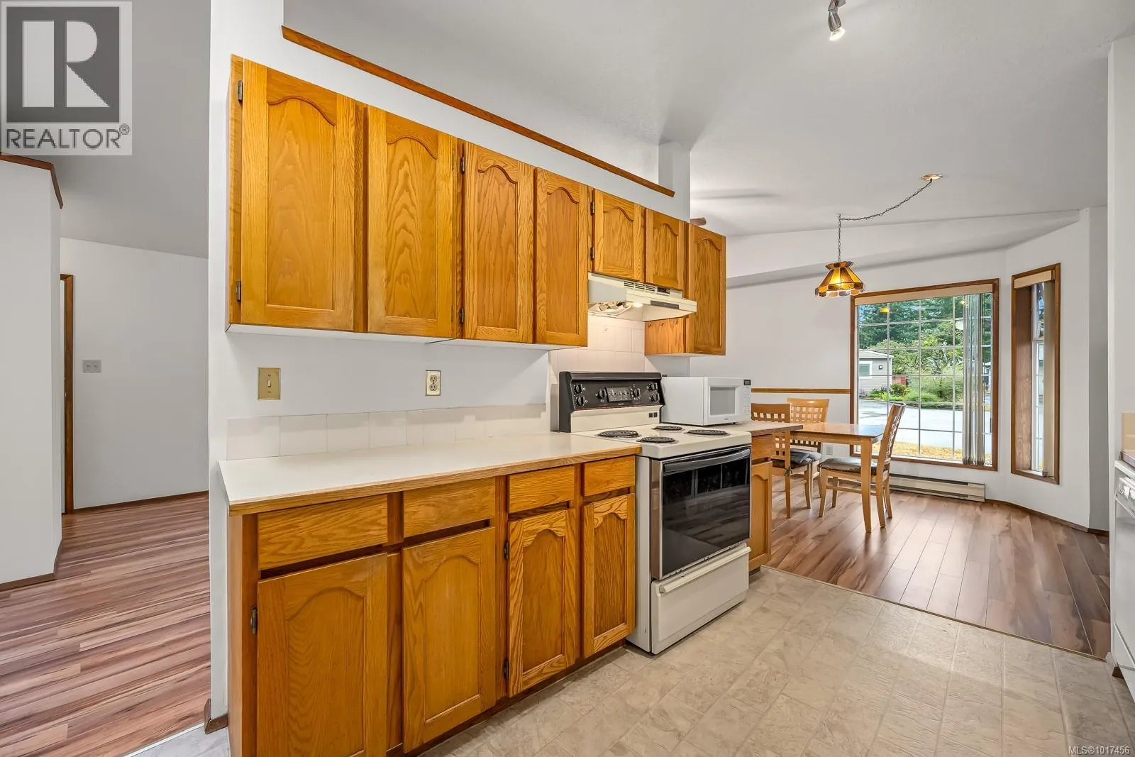 This two bedroom home is bright, clean, vacant and well cared for. Inside, you will appreciate the open dining/living plan with vaulted ceilings, hardwood laminate floors & abundant natural light. A well-equipped galley kitchen has plenty of counter space, cabinets & washer/dryer conveniently in a closet close by. Both bedrooms are spacious & well laid out too. Outside, there's a fully fenced, sunny backyard, complete with tiled patio area & powered storage room. In front, the large over-height carport and locking storage room offers dry entry to your home on wet days. There's bonus RV or boat parking too. Extras are low taxes & heating costs, new HWT in 2022 and plenty of life in the roof. Centrally located on no thru street & close to shopping, parks, schools + amenities this delightful home is move-in ready and offers exceptional value. Quick possession possible. (id:27476)