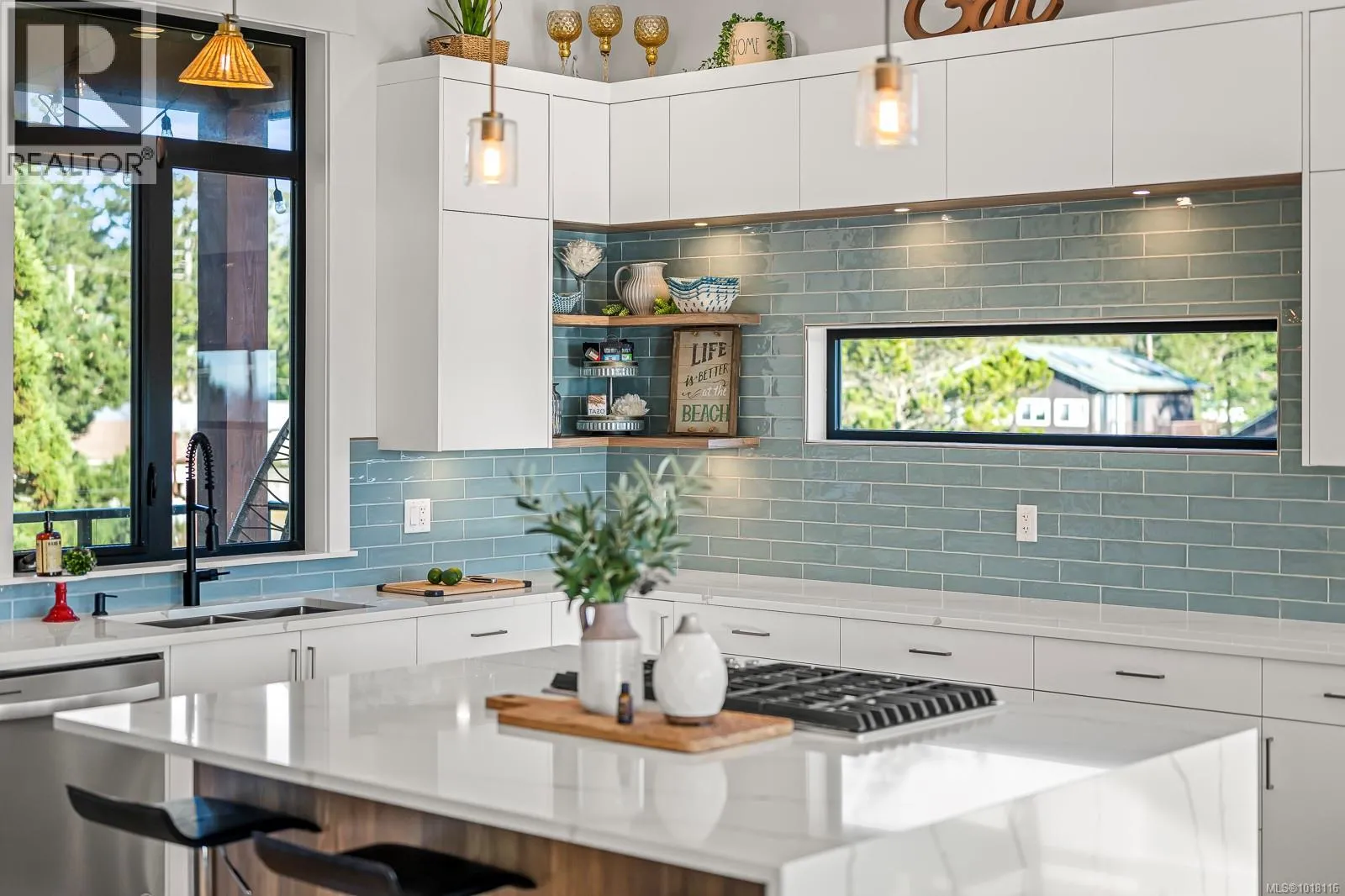 Modern Coastal Luxury home with Breathtaking Ocean Views! Built in 2023 this custom-built 2959 sq ft Point Holmes home was designed for elegance, comfort, and energy efficiency. Nestled in a picturesque setting with south-facing ocean views from both floors, this home offers a seamless blend of contemporary design and timeless craftsmanship. Property Features include a grand entrance with 18 foot ceilings for a striking first impression. This open concept design offers a gourmet kitchen with gas cooktop, large island & exceptional cabinet/pantry. The dining and living areas highlight a wood fireplace with natural stone work plus large picture windows and French doors for easy access to your incredible front deck. The large primary bedroom includes a dressing room, spa-like ensuite with floor-to-ceiling tiled shower, separate tub and his and her sinks. Just a minutes walk to the beach, boat launch, extensive walking trails, bird sanctuary, airport and all levels of schools! (id:27476)