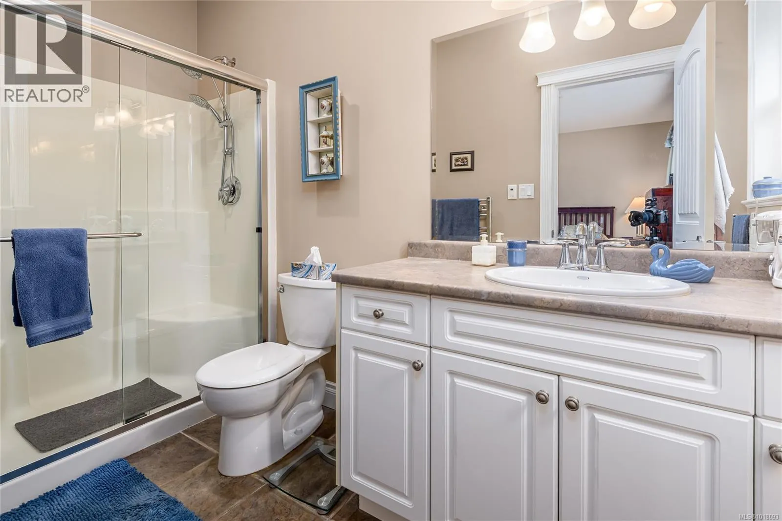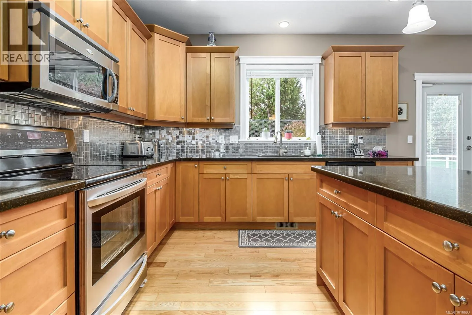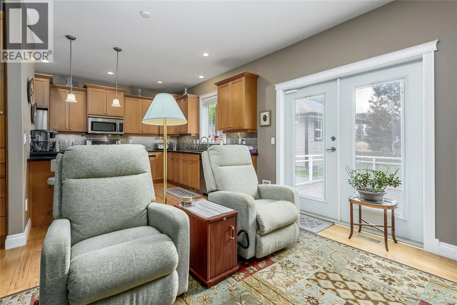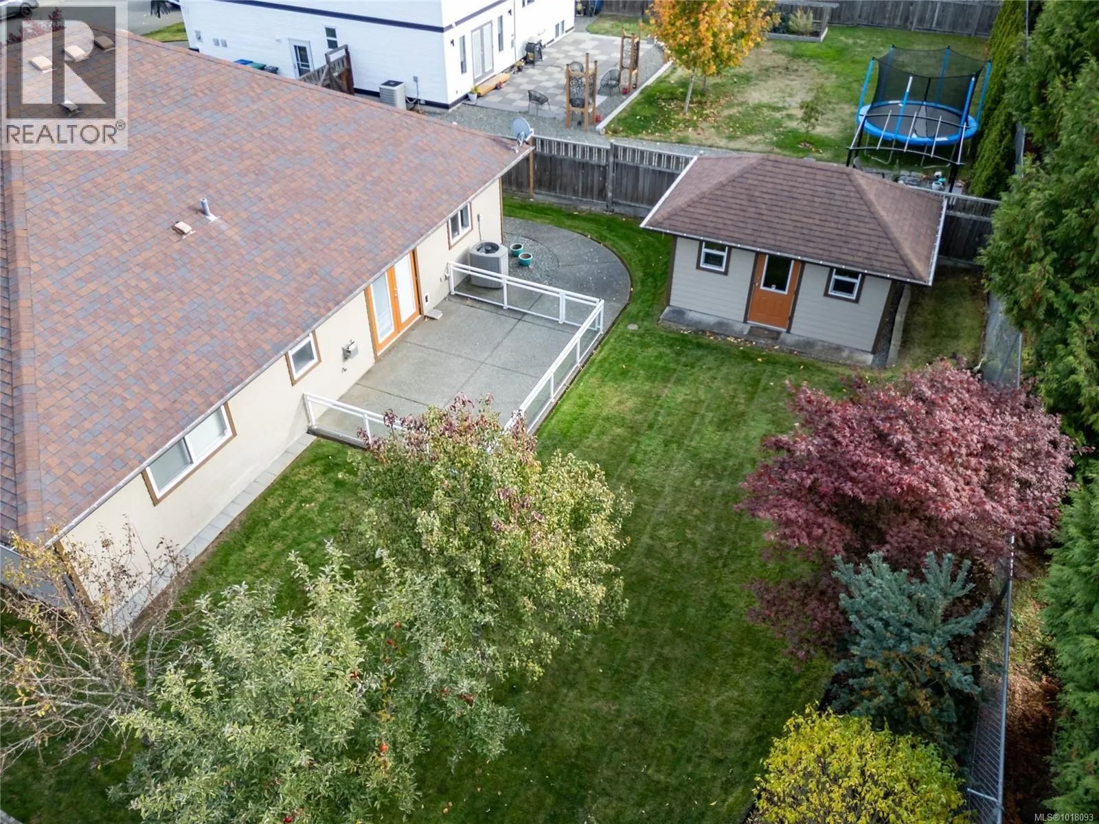 Beautiful Comox rancher with double garage and exceptional storage. Welcome to this spacious 1,850 sq. ft. rancher in a quiet Comox neighbourhood, just a short walk to nearby shopping and amenities. This well-designed home offers three bedrooms plus a den/officeâall on one convenient level. The interior features gleaming hardwood floors and elegant maple shaker cabinetry, creating a warm and inviting atmosphere throughout. The open-concept kitchen and family room are perfect for entertaining, with a corner gas fireplace, French doors leading to the private back patio, and a separate island providing excellent workspace and additional seating. Built-in cabinetry ensures ample storage, and privacy blinds are installed on all windows. The primary suite includes a generous walk-in closet and a bright ensuite with a walk-in shower. Two additional bedrooms are situated near the main four-piece bathroom, making the layout ideal for families or guests. Practicality meets comfort with a heat pump for efficient year-round heating and cooling. A dedicated walk-in storage room is perfect for a freezer, bulk goods, or seasonal items. Outside, enjoy low-maintenance Hardie plank siding, a fully fenced yard for kids or pets, and a powered backyard shed for even more storage or workshop space. If youâre searching for a well-maintained, spacious, and storage-rich home in Comox â this is the one! (id:27476)