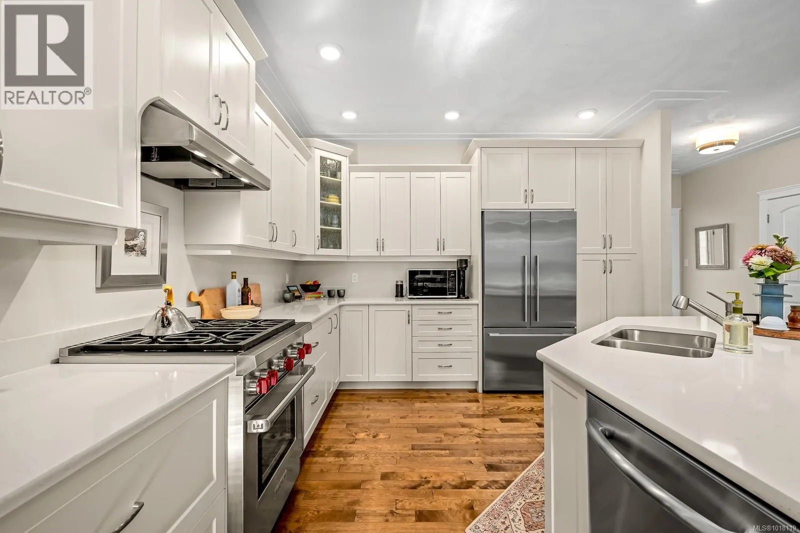 Located walking distance to downtown Comox, this private executive rancher, built in 2013, offers privacy and seclusion in the heart of Comox. Tucked away at the end of a quiet no through street in Comox this home offers 2 bedrooms plus large den/family room with 10â ceilings or could be converted to 3rd bedroom, 2 bathrooms and a luxury kitchen complete with Wolf and Fisher & Paykel appliances. The large primary bedroom offers plenty of closet space along with a full 5 piece bathroom with separate soaker tub and glass tile shower. The low maintenance private yard offers a peaceful outdoor retreat. Located in a small, simple, 3 lot bare land strata, this home offers convenience, luxury, modern comforts and is soaked in natural light. (id:27476)