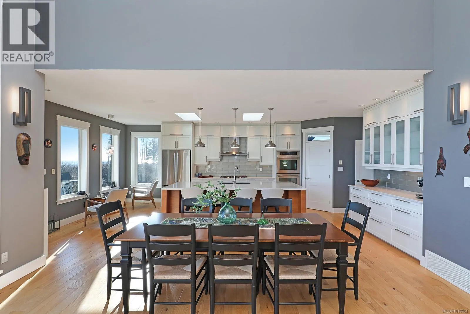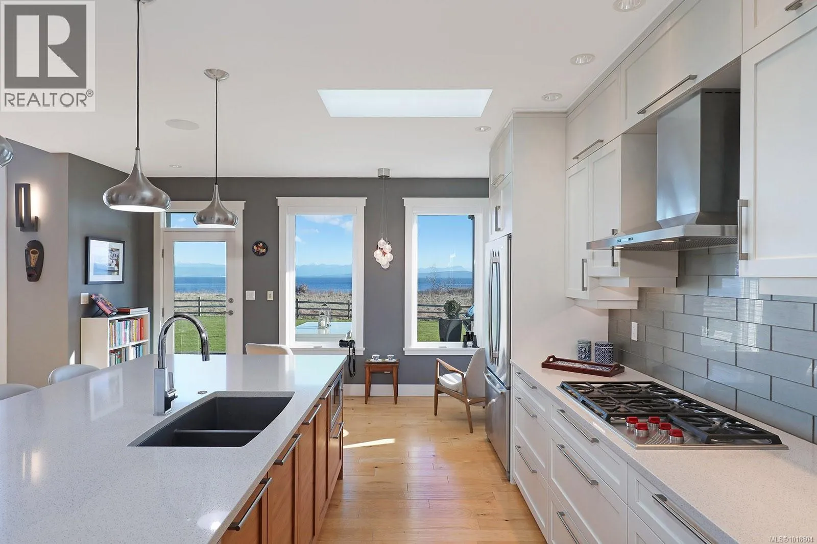 Stunning West Coast Ocean views across the Strait of Georgia to the snow-capped Coast Mountains beyond. Delivering panoramic views from all levels, this high-bank waterfront home of 3,415 sf, 4 BD/ 3 BA offers chic contemporary styling incorporating simple luxury and refined elegance. Streaming sunlight highlights the bright open plan w/ floor to ceiling windows & 15â5â ceilings in the Great Room, striking bronze tiled propane gas fireplace w/ fir timber mantle. Bright white kitchen w/ contrasting wood finished island, Wolf gas cooktop, Jennair dbl oven, pantry, & access to the covered patio w/ 4 skylights. Adjacent to the kitchen is a den/bedroom/formal dining room. The primary suite offers luxury, solitude, and 5 pce ensuite w/ soaker tub, glass & tile shower, dual sinks and views! Upstairs there are 2 bedrooms, den/small bedroom, & entertainment room w/ wet bar, ideal for media, pool table, & access to the deck. Doggie shower, 6â crawl, Longboard aluminum siding âBuilt to last.â (id:27476)