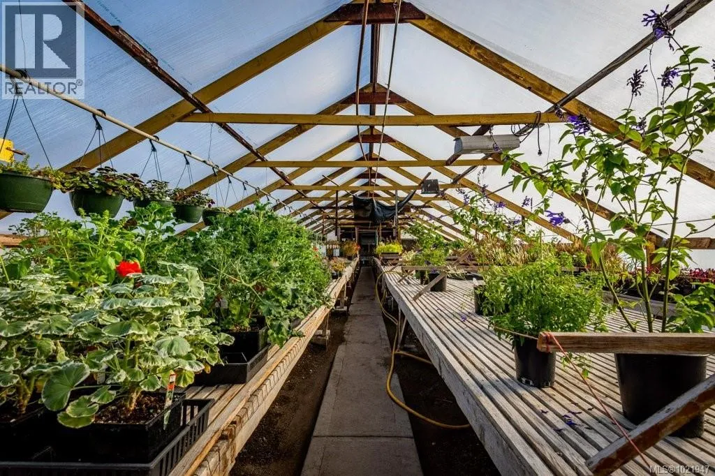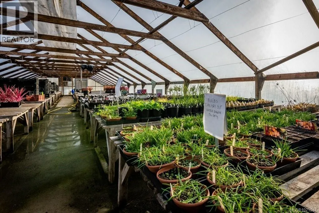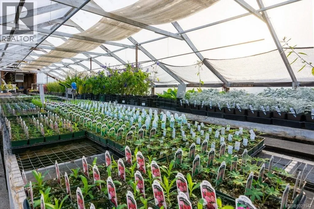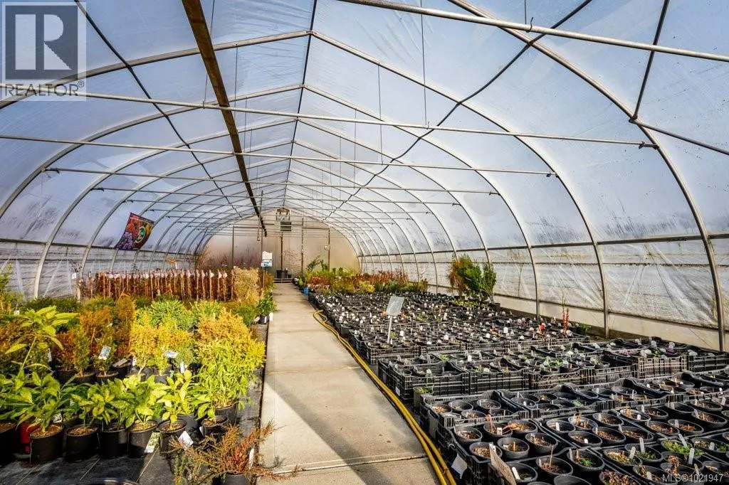 Live, work, and invest in this well-established and thriving nursery located in the heart of the Comox Peninsula. Offered on two separately titled ALR parcels totaling 38.48 acres, the front lot is home to both the successful business operation and a spacious 2,500+ sq ft residence. The property includes 16 greenhouses, a well-known leased therapeutic garden, multiple outbuildings including a barn and shop, and fully developed retail and operational areas for the nursery. A high-quality and abundant water supply is provided by an artesian spring and on-site pond. With the current operation utilizing only a small portion of the land, there is substantial upside and room for expansion or diversification. An exceptional opportunity to acquire an award-winning business with an established customer base, excellent infrastructure, and a true lifestyle property. (id:27476)