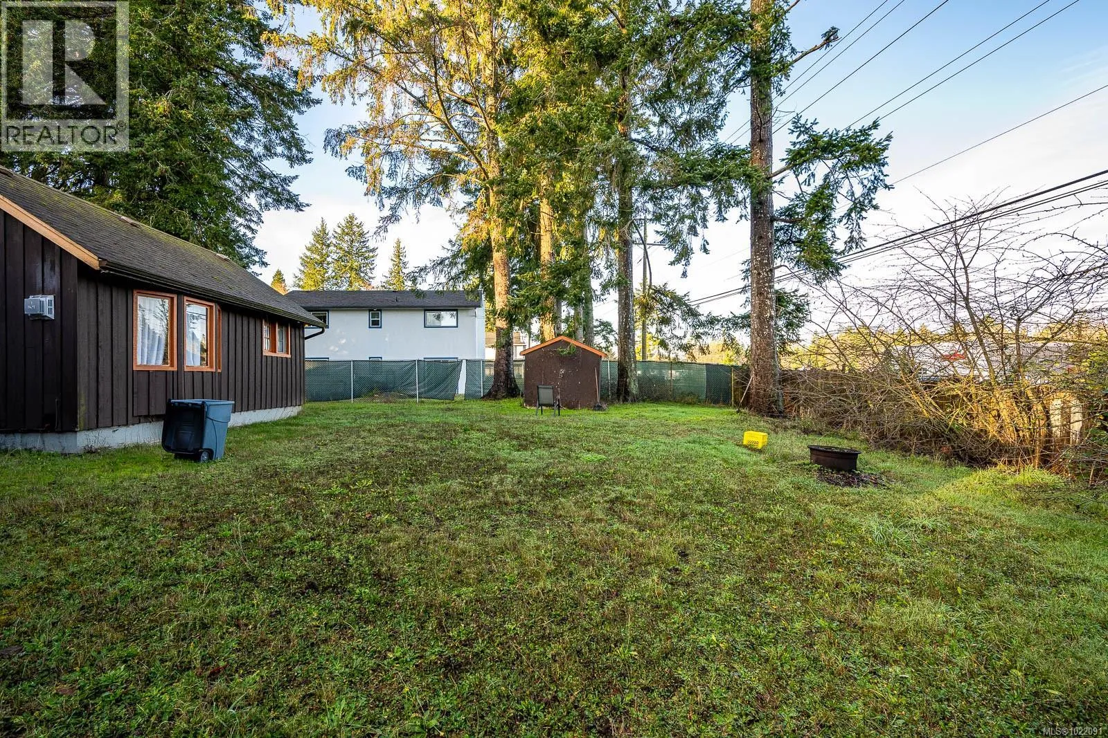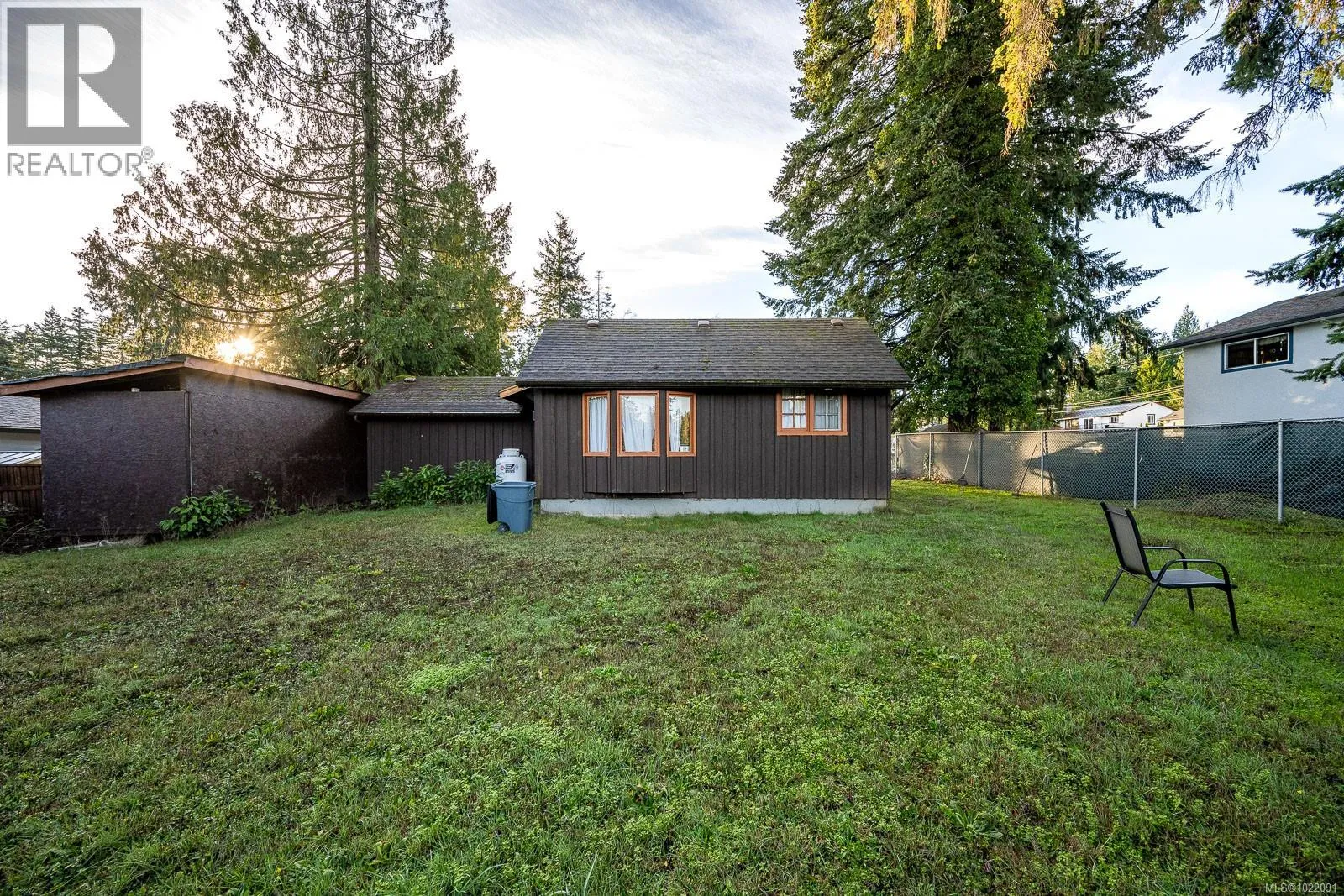 Situated near CFB Comox, this 1,120 sq ft home presents a practical opportunity for buyers looking to update and make a space their own. Set on a fully fenced and gated 0.19-acre lot, the property is surrounded by mature trees that offer privacy and a sense of seclusion. Inside, the home features a spacious kitchen, one large bedroom, a living room with a propane stove and access to the backyard, and a versatile flex room that was formerly the garage. Finished with classic wood board-and-batten siding and complemented by a separate storage shed, this property offers solid potential in a well-established location. Come take a look! (id:27476)