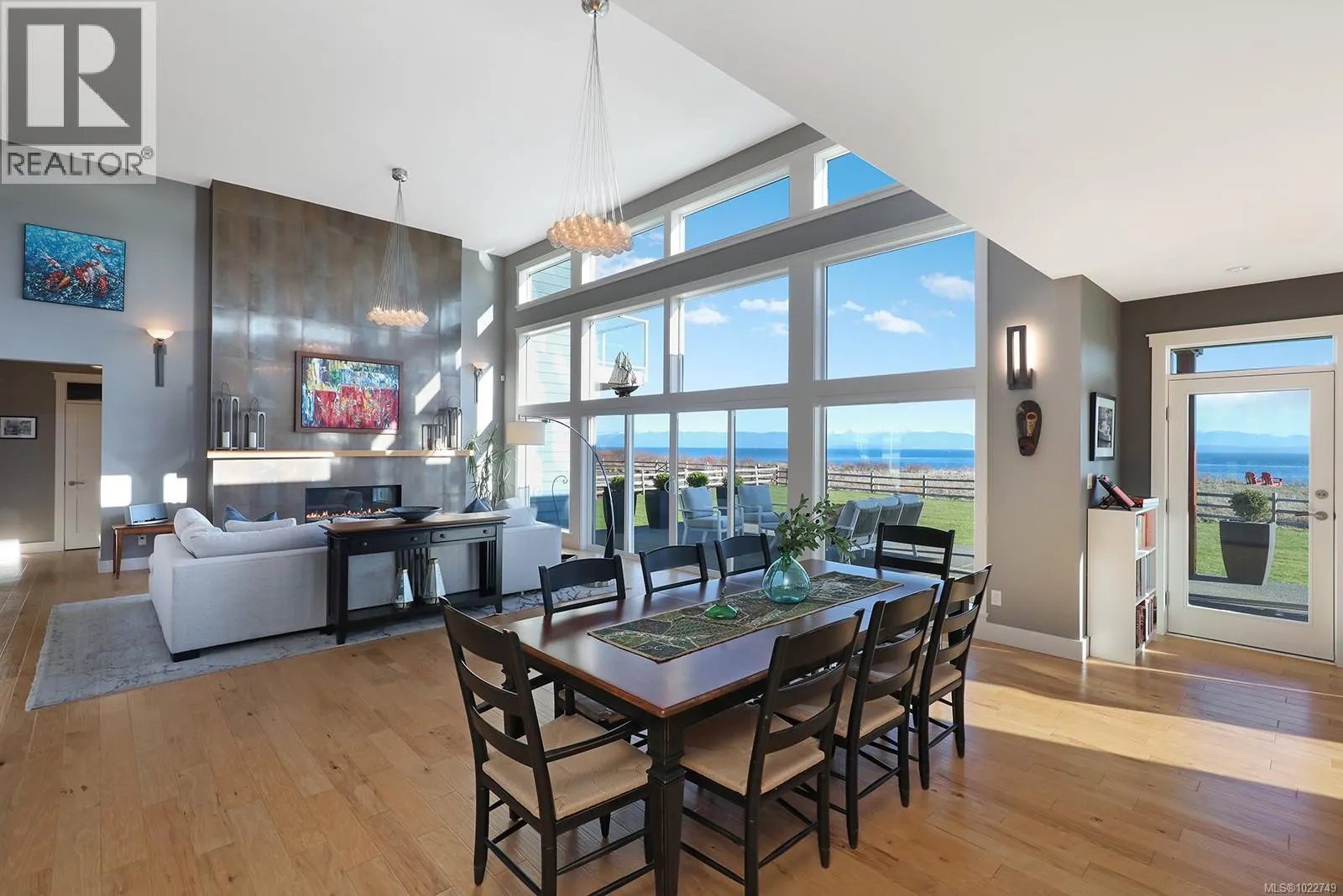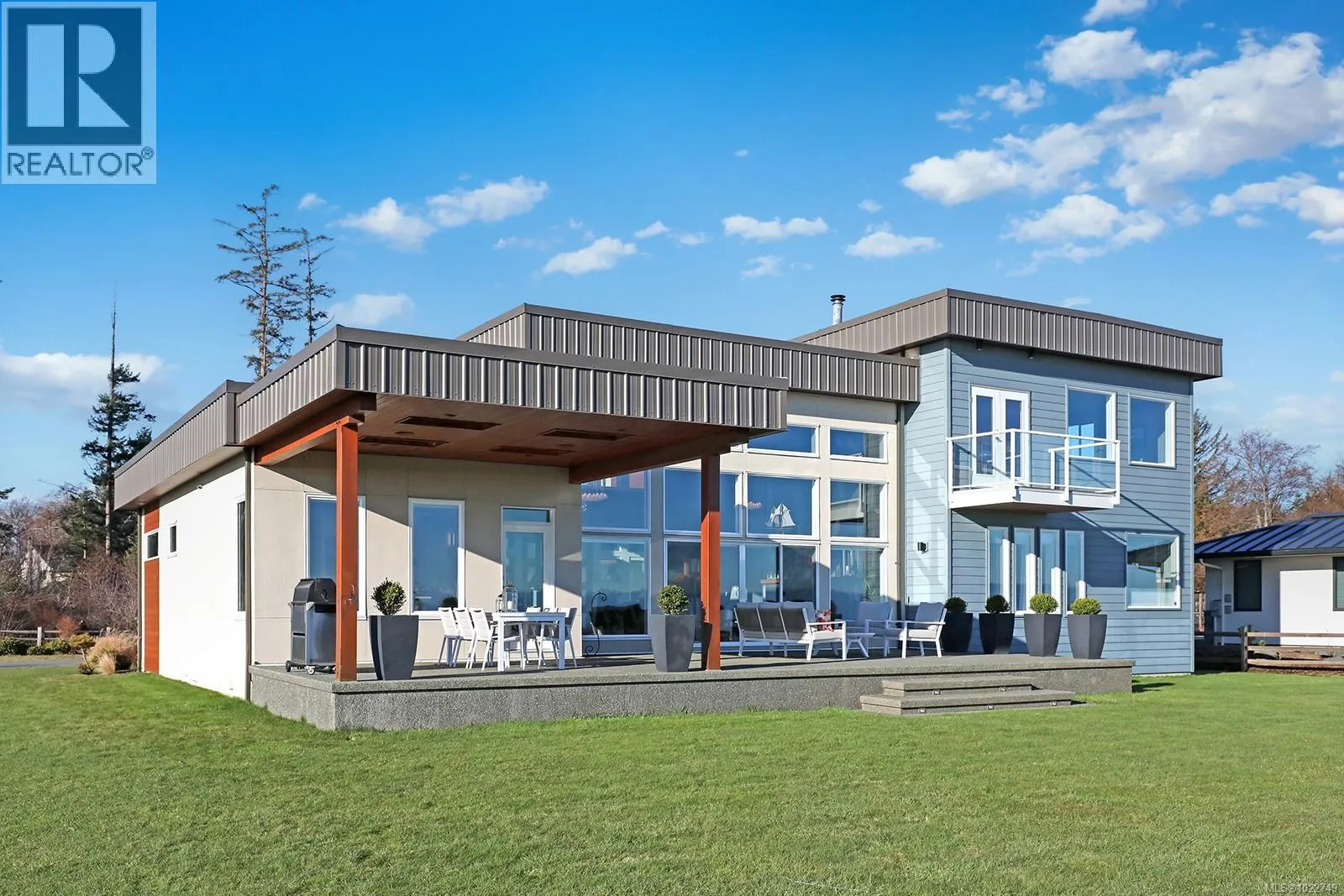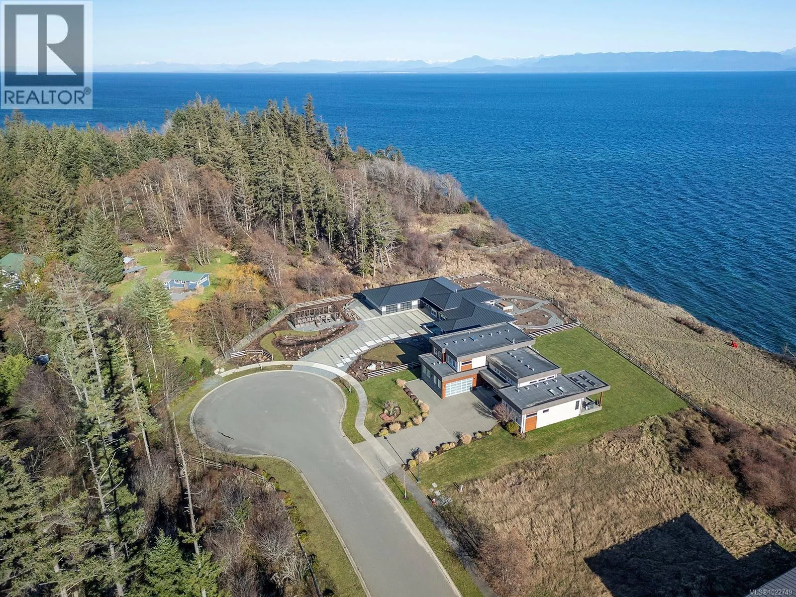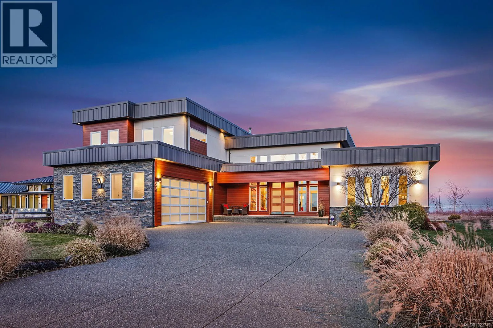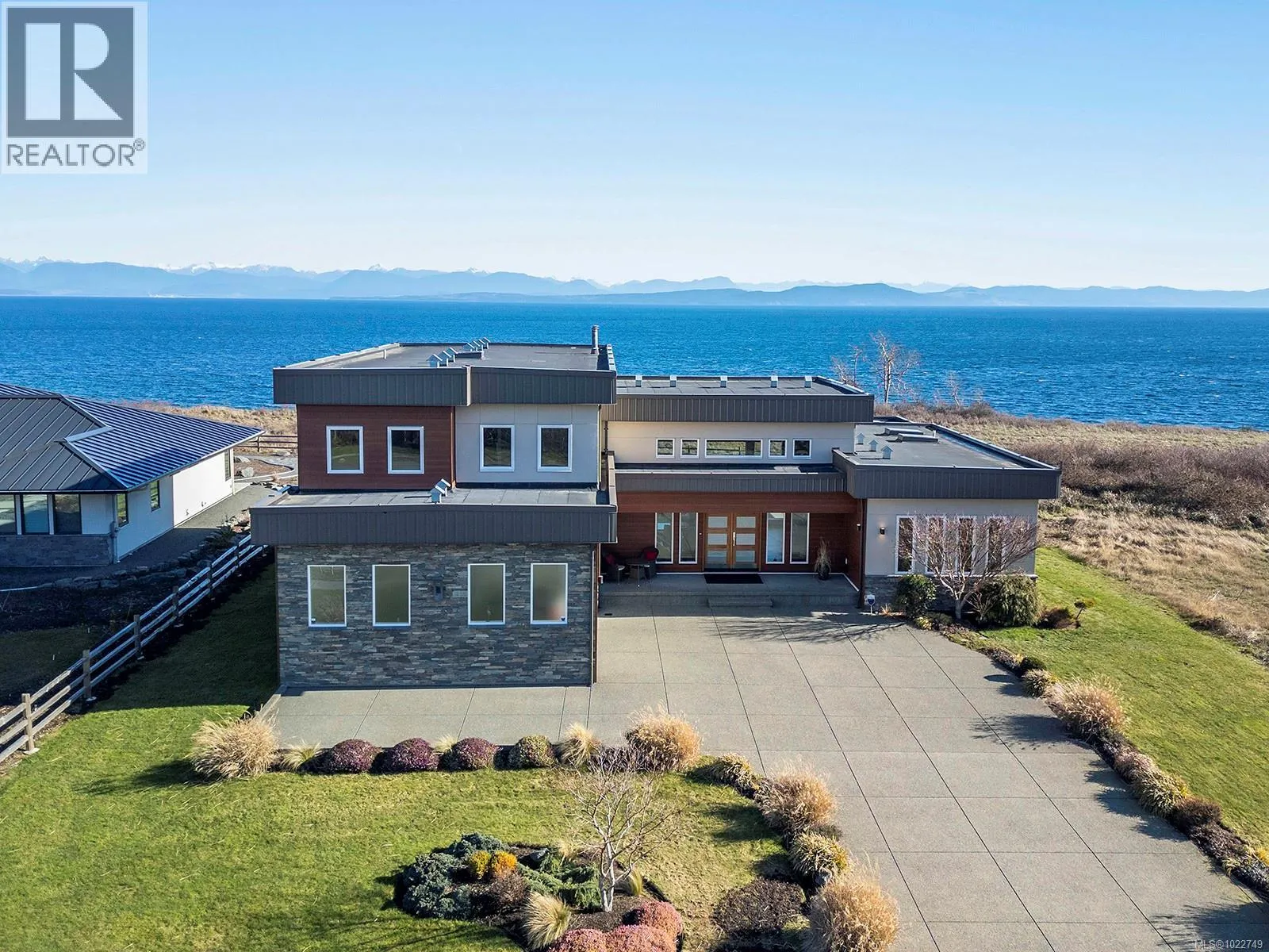Stunning West Coast Ocean views across the Strait of Georgia to the snow-capped Coast Mountains beyond. Delivering panoramic views from all levels, this high-bank waterfront home of 3,415 sf, 4 BD/ 3 BA offers chic contemporary styling incorporating simple luxury and refined elegance. Streaming sunlight highlights the bright open plan w/ floor to ceiling windows & 15â5â ceilings in the Great Room, striking bronze tiled propane gas fireplace w/ fir timber mantle. Bright white kitchen w/ contrasting wood finished island, Wolf gas cooktop, Jennair dbl oven, pantry, & access to the covered patio w/ 4 skylights. Adjacent to the kitchen is a den/bedroom/formal dining room. The primary suite offers luxury, solitude, and 5 pce ensuite w/ soaker tub, glass & tile shower, dual sinks and views! Upstairs there are 2 bedrooms, den/small bedroom, & entertainment room w/ wet bar, ideal for media, pool table, & access to the deck. Doggie shower, 6â crawl, Longboard aluminum siding âBuilt to last.â (id:27476)