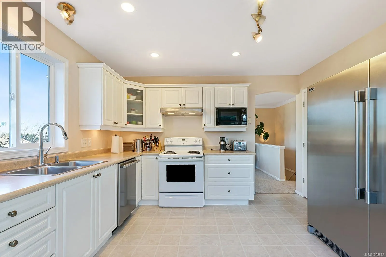Perfect Comox family home! Located within walking distance to all levels of schools, parks & ocean beaches, this 1880+ sqft 4 bedroom, 3 bathroom home ticks off all the boxes. Enjoy sweeping views of the Coast mountains & peek-a-boo Georgia Strait vista from your bright living room, warmed by a gas fireplace. Spacious primary bedroom with ensuite features its own balcony with beautiful view! Another bedroom, bathroom + bright kitchen opening to balcony overlooking fully fenced backyard with developed veggie gardens & fruit trees completes the fine main level. Large living room/gym, 3rd bathroom, two more bedrooms, laundry mud room, storage & attached garage complete the lower level. Ideally located on a quiet, corner lot in desirable neighborhood, this great opportunity offers affordable family living, space to grow and an ideal chance to create lasting memories. Book your viewing today! (id:27476)