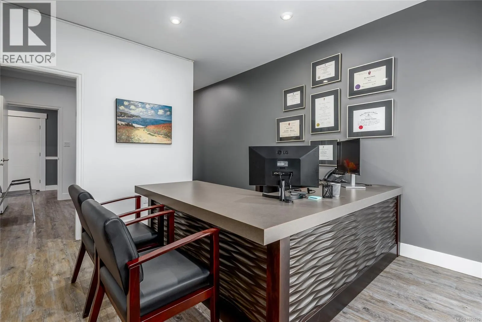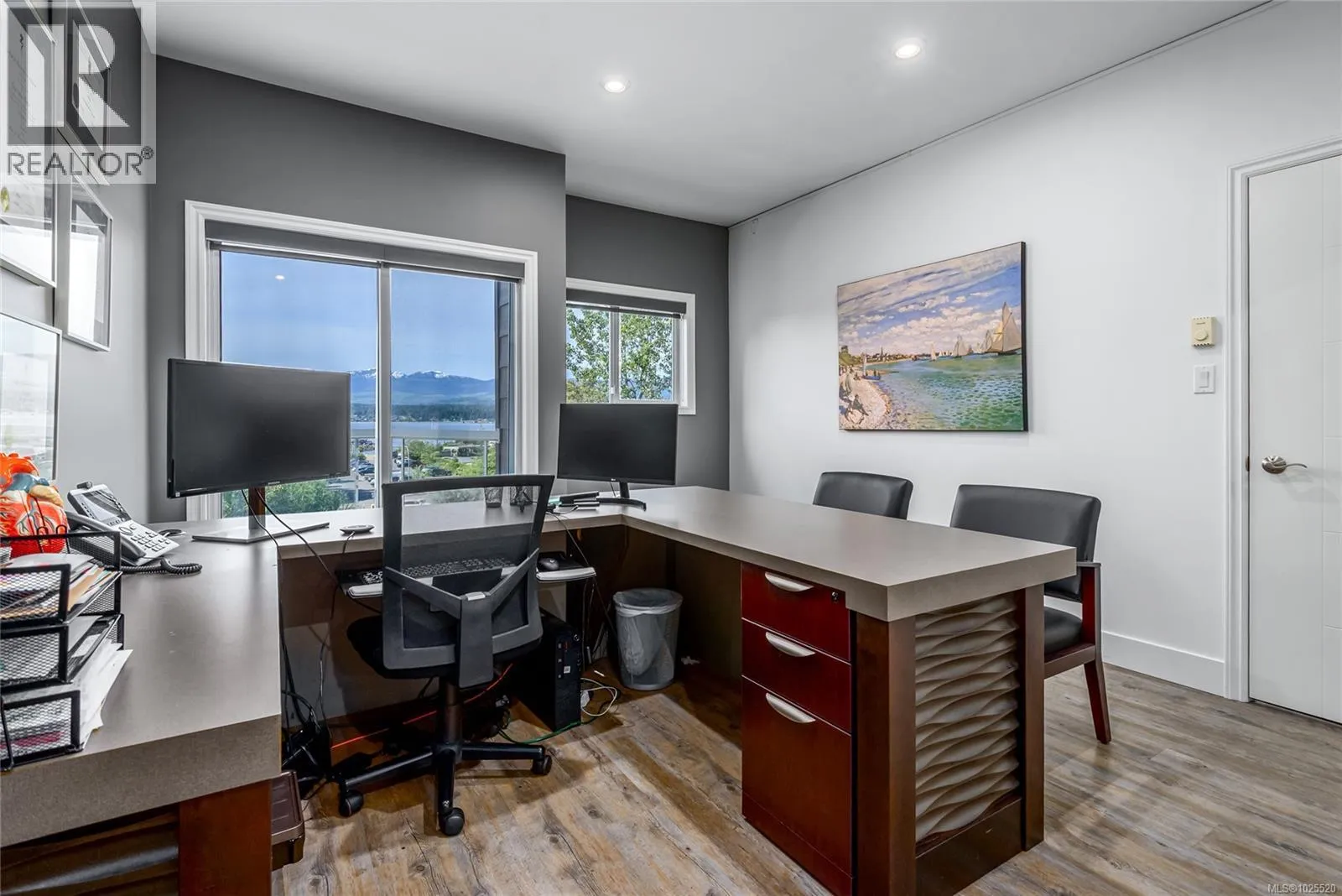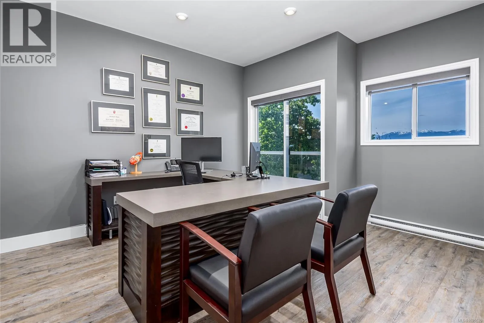 Rare Opportunity in Downtown Comox! South-facing executive office space in Beaufort Professional Centre with stunning ocean views overlooking the Comox Marina. This bright, professionally updated space is currently a medical clinic, featuring a welcoming reception area, main office with two additional office rooms, and sleek, modern décor throughout. Enjoy two sunny balconiesâone off the reception via sliding doors, and a larger Southeast-facing balcony off the main office. The building is well-maintained, with a new roof in 2024 and professional management. Located just steps to Marina Park, downtown shops, cafés, and all amenitiesâideal for a lunch break at the food trucks or a relaxing stroll by the water park. A perfect blend of professionalism and lifestyleâdonât miss your chance to elevate your business in this exceptional Comox location! (id:27476)