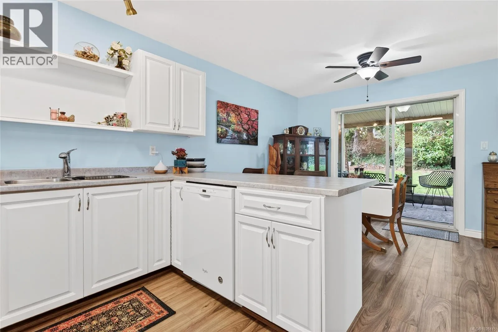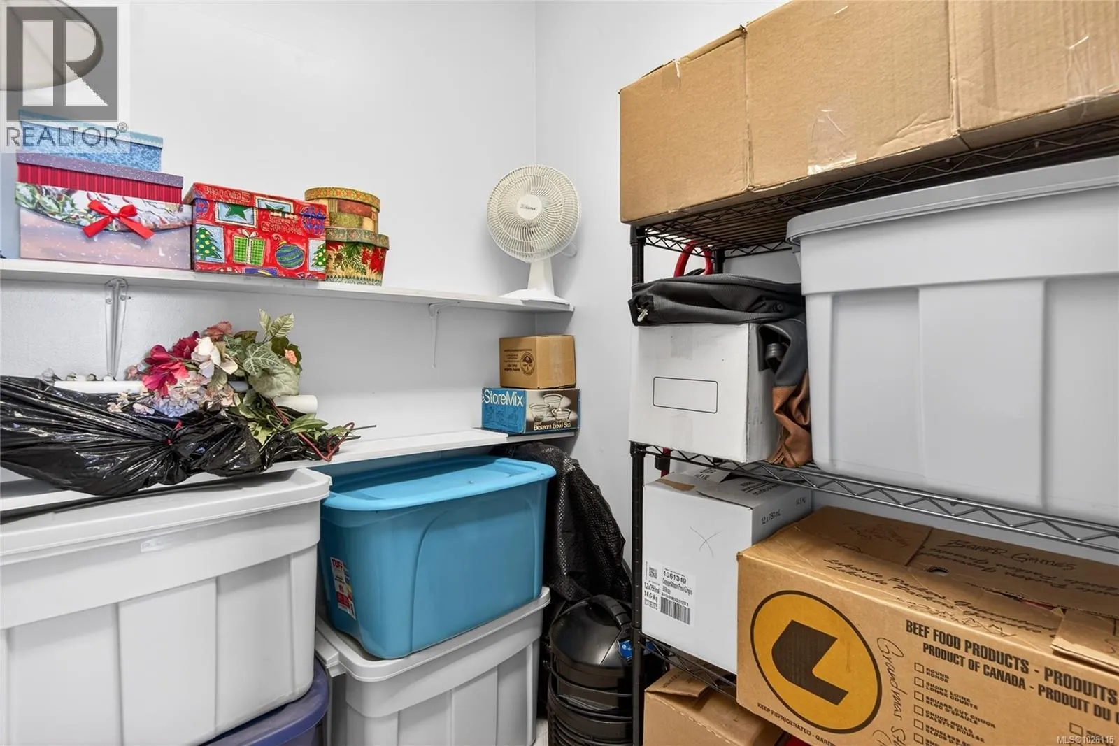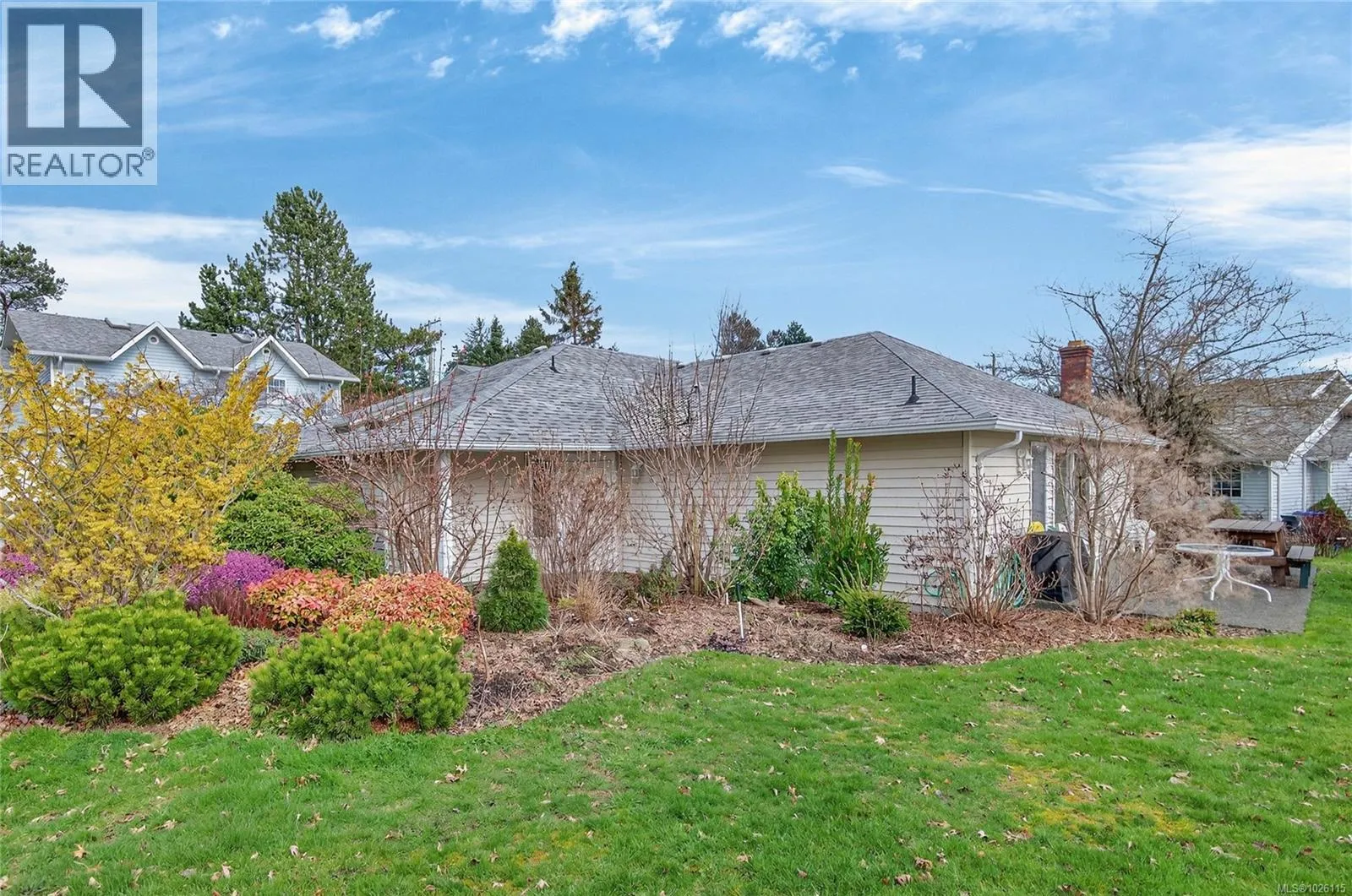 Welcome to Eagle Ridge Estates a beautiful 55 plus community in the town of Comox. This 1283 sqft two story townhouse style unit features a bright and spacious kitchen with plenty of cupboard and counter-space, the kitchen opens to a dining area and large living room complete with warm Gas Fireplace. Downstairs you will also find a updated powder room, laundry and garage access for your car, storage or recreation items. Upstairs is two bright bedrooms including a primary with walk-in closet, and a second bedroom that captures lovely ocean and mountain views and a fresh fully renovated main bathroom also there is a bonus storage room upstairs. This complex is in a great location within walk-able amenities and located in a great low maintenance strata community including access to a clubhouse and guest suite for overnight visitors. Lots of recent updates including easy care flooring, fresh paint, new window coverings, and a fully redesigned rear covered patio space. (id:27476)