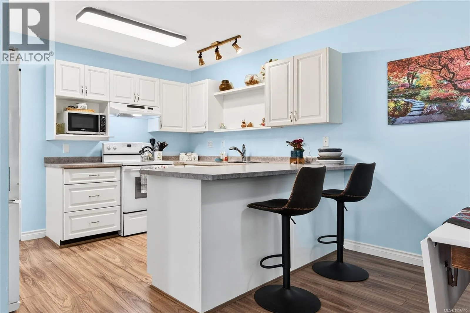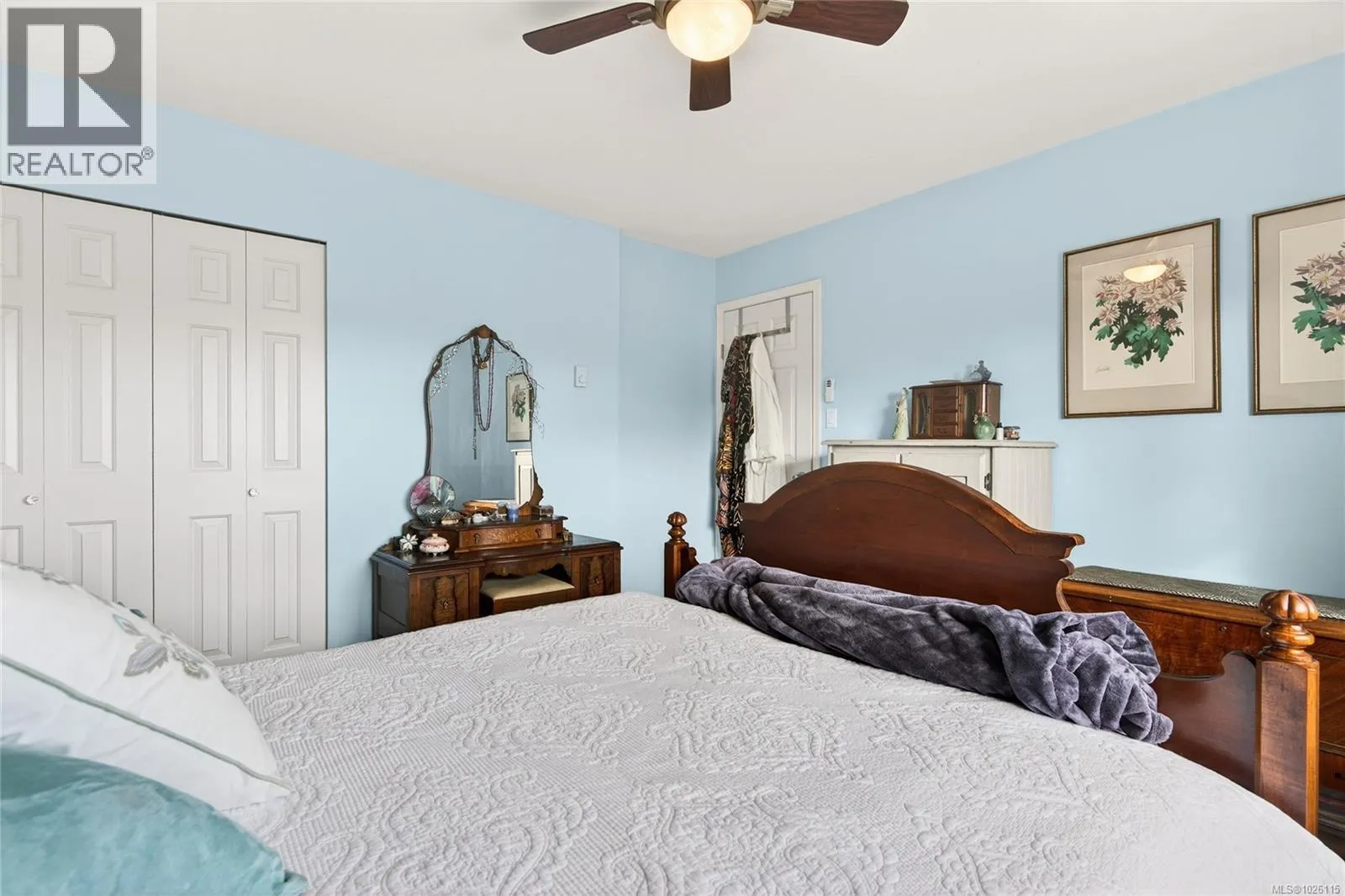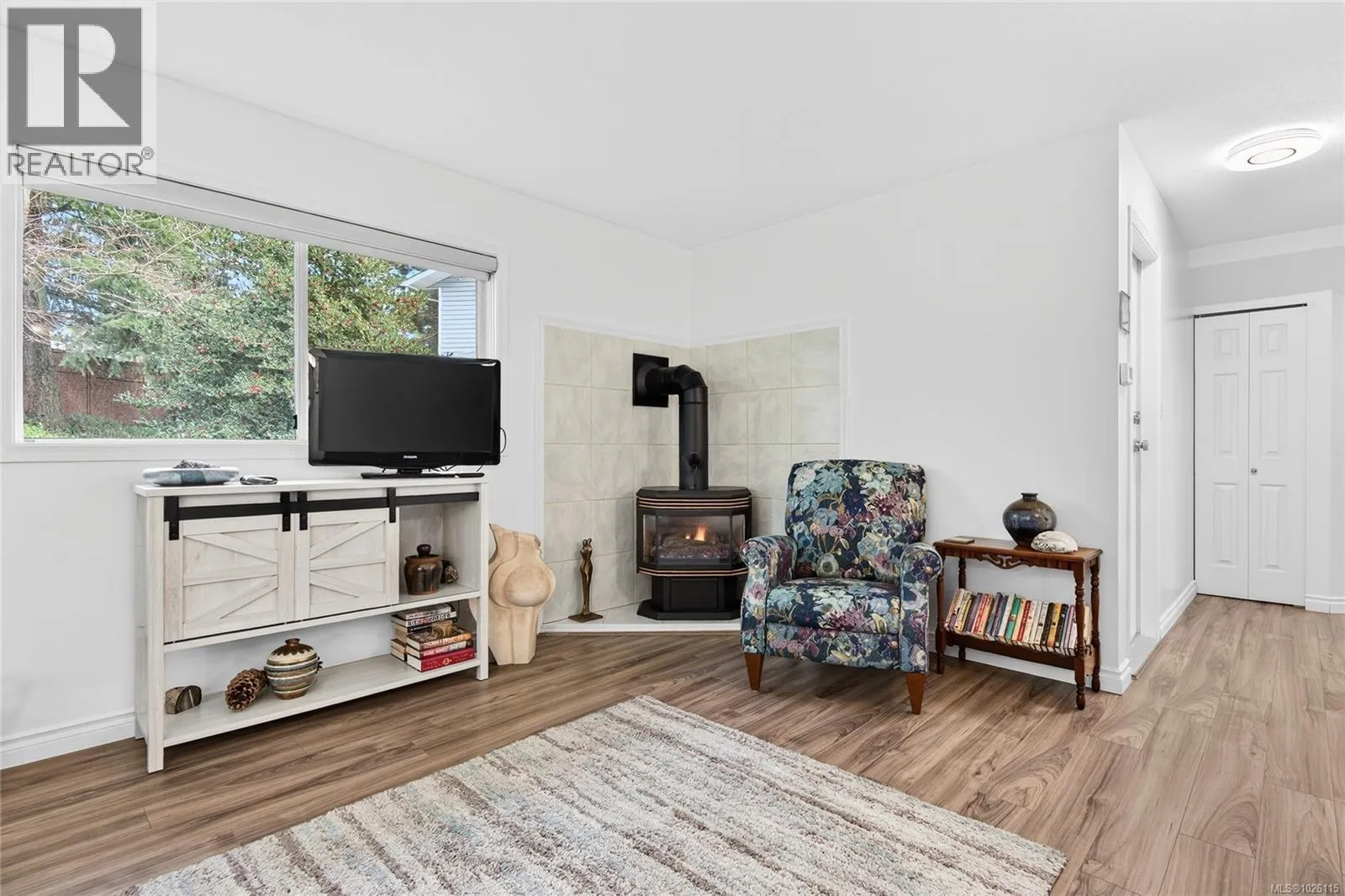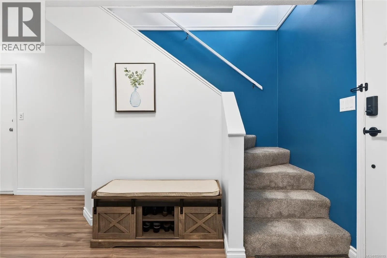 Welcome to Eagle Ridge Estates a beautiful 55 plus community in the town of Comox. This 1283 sqft two story townhouse style unit features a bright and spacious kitchen with plenty of cupboard and counter-space, the kitchen opens to a dining area and large living room complete with warm Gas Fireplace. Downstairs you will also find a updated powder room, laundry and garage access for your car, storage or recreation items. Upstairs is two bright bedrooms including a primary with walk-in closet, and a second bedroom that captures lovely ocean and mountain views and a fresh fully renovated main bathroom also there is a bonus storage room upstairs. This complex is in a great location within walk-able amenities and located in a great low maintenance strata community including access to a clubhouse and guest suite for overnight visitors. Lots of recent updates including easy care flooring, fresh paint, new window coverings, and a fully redesigned rear covered patio space. (id:27476)