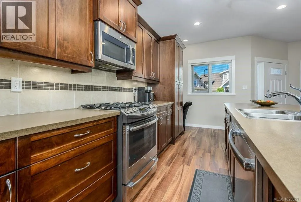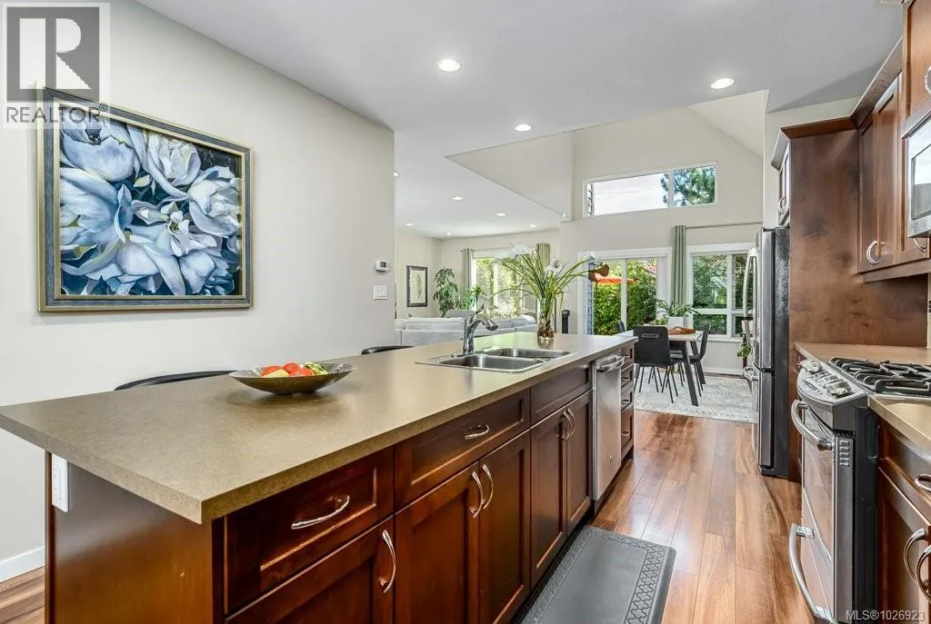 A Stunning End-Unit! Spacious 3 bed, 2.5 bath townhome in a desirable park-side setting at Lancaster Heights. The main level offers open-concept living with soaring ceilings, quality laminate, a den/office with French doors, and a bright kitchen featuring stainless steel appliances, gas stove, and an oversized island perfect for meal prep and entertaining. Step outside to a private fenced patio with natural gas BBQ hookup. Additional highlights include a roughed-in vacuum system, generous storage space in the crawl, and the convenience of an attached garage. Upstairs, all three bedrooms boast excellent closet space, including walk-ins. Recent updates include fresh interior paint and a new hot water tank. Within walking distance to parks, schools, shops, and everyday amenities, this home combines stylish comfort, convenience, and a welcoming community atmosphere. Truly a must-see! (id:27476)