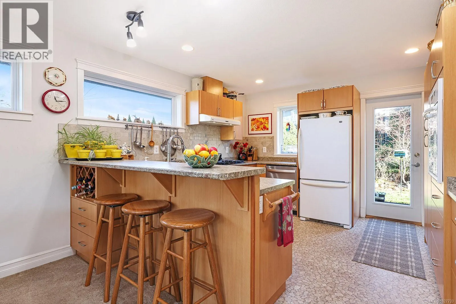 Desirable Lancaster Estates in Comox. This home has been well-cared-for and features a legal self contained 1-bedroom suite with separate access, parking, and patio. Upstairs offers three bedrooms and two bathrooms, views of the Beaufort Mountains, and access to a rear patio with a private fenced backyard featuring several fruit trees, perennial beds, and a hot tub. Close to amenities and a great trail system, and only a short walk to Aspen Elementary makes the location ideal. The home is economical to run and features two gas fireplaces, gas stoves, heat pump with air conditioning, and on-demand hot water. The mortgage helper is an asset making this property stand out in the market. For more information, please contact Christiaan Horsfall at 250-702-7150. (id:27476)