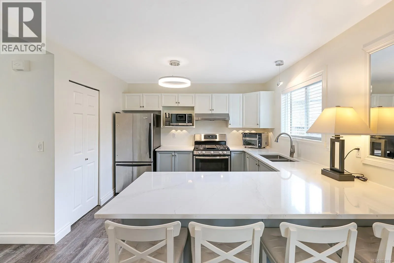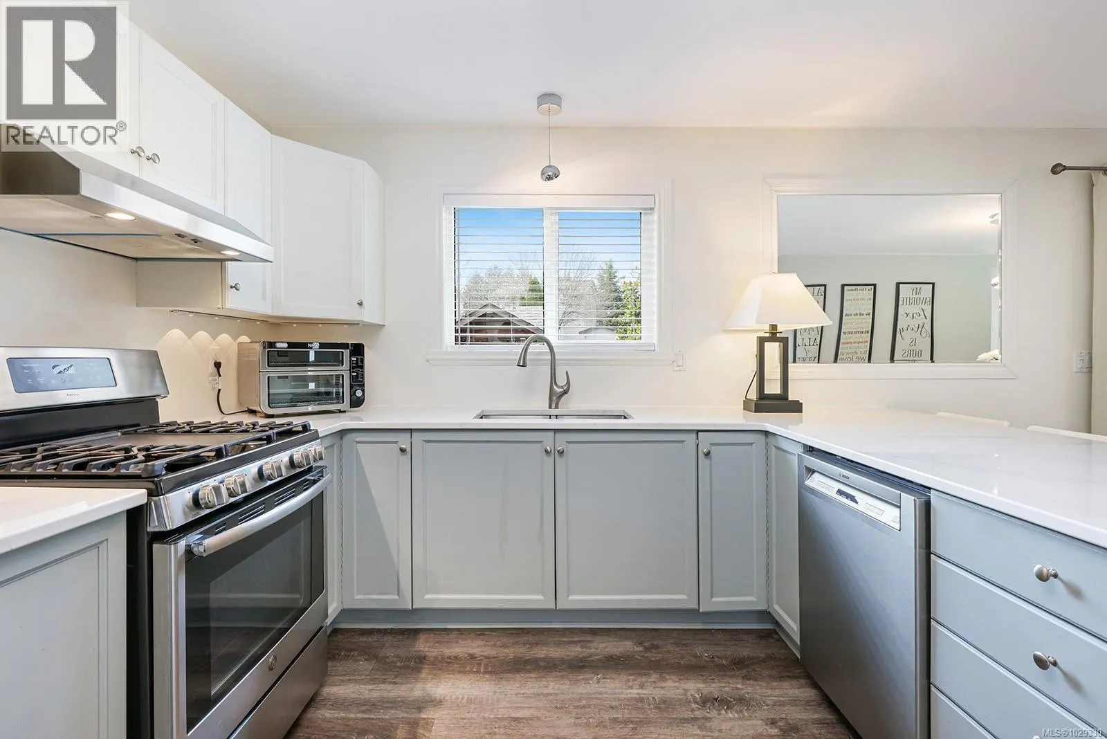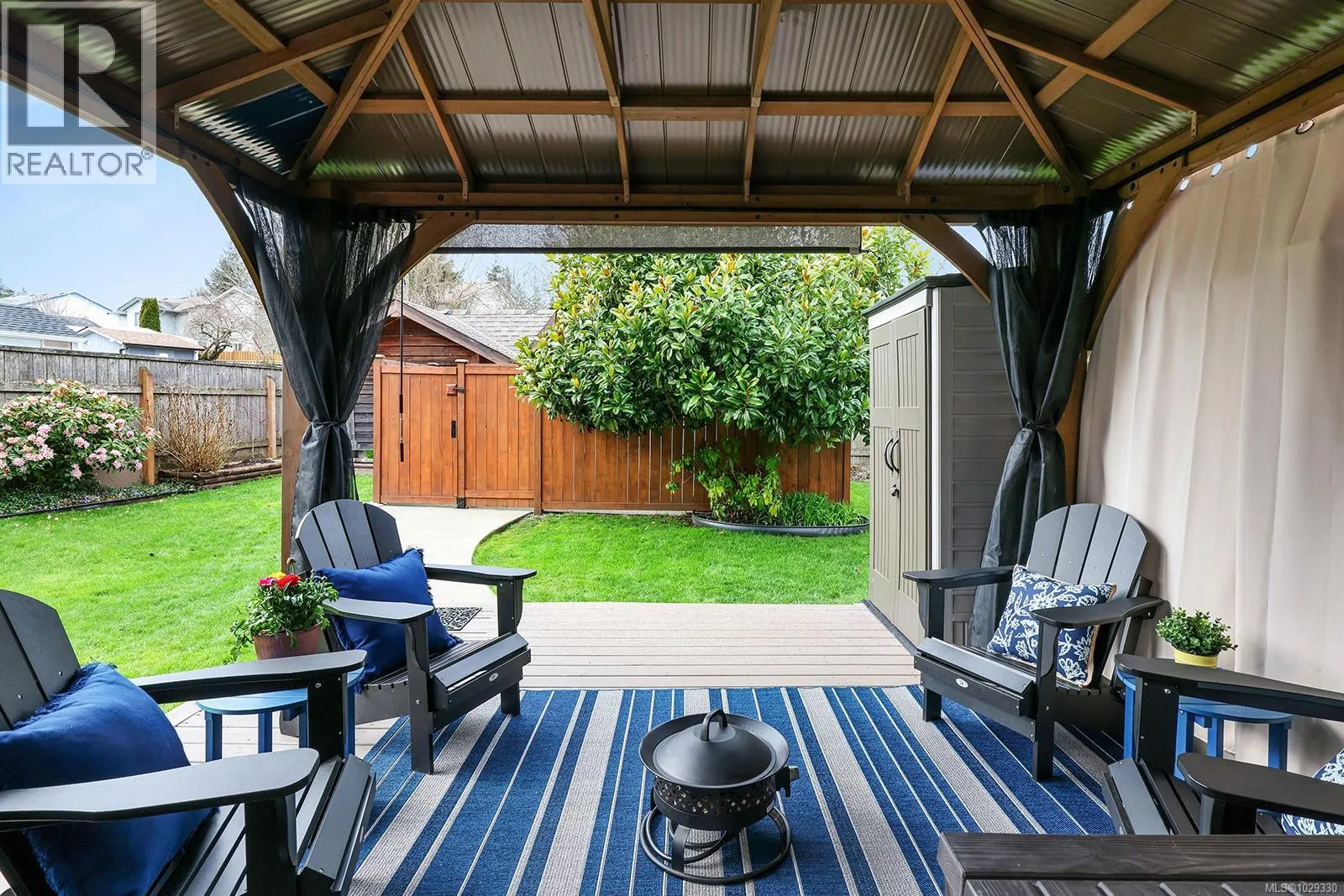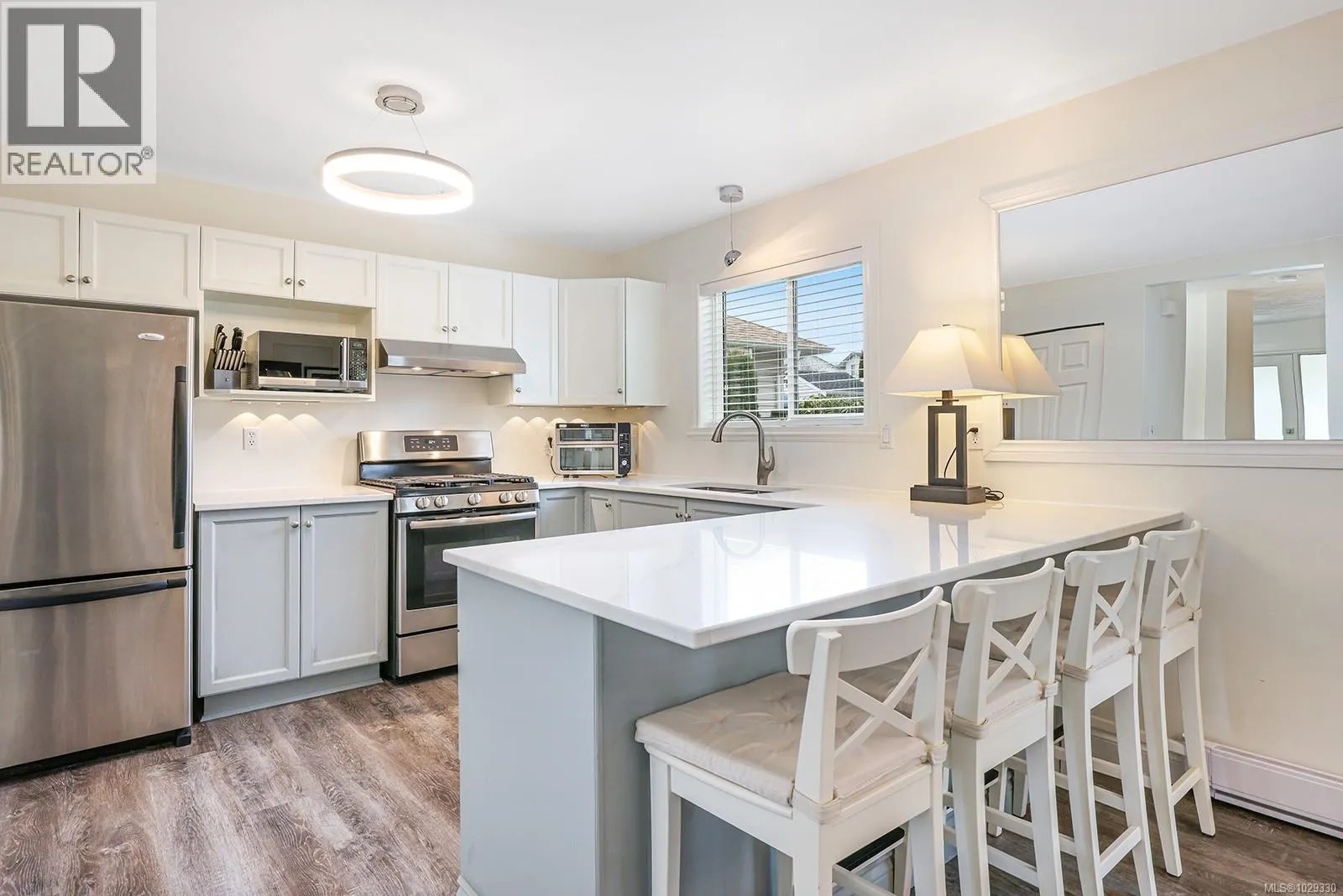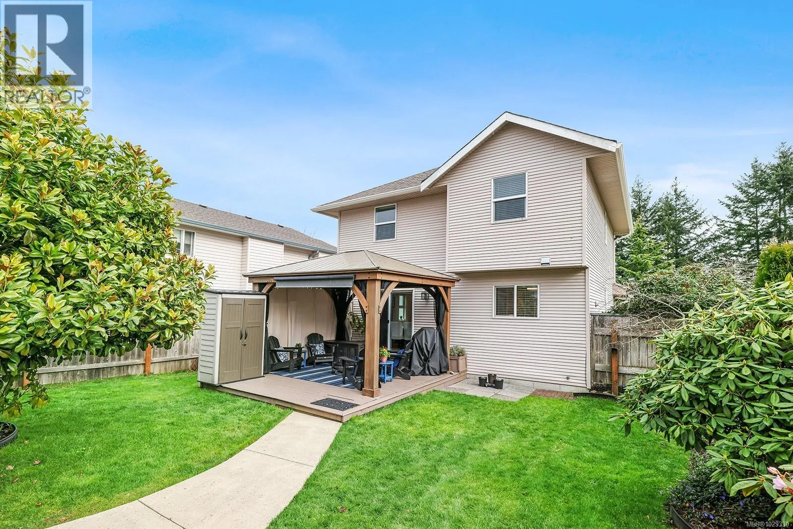 Beautifully updated and renovated! Chic, contemporary styling transformed this enchanting home w/ 3 BD/ 3 BA, 1,552 sf, creating a warm and comfortable space to share with friends and family. Bright welcoming foyer opens to the living room with a bay window, and lovely gas fireplace, kitchen offers soft tones and s/s appliances, gas stove, quartz counters w/ seating, adjacent dining room offers easy access to the private backyard. Enjoy peaceful summer evenings under the 12â x 14â gazebo, in the fully fenced yard with mature landscaping. Upstairs 3 spacious bedrooms, a vaulted ceiling in the master and a spa like ensuite with gorgeous soaker tub, stylish main bath & laundry. The updates include bathrooms on the upper level, quartz counters, appliances, gas stove and f/p, luxury vinyl flooring, lighting, skylight, front door & sidelights, sliding door, most windows, irrigation, fencing, gutters. Parking & laneway access with a shed for storage. Close to schools, trails and beaches! (id:27476)