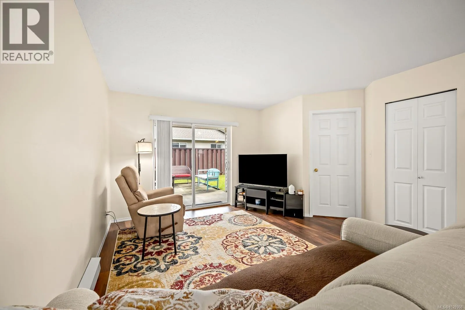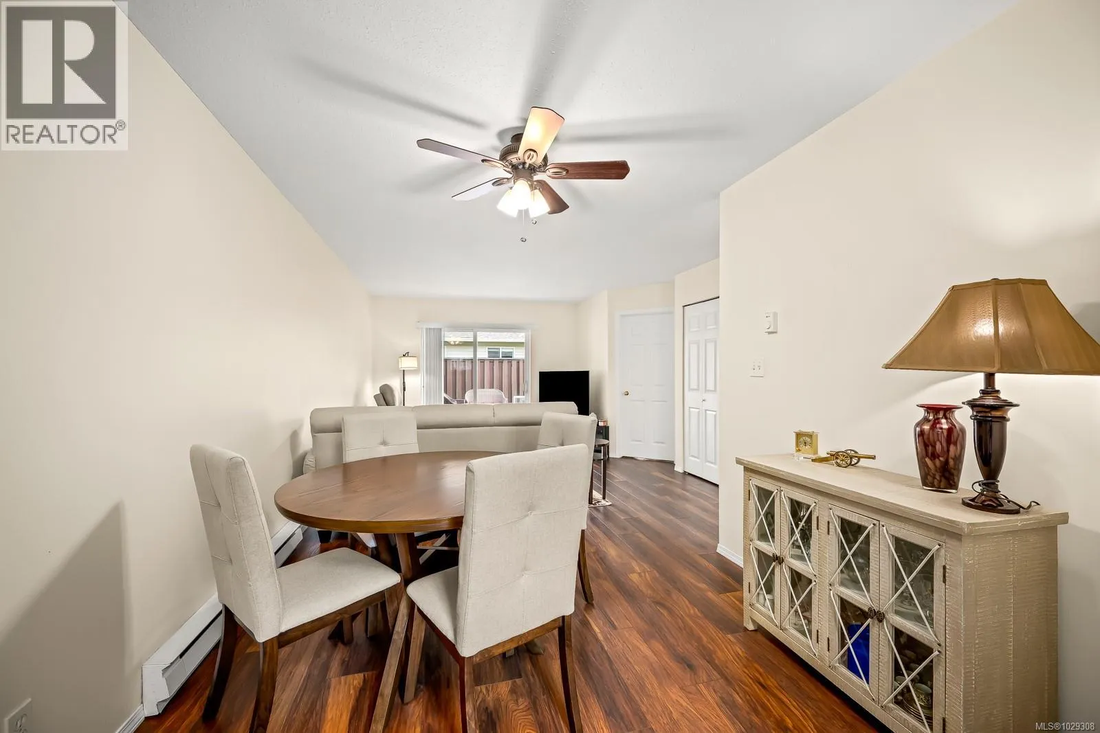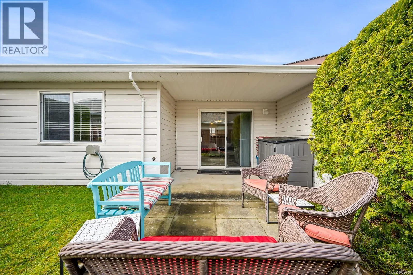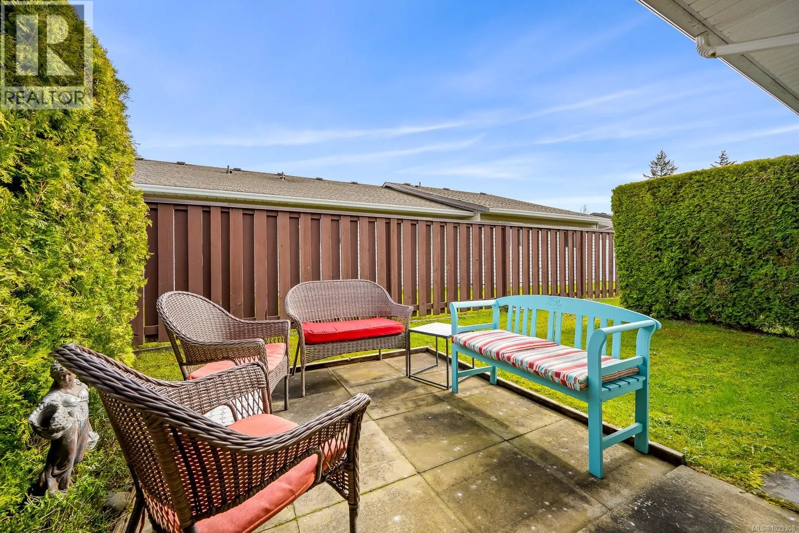 Affordable Comox patio home! Bright, clean & centrally located in desirable Comox neighborhood close to shopping, parks & amenities. This home is ideal for anyone seeking a smaller, comfortable & affordable living opportunity. Inside, the bright kitchen features plenty of counter space, backsplash & shaker cabinets. This opens to dining/living area with hardwood laminate floor & large sliding door to your private backyard patio, perfect for summer relaxing. The large primary bedroom has a walk-in closet and direct access to the well appointed 4-piece bathroom which is also accessible from the main living area. A second bedroom adds additional flexibility. With plenty of storage, this easy to maintain, turnkey opportunity within the well managed Murrelet Gardens community, allows you to simply move in and relaxâ¦in an ideal Comox location. No age restrictions. Book your showing today! (id:27476)