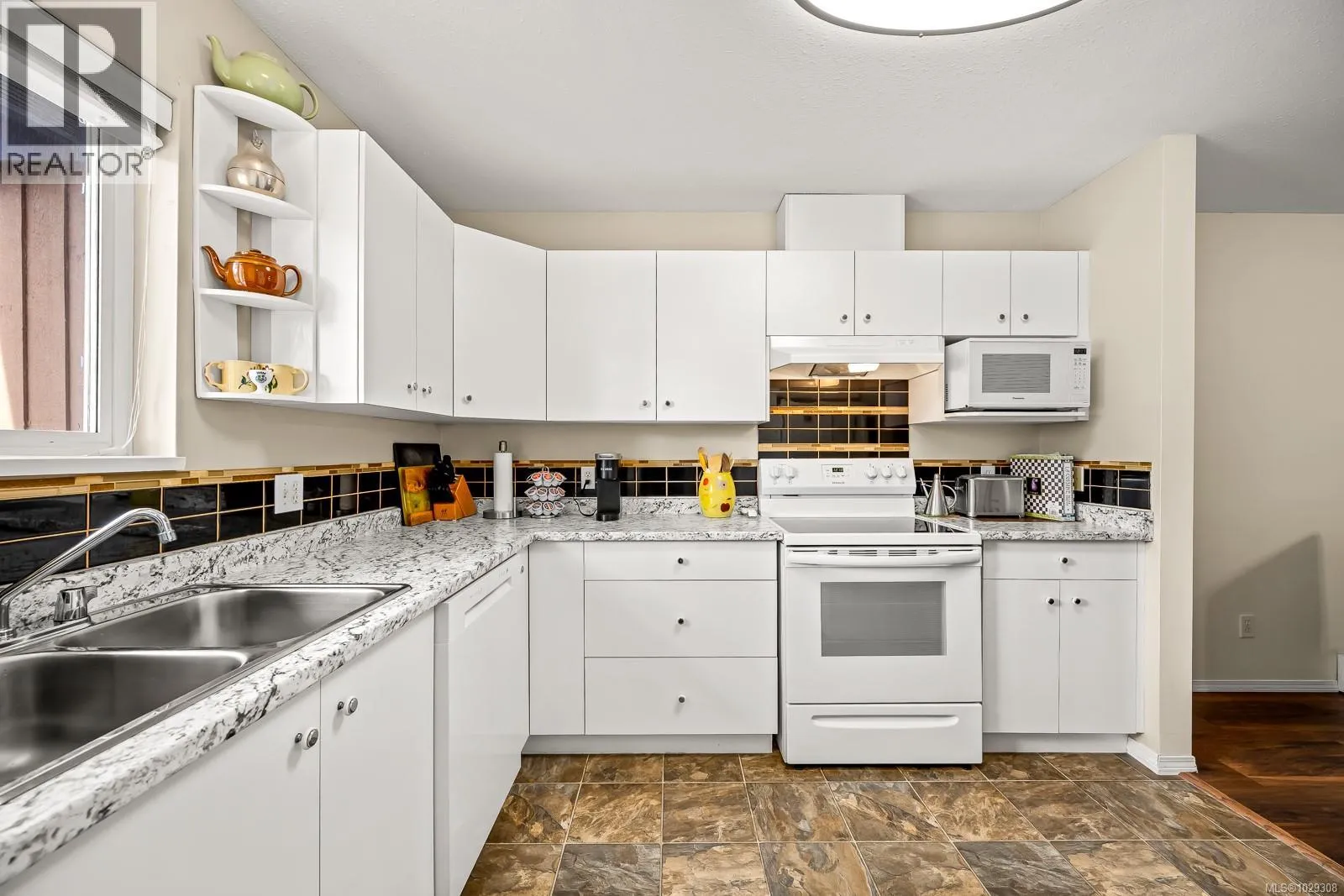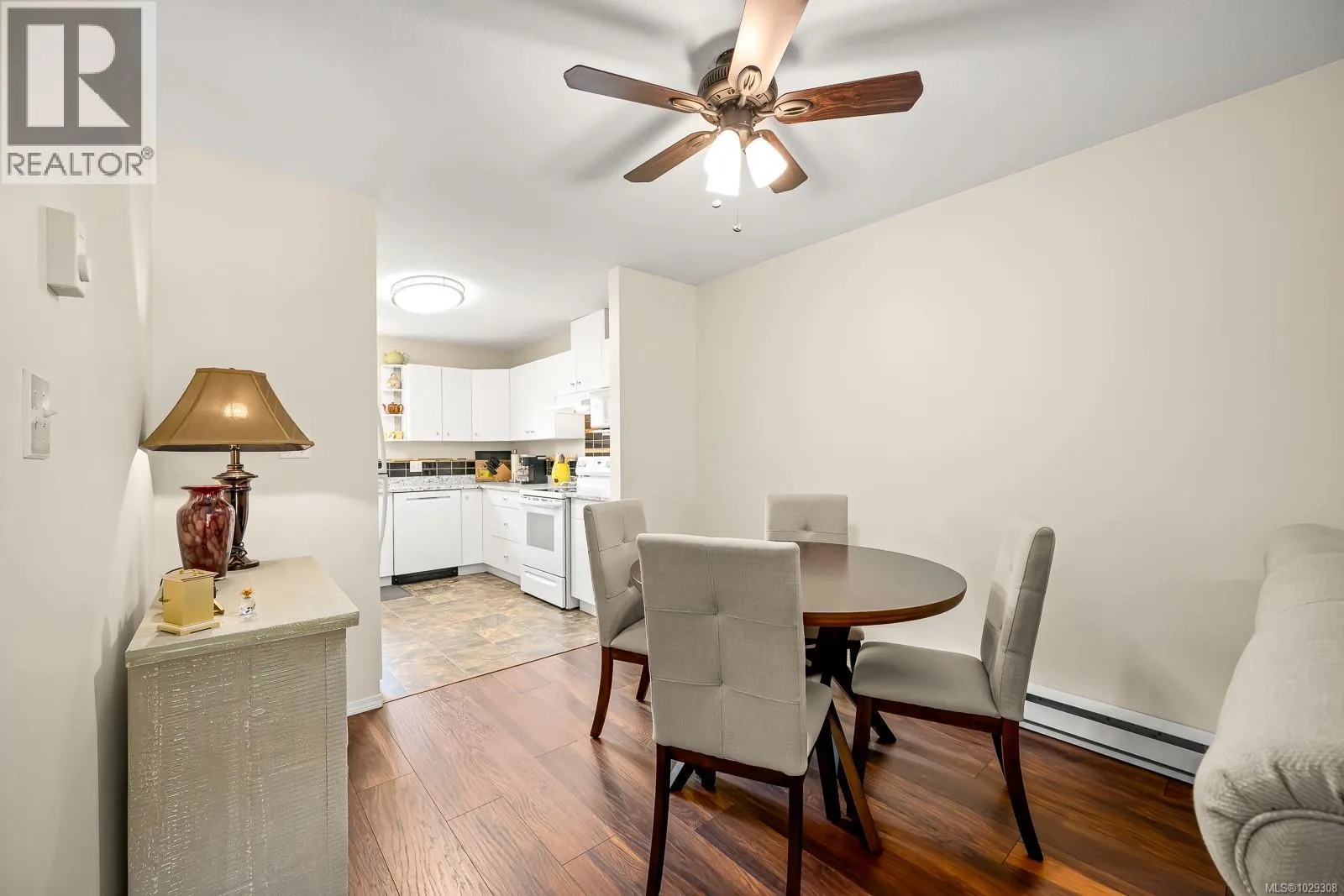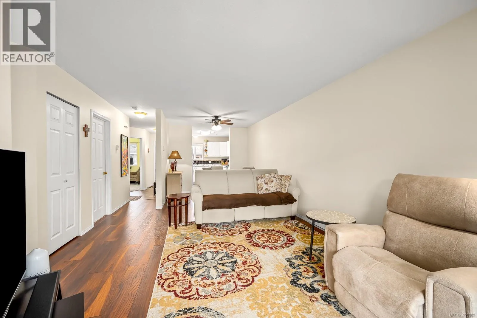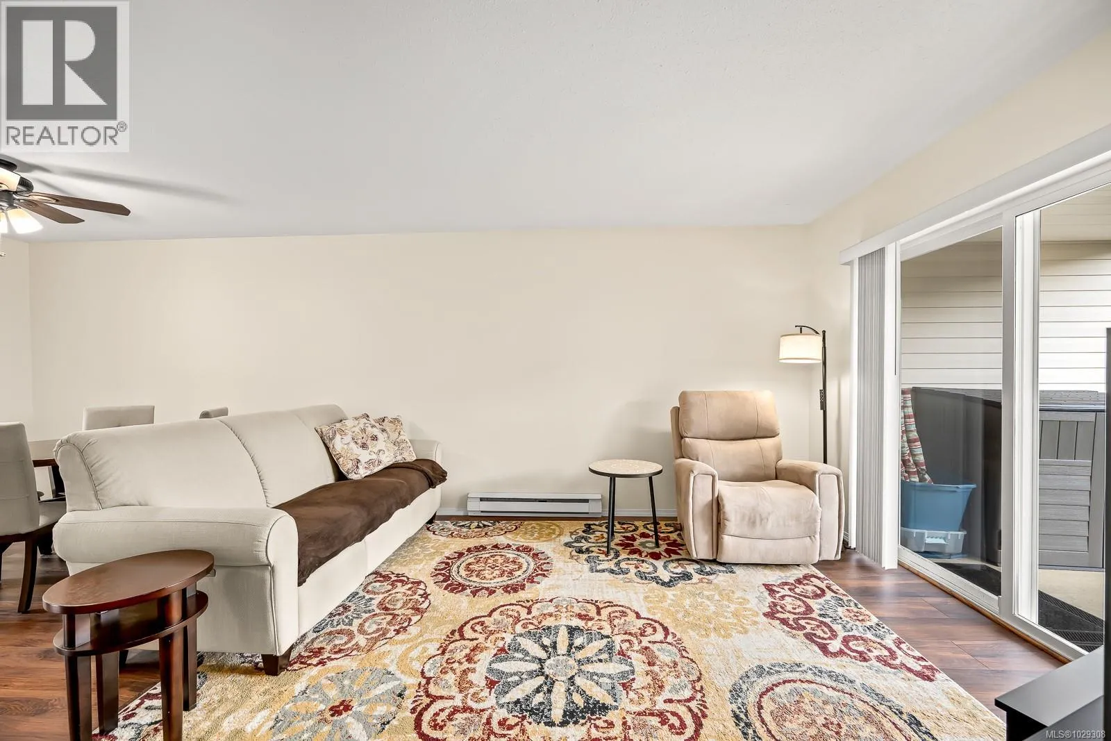 Affordable Comox patio home! Bright, clean & centrally located in desirable Comox neighborhood close to shopping, parks & amenities. This home is ideal for anyone seeking a smaller, comfortable & affordable living opportunity. Inside, the bright kitchen features plenty of counter space, backsplash & shaker cabinets. This opens to dining/living area with hardwood laminate floor & large sliding door to your private backyard patio, perfect for summer relaxing. The large primary bedroom has a walk-in closet and direct access to the well appointed 4-piece bathroom which is also accessible from the main living area. A second bedroom adds additional flexibility. With plenty of storage, this easy to maintain, turnkey opportunity within the well managed Murrelet Gardens community, allows you to simply move in and relaxâ¦in an ideal Comox location. No age restrictions. Book your showing today! (id:27476)