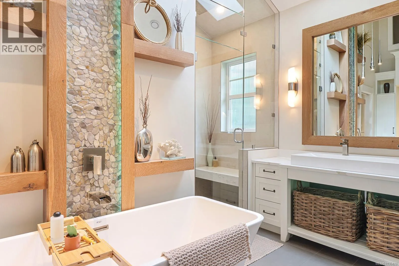 Set within the prestigious gated community of Kincora Ridge, just a short stroll to Kin Beach, this remarkable 1.38-acre estate captures the essence of privacy, luxury, and coastal living. Encompassing over 6,000 sqft of thoughtfully designed space, the 4-bedroom main residence with guest accommodation is defined by soaring vaulted ceilings, warm natural finishes, and a seamless connection between indoor and outdoor spaces. The kitchen is beautifully appointed with high-end appliances, while the primary suite offers a peaceful retreat with a spa-inspired ensuite and steam shower. Outside, the property unfolds like a private retreat, featuring a stunning inground pool, a well-designed pool house, outdoor shower, and tranquil dry sauna. A detached 2-bedroom carriage house with three additional garages offers flexibility for multigenerational living or extended use. Surrounded by nature and wonderful neighbours, this is a special offering in one of the Valleyâs most coveted communities. (id:27476)