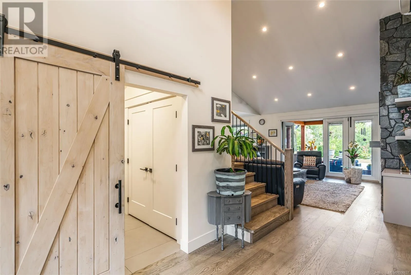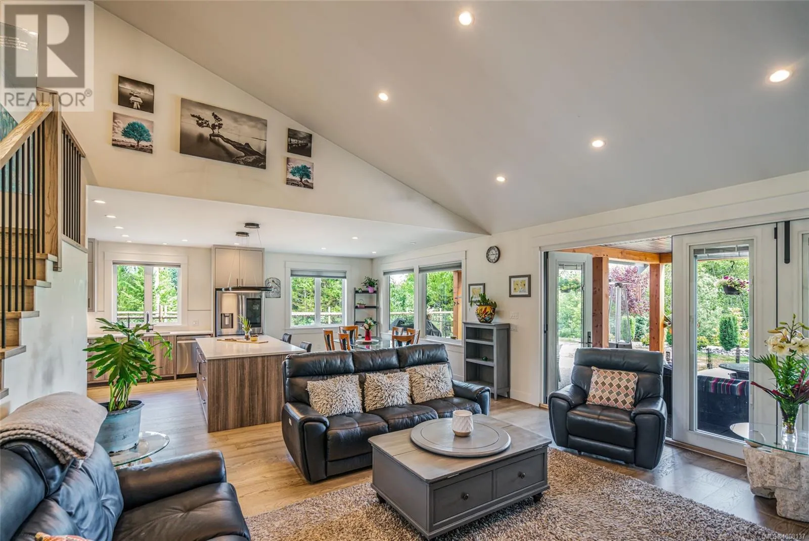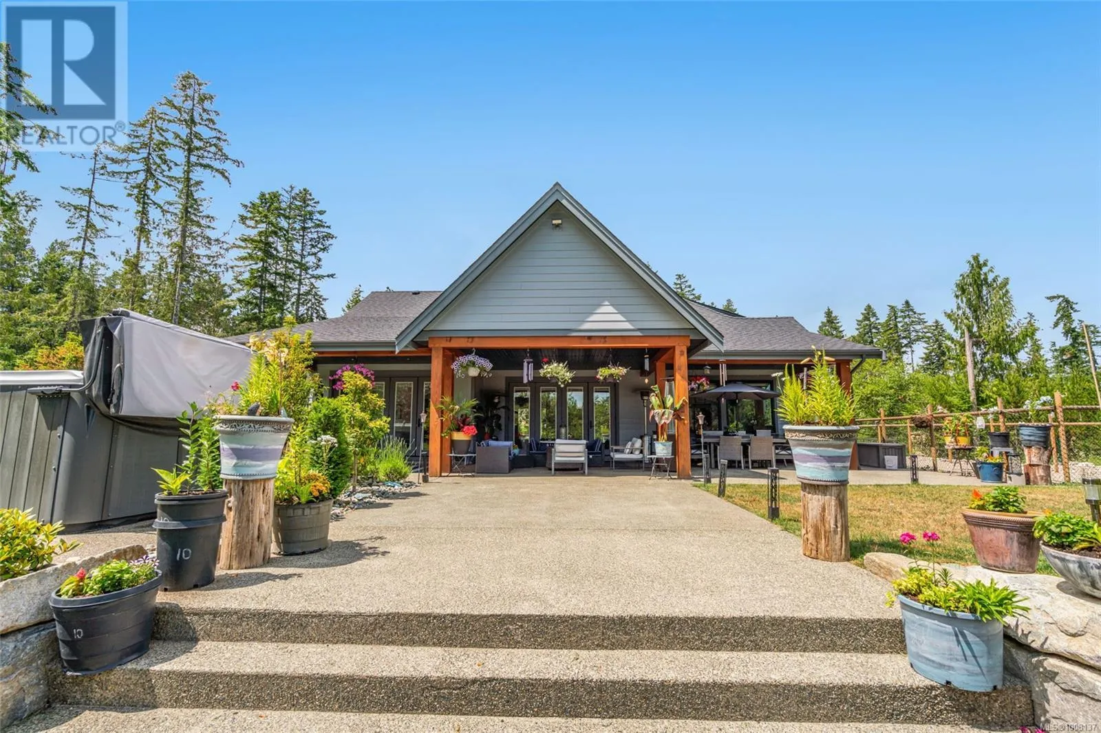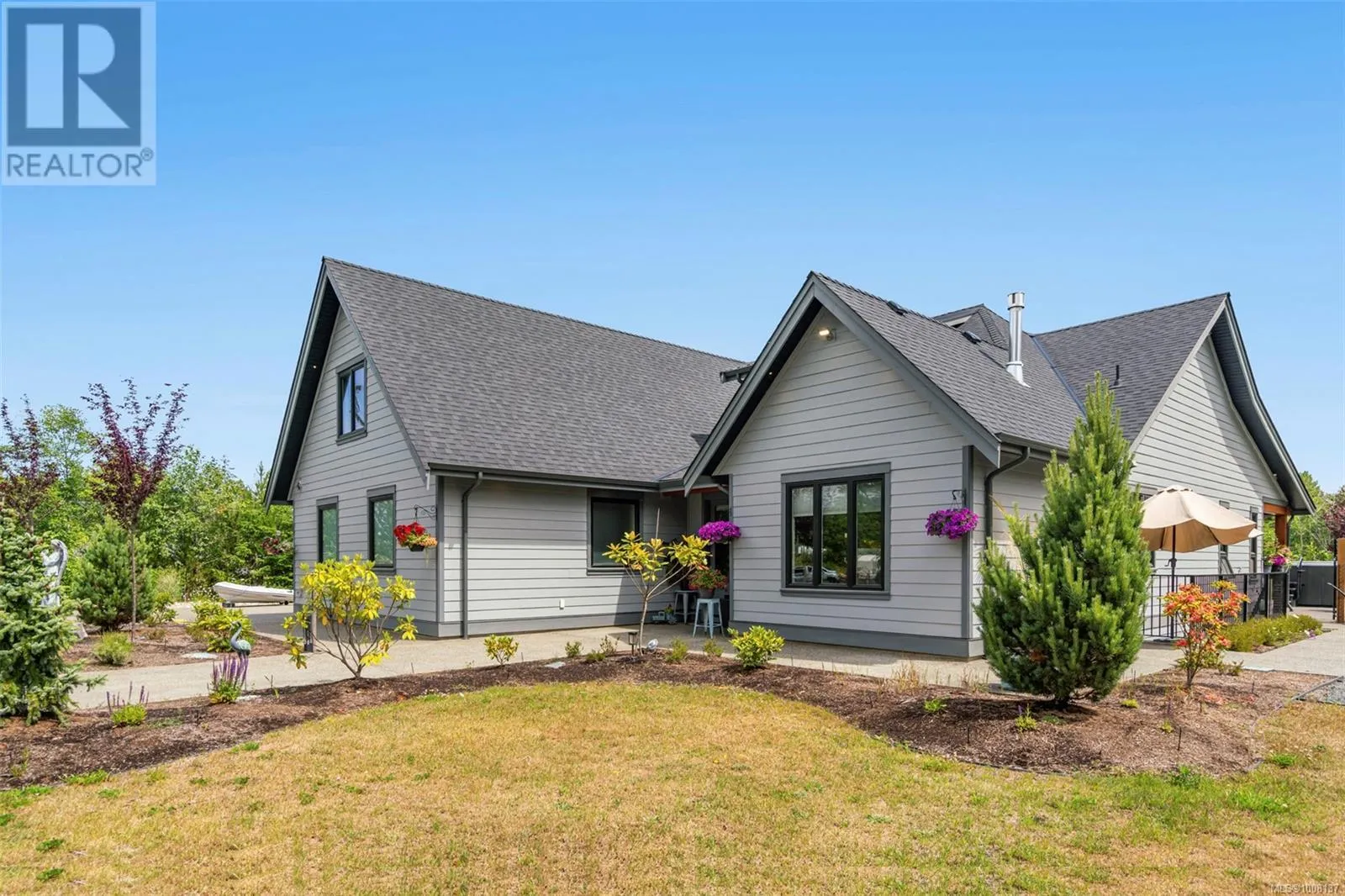 Tranquil Executive Acreage in Coombs! The perfect blend of country serenity and urban convenience! Be sure to view this spacious and bright 4 Bed/4 Bath semi-custom Executive Home on a 2.82-acre park-like parcel of land. Just three years young, the home boasts contemporary fixtures and finishes, three levels of living space, a generous use of glass for a bright ambiance, and a private resort-style yard with a swim spa, firepit, and a fenced garden area. Thereâs also a large Double Garage/Workshop, lots of parking, and an RV spot with a sani dump and included travel trailer. Tucked away in a peaceful rural setting just mins from Parksville and Qualicum Beach. An entry drive leads to a massive parking area. Step into a wide foyer with a vaulted ceiling and eng hardwood flooring that flows into the expansive Great Room. The Living Room boasts a two-storey ceiling, a heat pump, and a nat gas fireplace flanked by built-in cabinetry. The Dining Room is brightened by dual picture windows with views of the landscaped yard. The Gourmet Island Kitchen features granite CTs and quality stainless appls incl a 6-burner gas stove and âSamsung Family Hubâ fridge. The WI pantry has easy access to the Garage for grocery unloading. From the Living Room, folding glass doors open to a stunning 912 sqft patio with timber accents, partly covered for all-season enjoyment. The spacious Primary Suite has patio access, a trayed ceiling, WI closet, and a luxurious 5-piece ensuite with heated floors, a freestanding tub, gas fireplace, and a glass shower. Also on the main level: a Powder Room, Office/Den, Laundry/Mudroom, and access to a Garage/Workshop with EV charger. Upstairs you'll find a Family Room, Bedroom, and 4-pc Bath, while the lower level hosts a Rec Room, Media Room, Bedroom, Office, Bath, and Utility Room. Infrastructure is already in place for a future Carriage Home, and thereâs even potential to qualify for tax-friendly farm status. Great extras, visit our website for more. (id:27476)