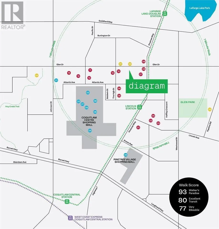 The Diagram Project is a prestigious office tower located in the heart of Coquitlam's thriving commercial urban center. Surrounded by stunning city views, vibrant restaurants, premier shopping, and just steps from transit, this Cressey-built landmark is designed to meet the highest standards of modern business operations. This 1,011 sq. ft. corner unit includes two dedicated parking spaces'a valuable convenience for both staff and clients. The space features state-of-the-art facilities and amenities, offering an unparalleled environment for businesses striving for excellence. It's a welcoming and productive space ideal for a wide range of professional uses. Reimbursement for tenant improvements (TI) can be discussed, providing additional flexibility to tailor the space to your needs. For more information, please contact Greg Liao at Greg@GregLiao.com. (id:27476)
