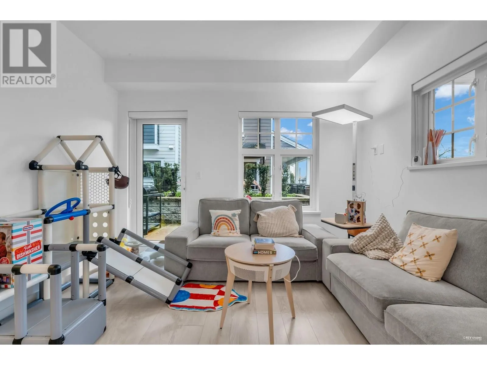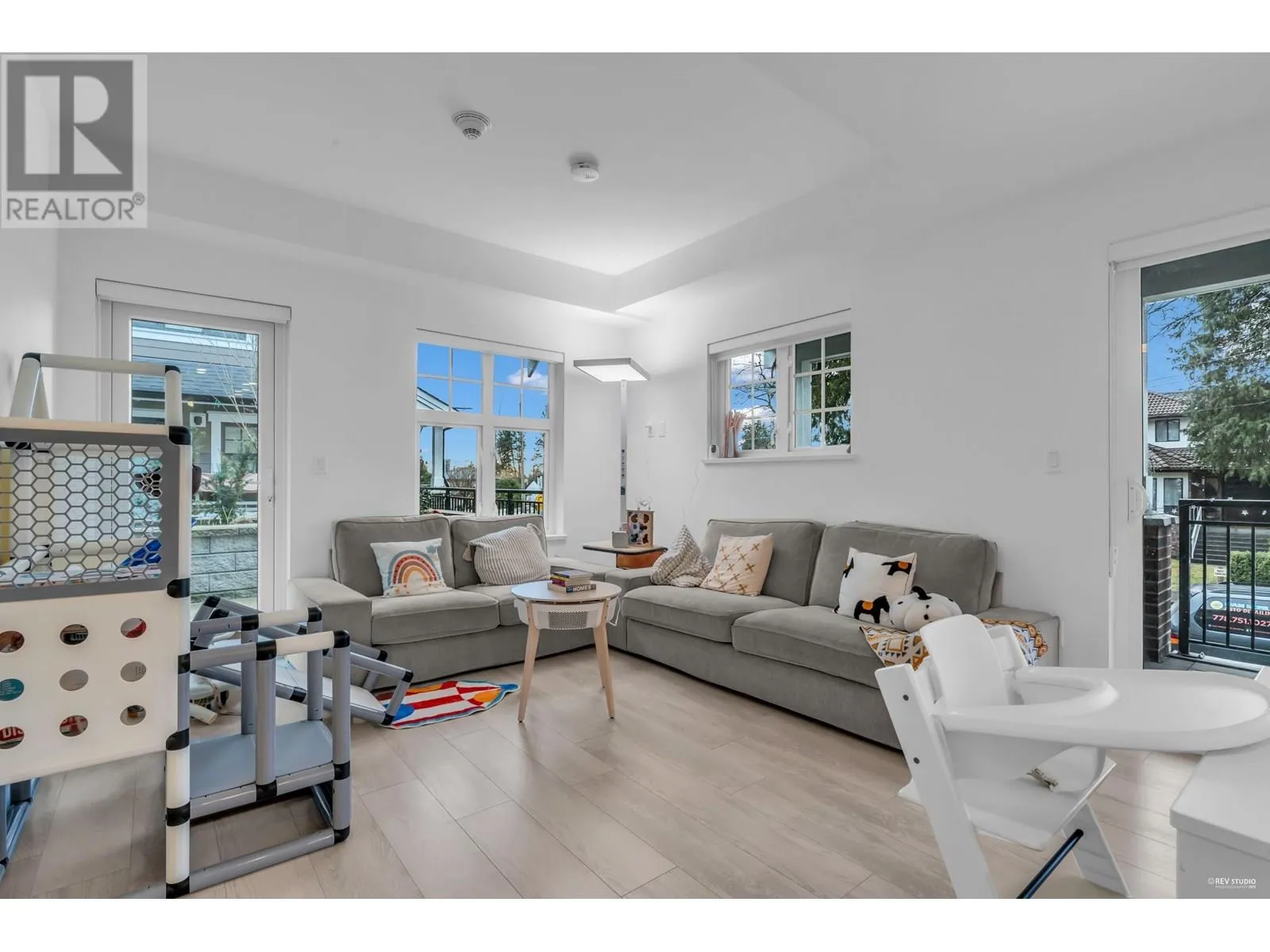 Welcome to this stunning 3-bedroom, 3-bathroom corner townhome with 9´ high ceilings and desirable north and west exposures, bathing the home in natural light. This bright and spacious residence also includes a flex room and a dedicated office. Thoughtful upgrades include air conditioning, Nuheat Floor Heating in the master bedroom and ensuite, custom closet organizers, and elegant tile laminate flooring. Step out onto the large balcony off the living room, perfect for summer BBQs and entertaining. Enjoy the convenience of street-level access to the main floor. This home is just a 10-minute walk away to the SkyTrain, YMCA, Cottonwood Park, and all the amenities of Burquitlam. One parking stall and one storage locker included. (id:27476)