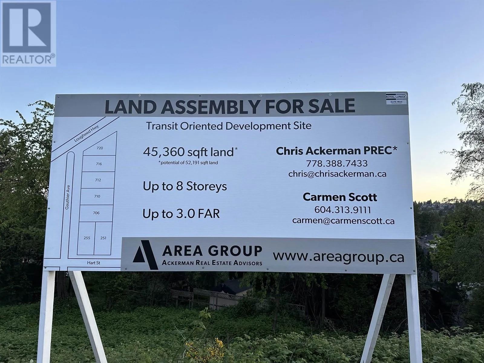 Prime Location Land Assembly. Attention Developers! Over an Acre in West Coquitlam. Lots totalling 45,360 sqft. up to 52,191 sqft. Total Buildable Floor Space Potential: 136,080 sqft up to 156,573 sqft. 8 Storey Mid Rise Condo building Opportunity. Located within 400-800m of key Transit Oriented Area. Floor Area Ratio (FAR) of up to 3.0. No Restrictions - no easements, right of ways, covenants, streams etc. Situated in a highly desirable area with excellent access to transit and amenities. 251 & 255 Hart St and 706, 710, 712, & 716 Gauthier Ave are all available for sale. For more information and to discuss this exciting development opportunity call today! (id:27476)