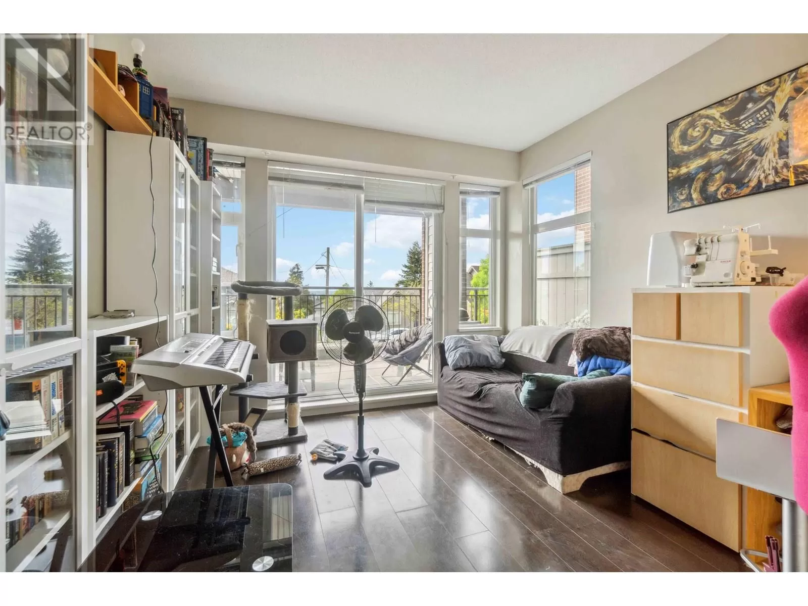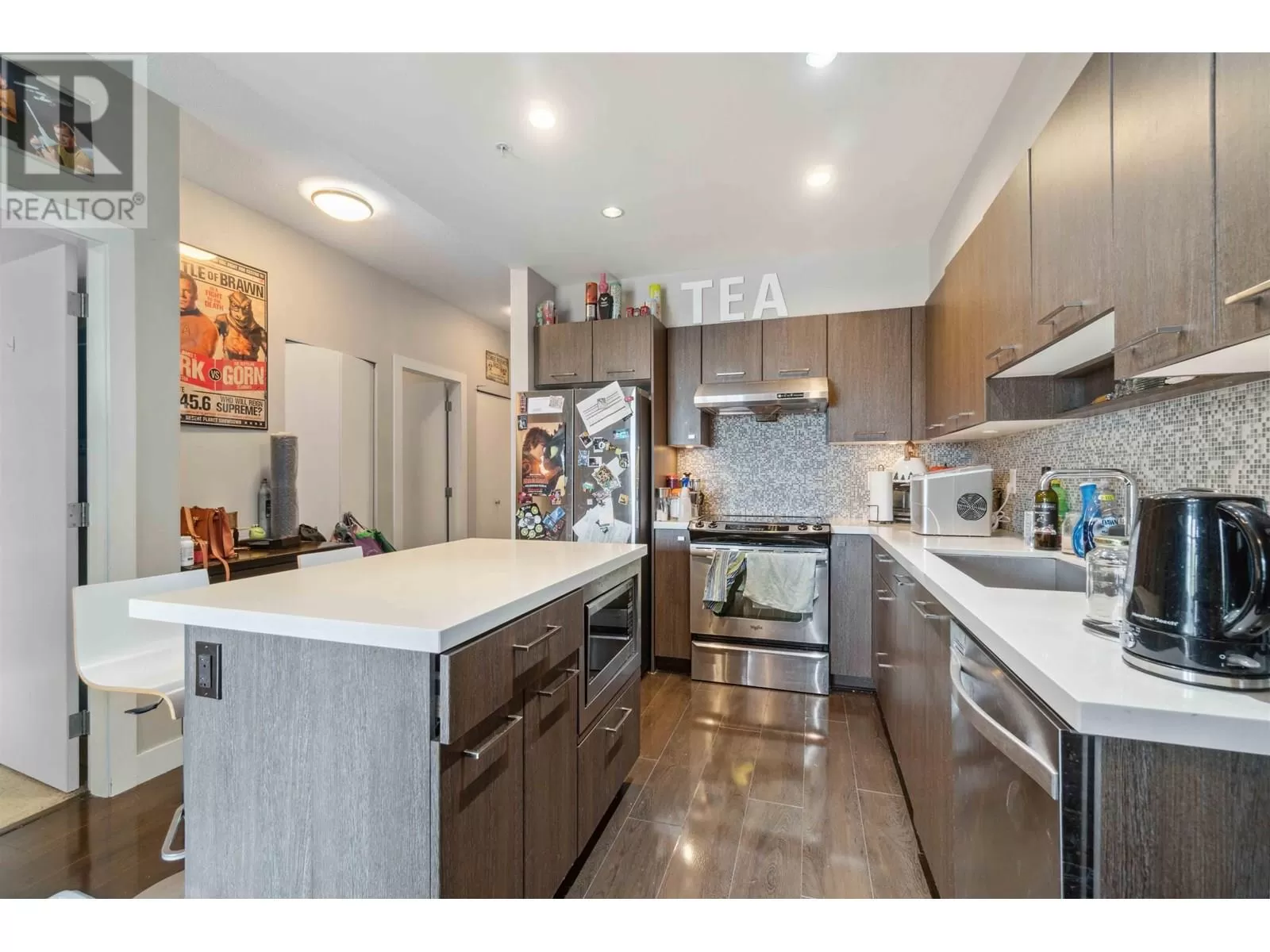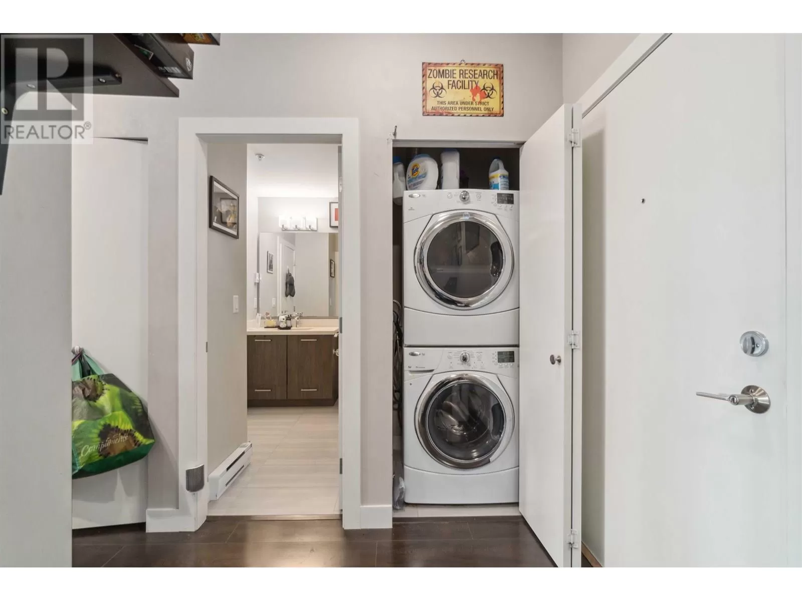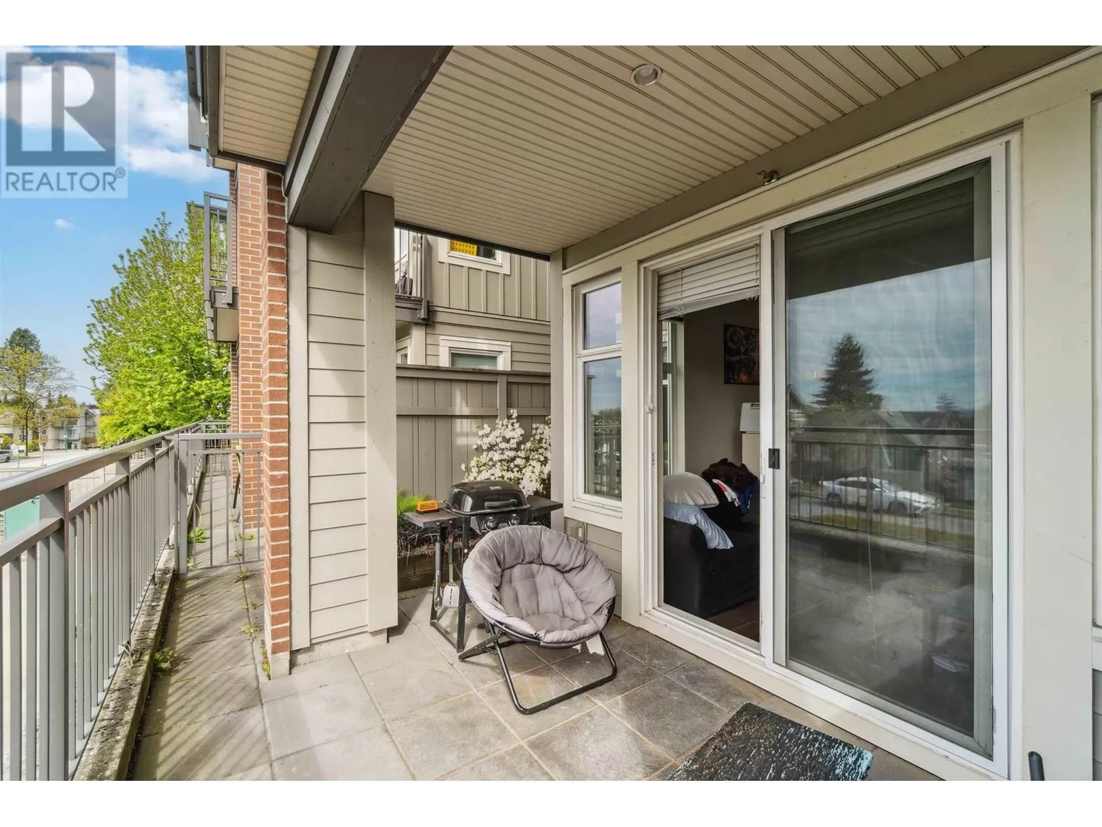 Great location in the Austin Heights neighborhood of West Coquitlam. Situated on a quiet side street, you can walk to Blue Mountain park, Vancouver Golf club or all the shopping and restaurants along Austin. The 4 storey Charland building with its historic brick architecture, features 9 foot ceilings, open plan layout, gourmet kitchen with quartz counters, custom designed cabinets, high end stainless steel appliances & centre island with built in microwave. Halogen pot lights & under cabinet lighting, Porcelain tile flooring in bathroom & laundry closet. Soaker tub with full height tile surround. In suite laundry with front loading stackable washer and dryer. 1 bedroom with a den area. Enjoy your outdoor living with a covered south facing patio. Great for investment or move in. (id:27476)