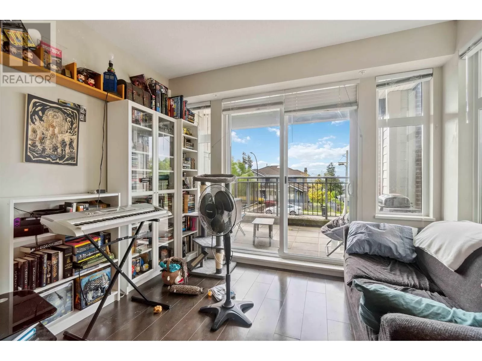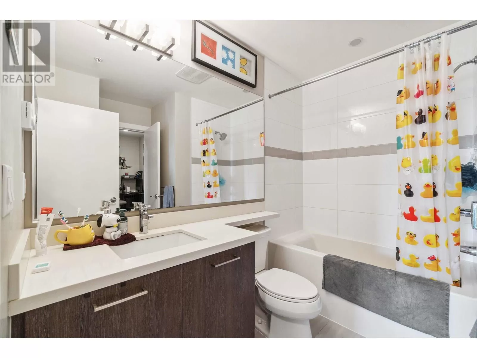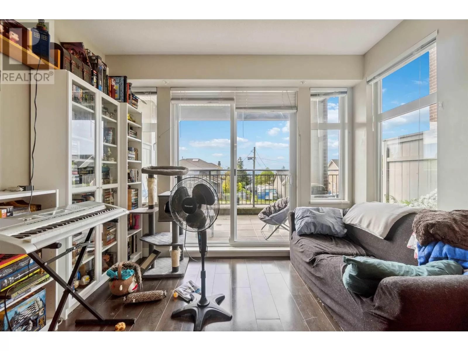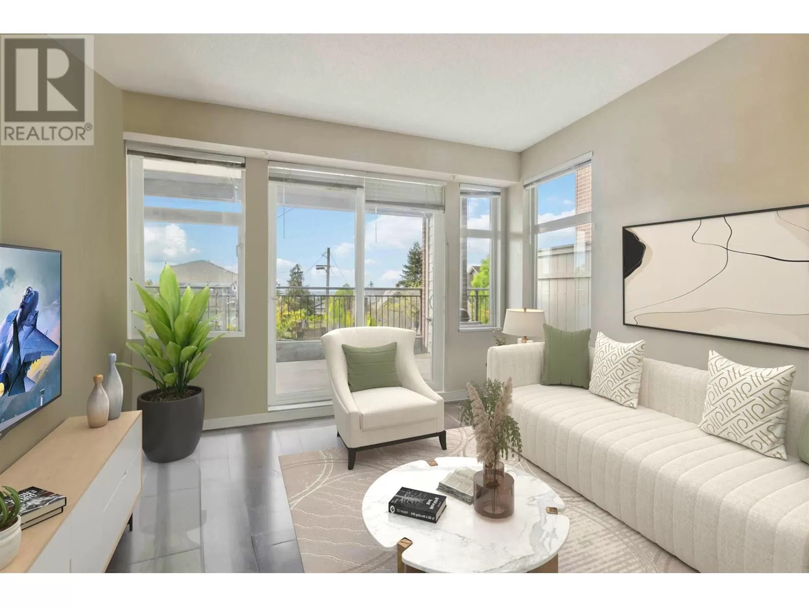 Great location in the Austin Heights neighborhood of West Coquitlam. Situated on a quiet side street, you can walk to Blue Mountain park, Vancouver Golf club or all the shopping and restaurants along Austin. The 4 storey Charland building with its historic brick architecture, features 9 foot ceilings, open plan layout, gourmet kitchen with quartz counters, custom designed cabinets, high end stainless steel appliances & centre island with built in microwave. Halogen pot lights & under cabinet lighting, Porcelain tile flooring in bathroom & laundry closet. Soaker tub with full height tile surround. In suite laundry with front loading stackable washer and dryer. 1 bedroom with a den area. Enjoy your outdoor living with a covered south facing patio. Great for investment or move in. (id:27476)