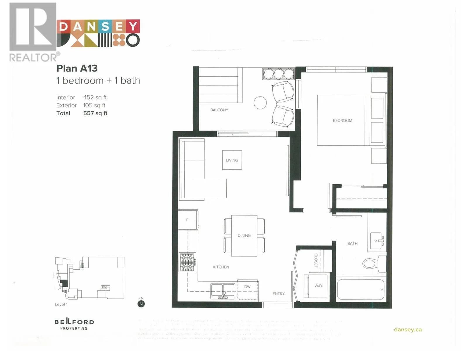 Condo presale assignment for sale at Dansey in West Coquitlam. Well designed, 452 square ft one bedroom, ground floor condo with a 105 square ft gated patio. 9' ceilings. open floorplan with no wasted space. A/C and HRV with Merv 13 air filters providing superior air filtration. Soft close cabinets and stainless steel appliances with integrated dishwasher and fridge. Square edge stone countertops with matching solid stone backsplash. Ensuite bathroom. Amenities: landscaped gardens, courtyard, dog wash area, children´s play area, yoga space and a gym, lounge and co-working spaces.Steel frame construction for superior durability, strength and longevity. EV ready parking stall and storage locker. Prime location near Vancouver Golf Club. Lougheed Centre Skytrain - 10 min walk. Estimated completion is Winter 2025. (id:27476)