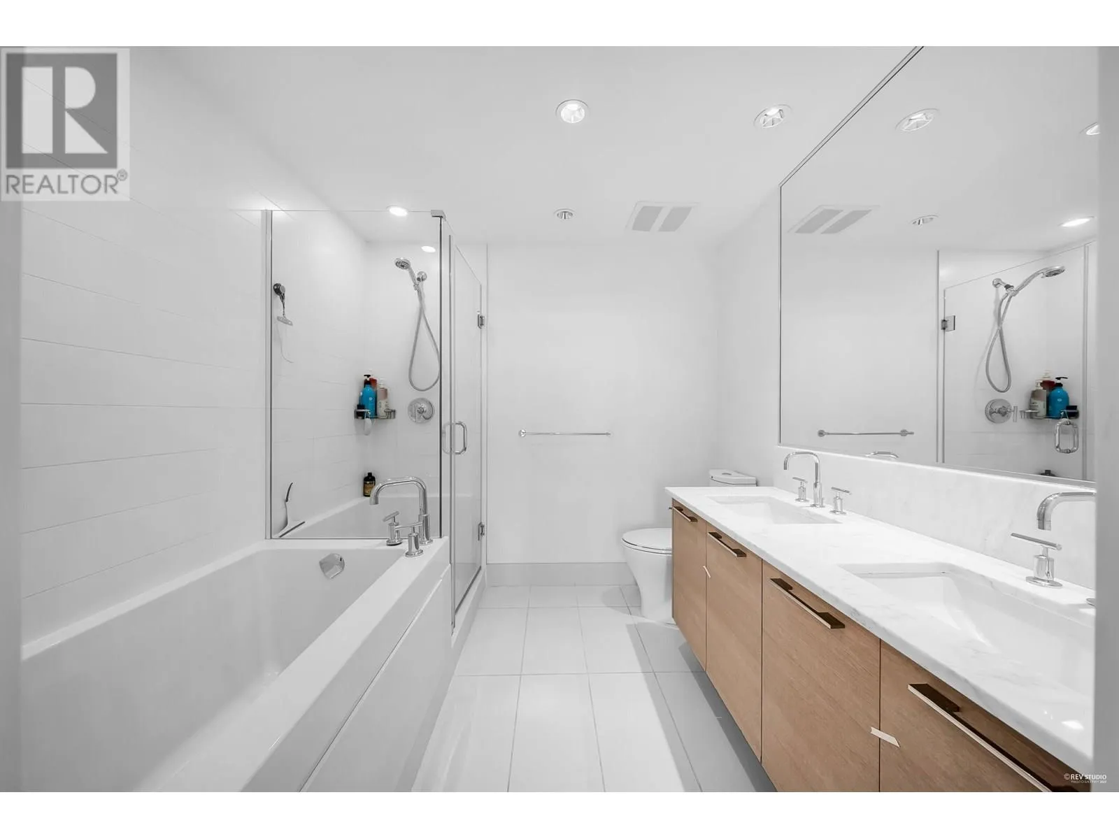 Iconic M3 by CRESSEY! CENTRALLY LOCATED at the heart of Coquitlam Center! This stunning SOUTH FACING bright 2 bed 2 bath home offers the best layout in the building. Famous Cressey gourmet kitchen with high end S/S appliances offers a gas cooktop, wall oven, quartz countertops with glass tile backsplash! Durable and contemporary wide plank laminate flooring throughout and 8'8 overheight ceilings! Spacious Master bedroom with spa-inspired ensuite with heated floors & luxurious marble countertops in the main bathroom. World class amenities including concierge, gym, games & lounge area with grand piano. Super location with walking distance to Coquitlam Town Centre, Sky train, Lafarge Lake, Douglas College. CALL TO BOOK APPT TODAY! (id:27476)
