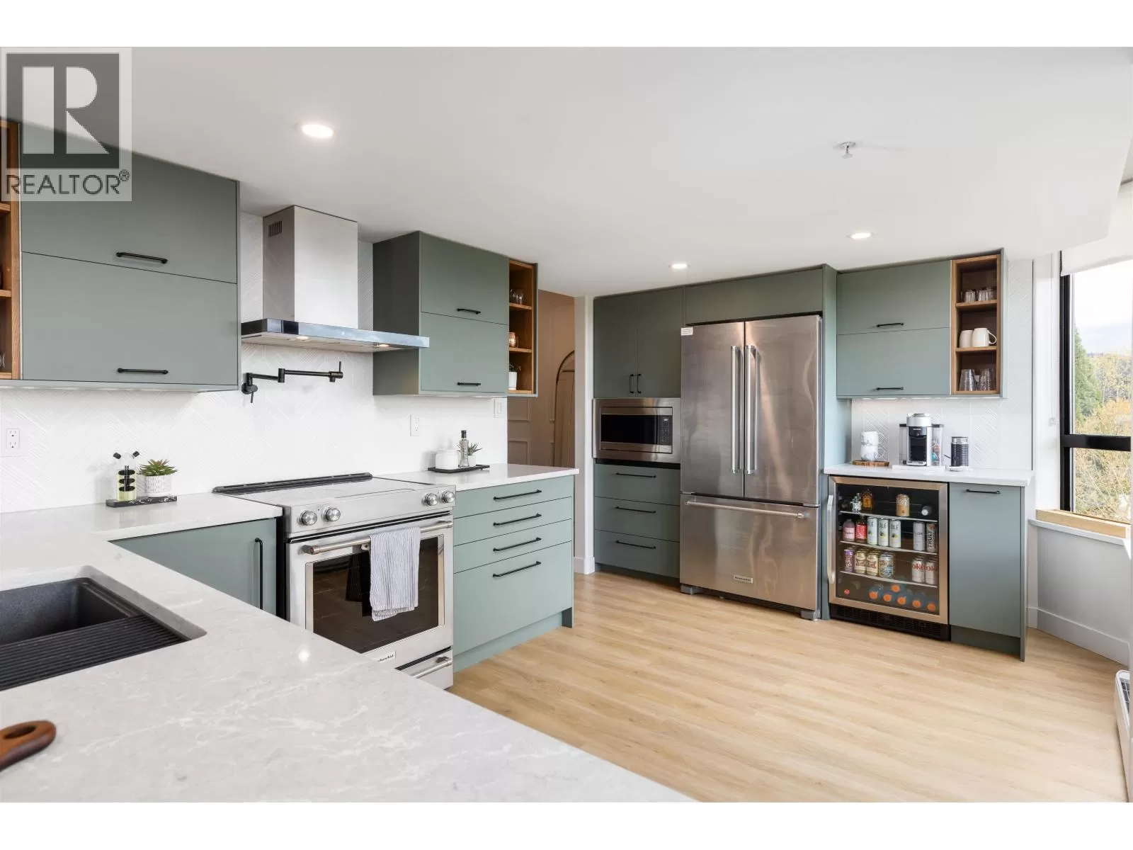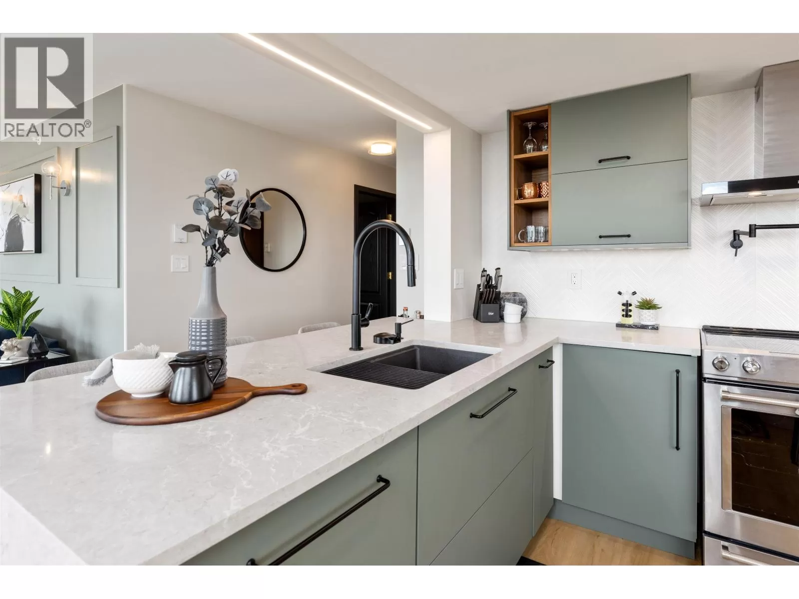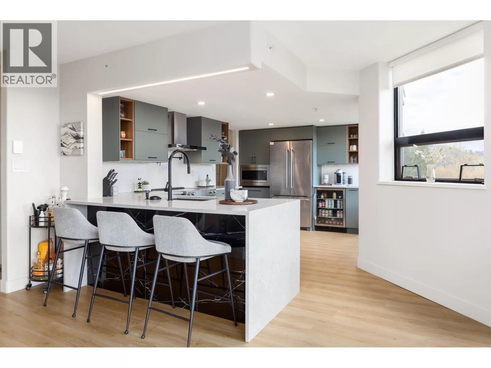This beautifully updated SW corner home offers a rare combination of indoor comfort & exceptional outdoor living with an expansive 1,900 sq/ft private patio perfect for entertaining, featuring panoramic views of the city & Mt. Baker. Inside, the open-concept layout boasts a modern kitchen with a large island, updated appliances & new flooring throughout. Floor-to-ceiling windows fill the spacious living area with natural light, while the bathrooms have been stylishly renovated for a contemporary feel. Additional highlights include 2 parking stalls, 2 storage lockers, access to an indoor pool & gym & a proactive strata that has recently completed building re-piping. Located in a central, walkable neighbourhood just step to SkyTrain & Shopping. (id:27476)