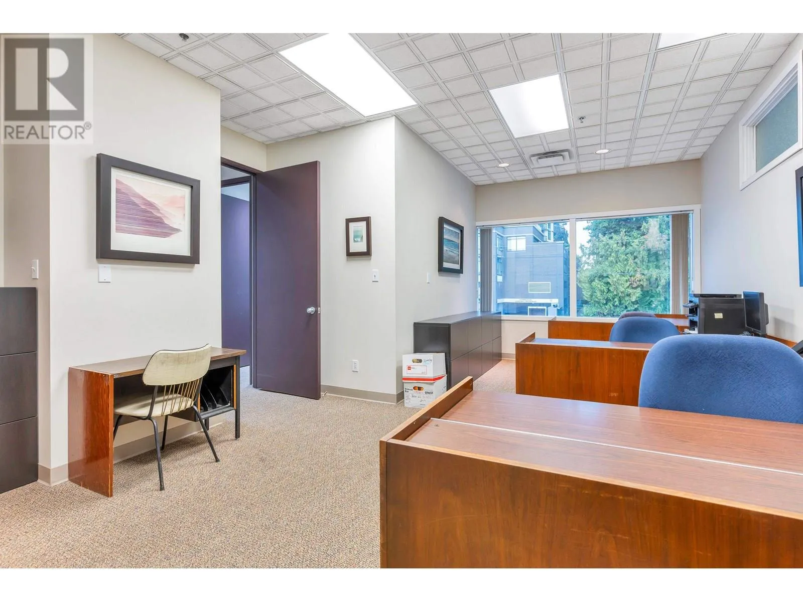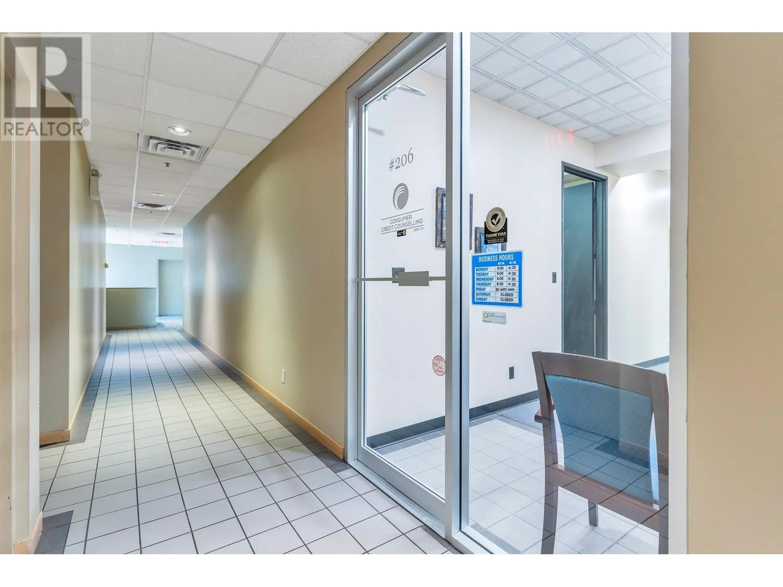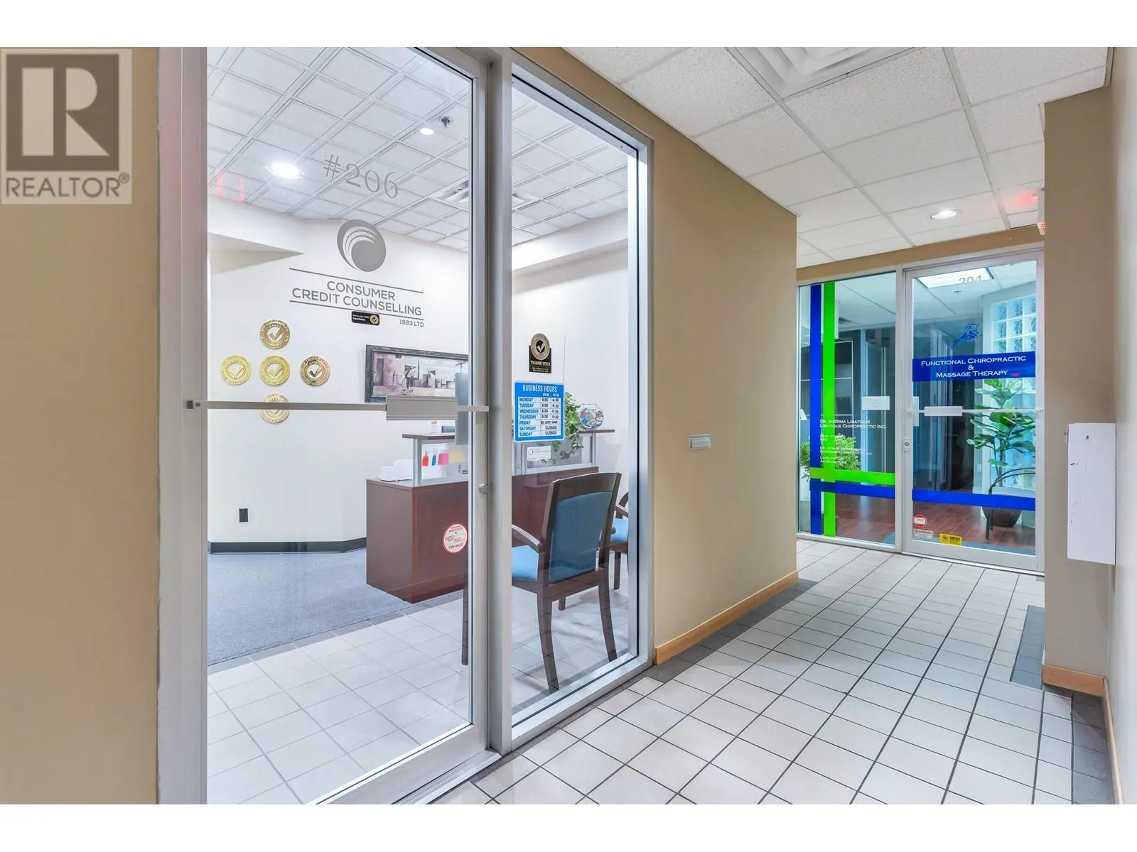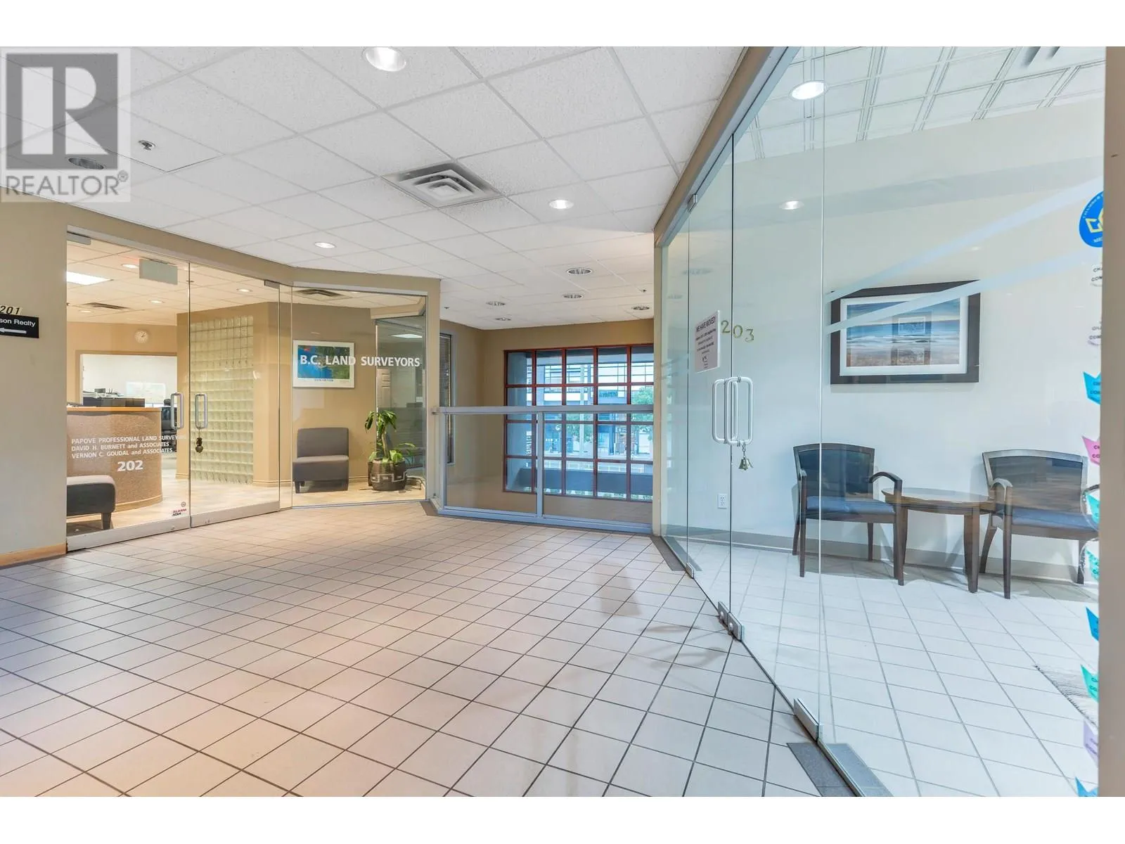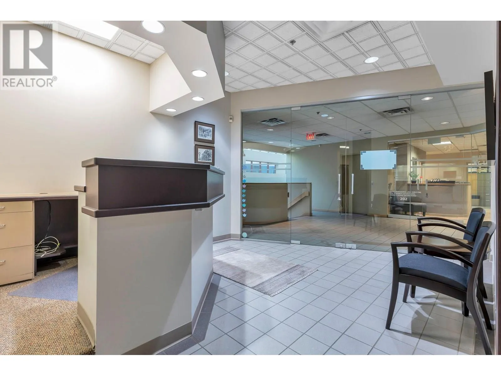Rarely Available, Large Office Space with mortgage helper or future expanding possibilities. This space is divided into 2 units (still assessable thru a connecting door) in one Strata Lot. Impressive First suite at the top of the stair case w/Large Glass Exposure (elevator available immediately across the open foyer) Unit #203 is the largest set up w/a nice reception/waiting area, formal meeting room, 2 private offices, larger open work area for 3 desks, & staff room w/small kitchen. Perfect for an owner occupier while Unit #206 can easily rent for $2,500+ a month as smaller suites are always in demand. This unit offers a reception and waiting area, 3 offices and a storage room or make the front large office a meeting/board room. Grow into the second suite later! 3 Underground parking included with the Strata Lot & Loads of Visitor Parking. Now Vacant & Ready for Occupancy ASAP! (id:27476)