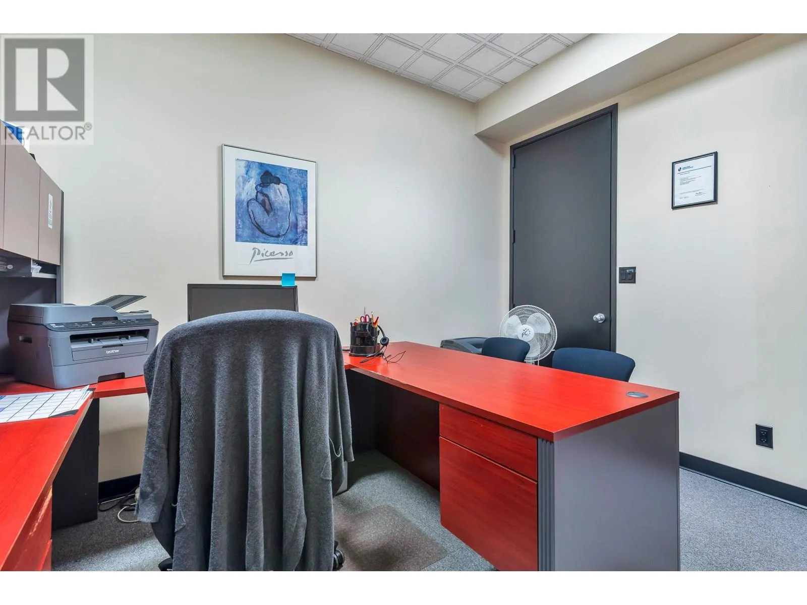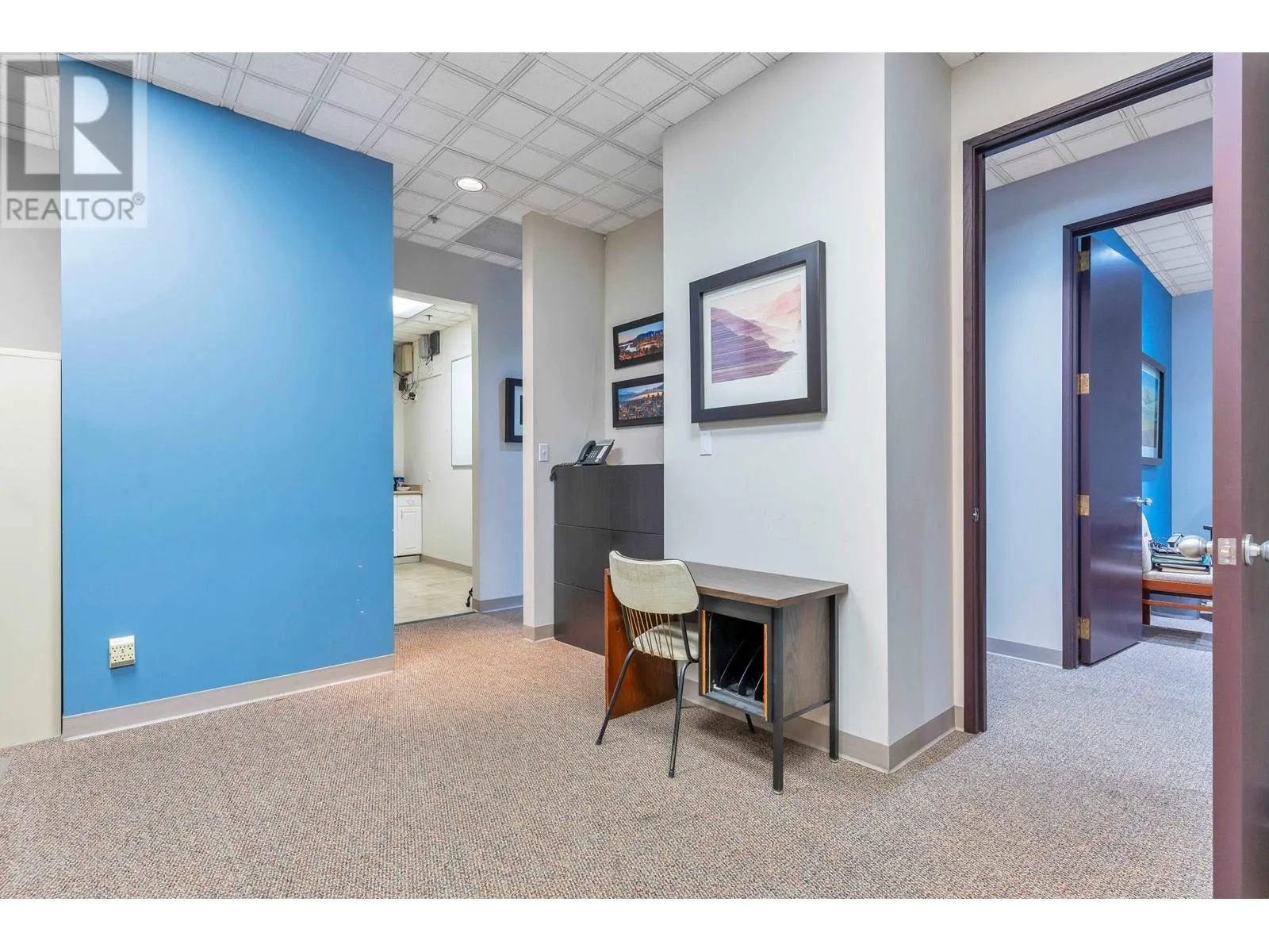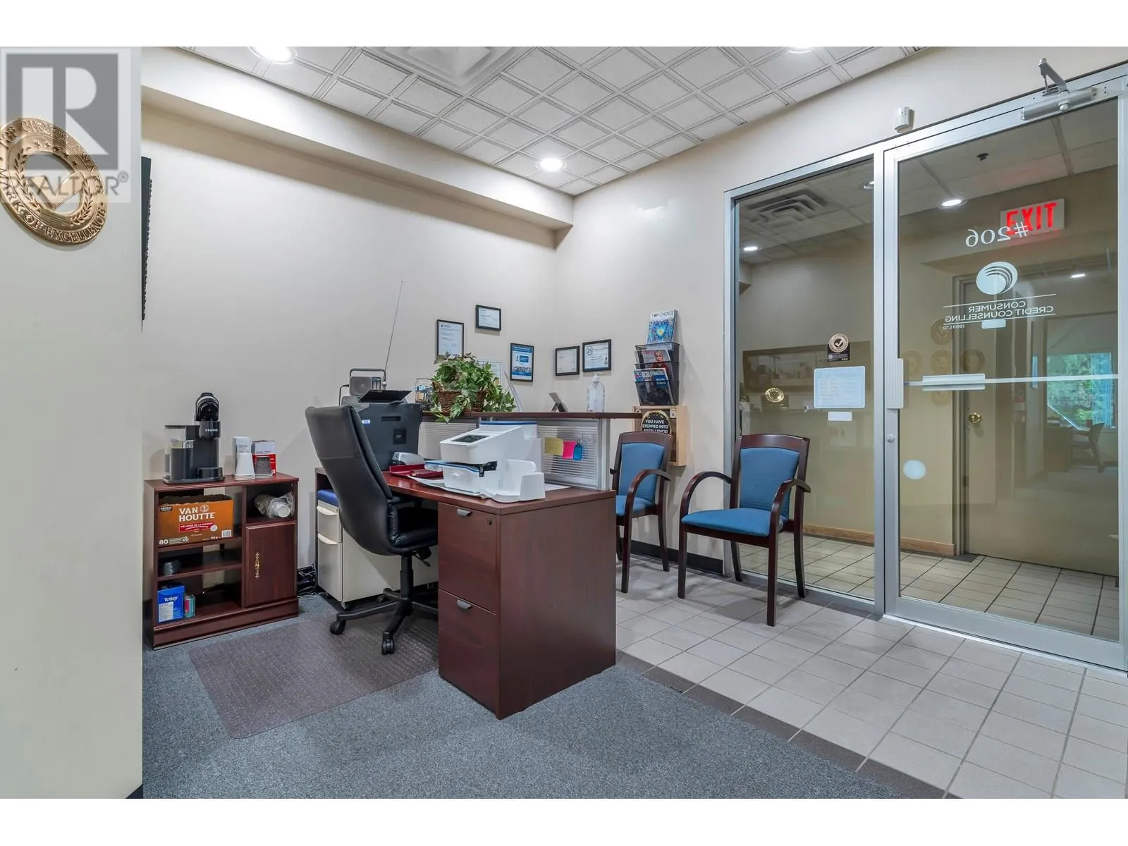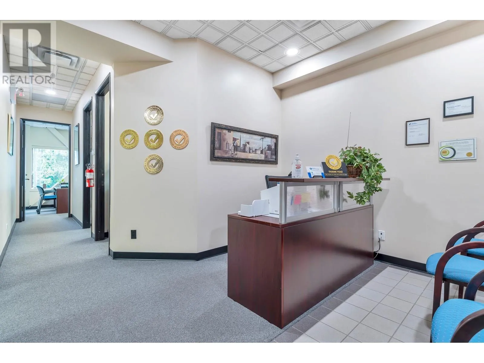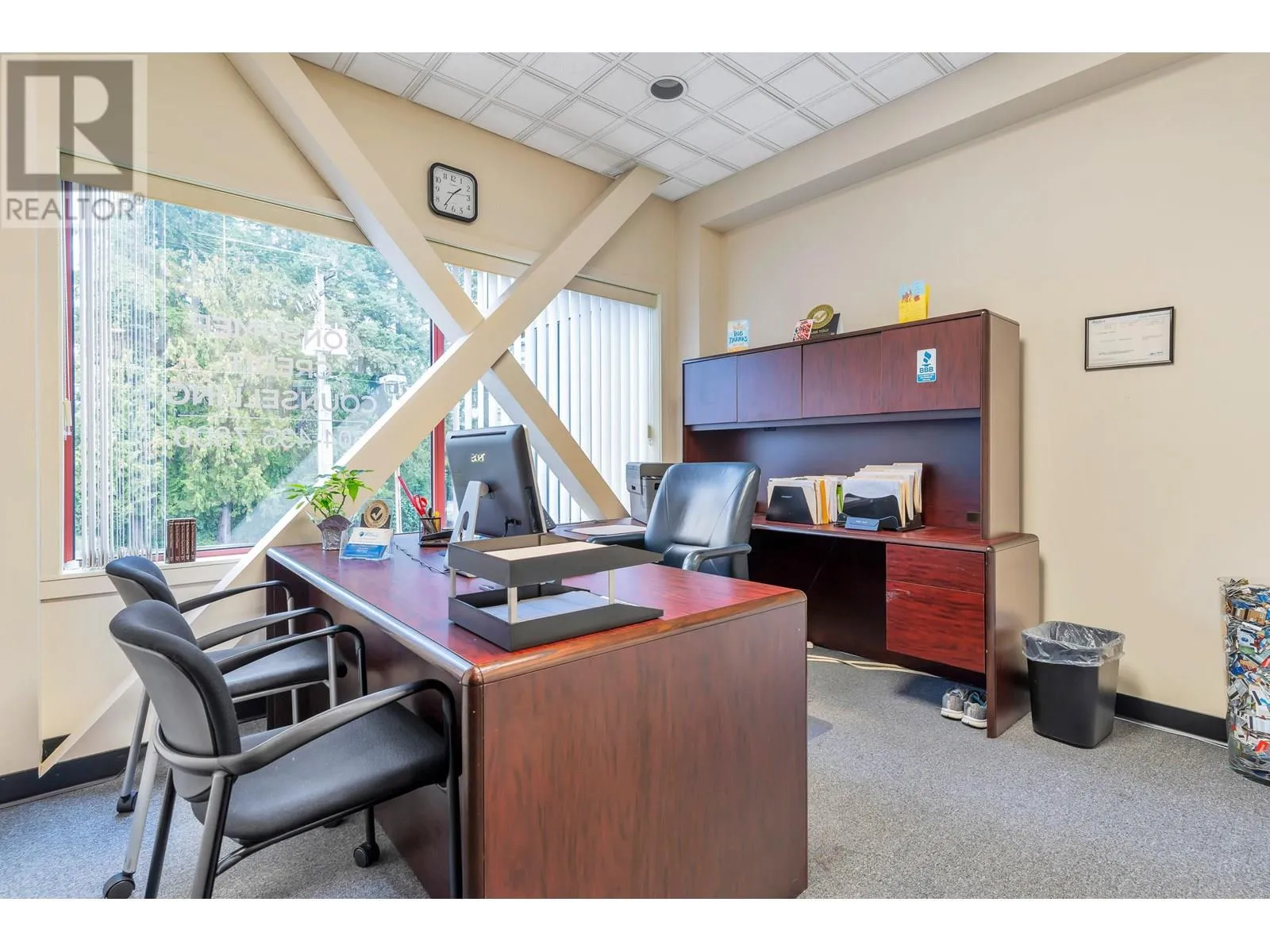 Rarely Available, Large Office Space with mortgage helper or future expanding possibilities. This space is divided into 2 units (still assessable thru a connecting door) in one Strata Lot. Impressive First suite at the top of the stair case w/Large Glass Exposure (elevator available immediately across the open foyer) Unit #203 is the largest set up w/a nice reception/waiting area, formal meeting room, 2 private offices, larger open work area for 3 desks, & staff room w/small kitchen. Perfect for an owner occupier while Unit #206 can easily rent for $2,500+ a month as smaller suites are always in demand. This unit offers a reception and waiting area, 3 offices and a storage room or make the front large office a meeting/board room. Grow into the second suite later! 3 Underground parking included with the Strata Lot & Loads of Visitor Parking. Now Vacant & Ready for Occupancy ASAP! (id:27476)