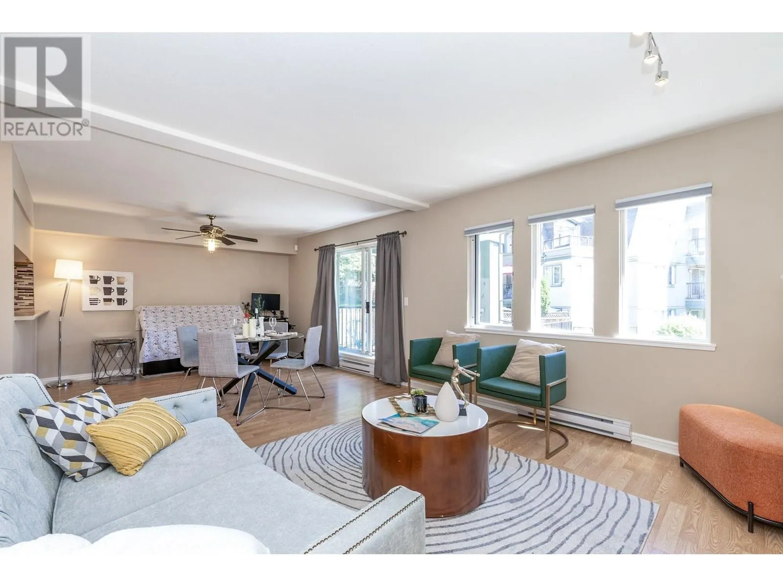 This charming 2-level, 2 bedroom, 1.5 bath townhome offers a perfect blend of comfort and function. Nestled on the top floor of a fully rainscreened building, it welcomes you with natural light, a warm gas fireplace in the living room, two spacious bedrooms, in-suite laundry, and two private sundecks-ideal for morning coffee or quiet evenings. The hot water tank was just replaced in 2025, giving you peace of mind. With a thoughtful layout, two side-by-side parking spots, and a large storage locker, this home is as practical as it is inviting. You'll love the unbeatable location-just minutes to SkyTrain, Superstore, T&T, IKEA, community centre, parks, and schools, with quick access to Hwy 1 & 7. The building roof was replaced in 2024. Open House Saturday September 27) 1-3 pm. (id:27476)