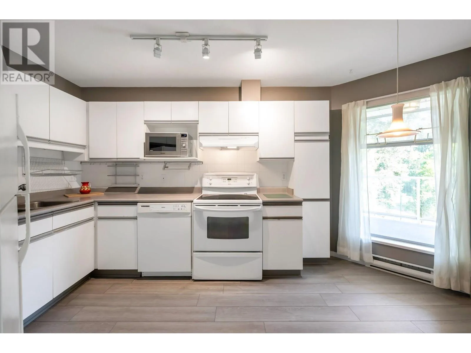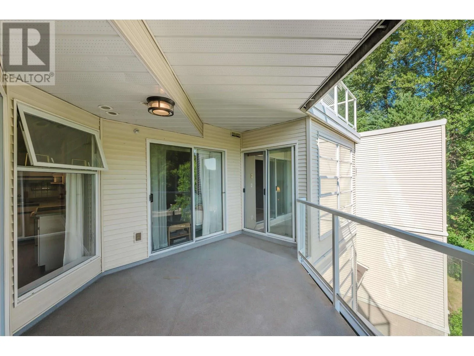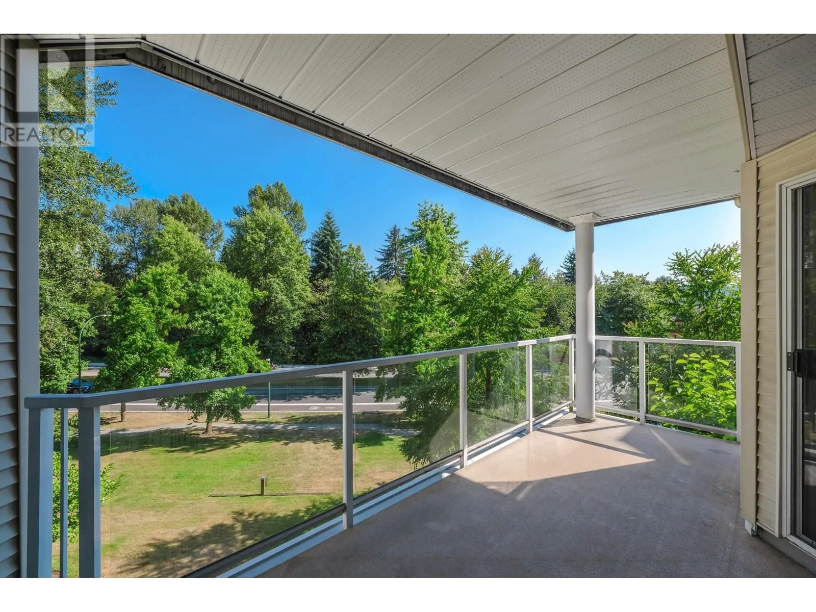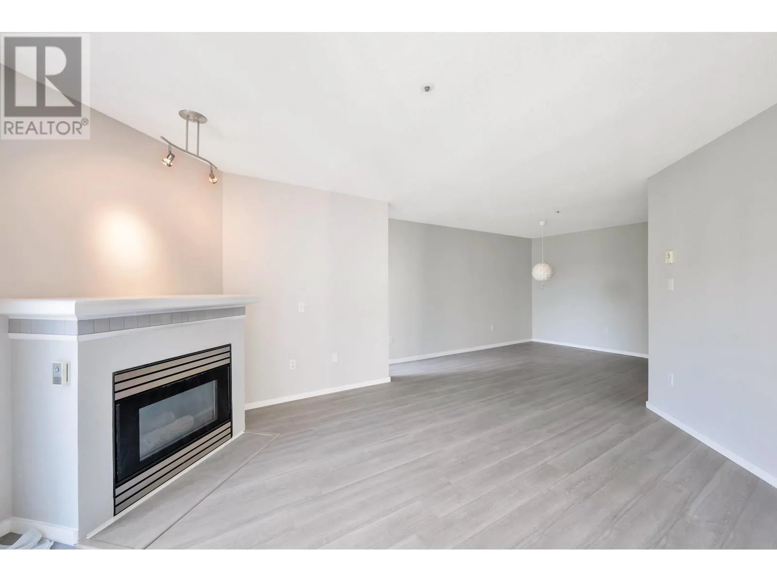 Welcome to Mountainside Place! This 3rd floor corner unit faces south and offers 2 bedrooms, 2 bathrooms, a den/solarium, gas fireplace, and 1103 square ft of well-maintained living space with new laminate flooring. Floor-to-ceiling windows brighten the open-concept living and dining area, which opens to a generous balcony. Both bedrooms have balcony access; the primary features a walk-in closet and 4-piece ensuite. 2 parking spots near the elevator, in suite laundry, storage locker, and ample visitor parking. Walk score of 90! Close to Coquitlam Centre, Lafarge Lake, SkyTrain, Douglas College, Hoy Creek and more. Pet-friendly, rain screened building with gym and amenity room. (id:27476)