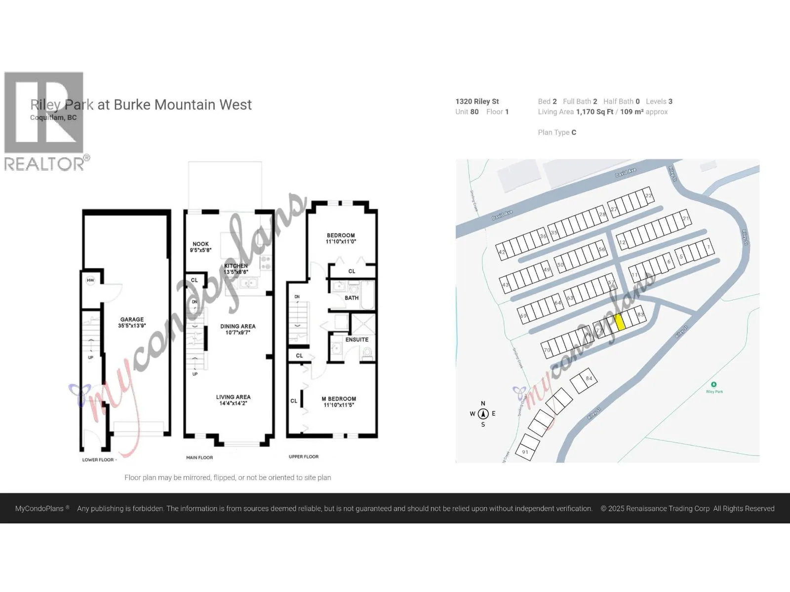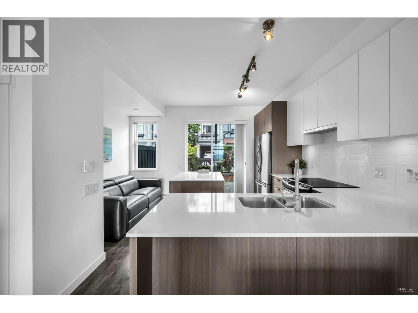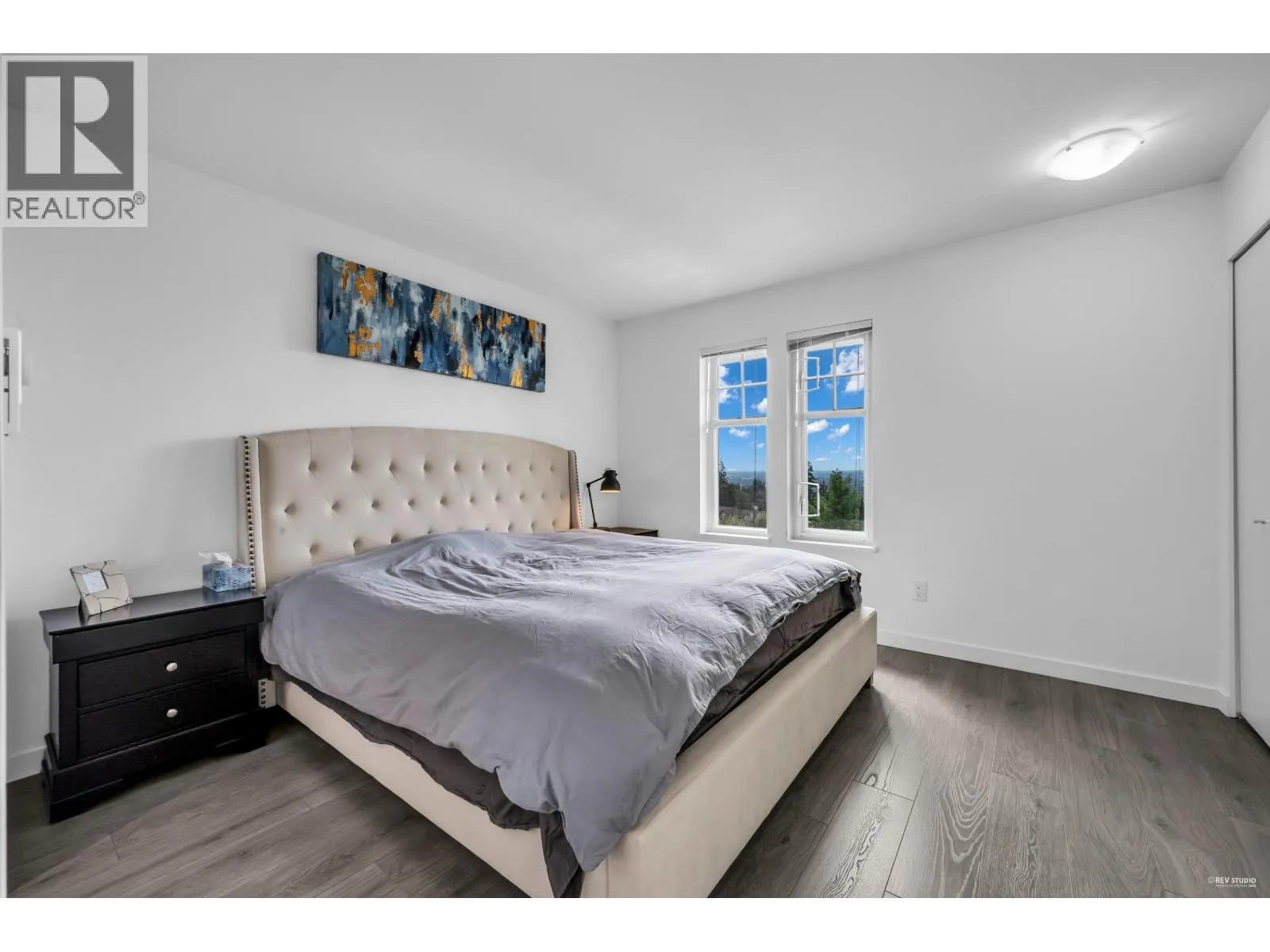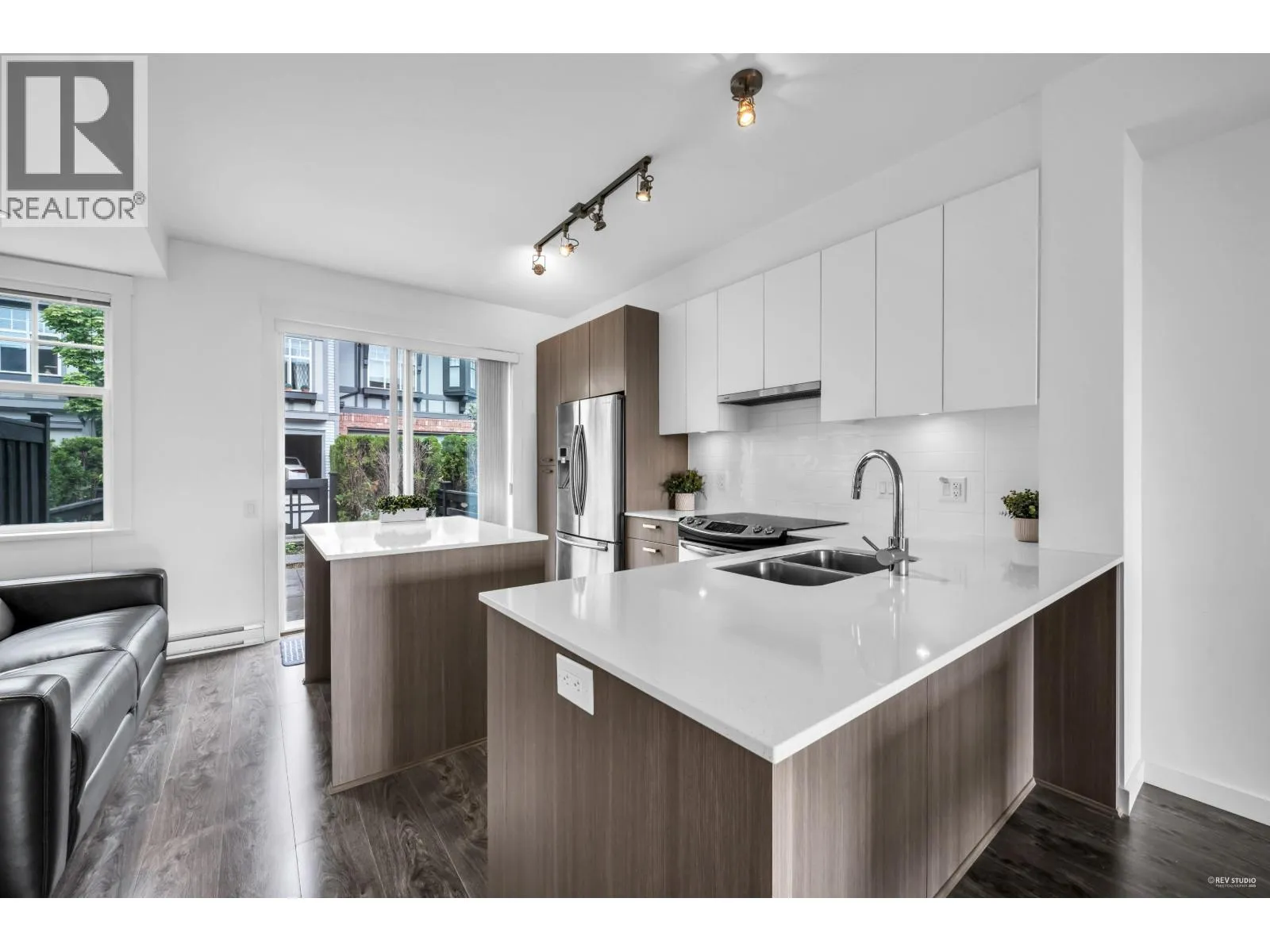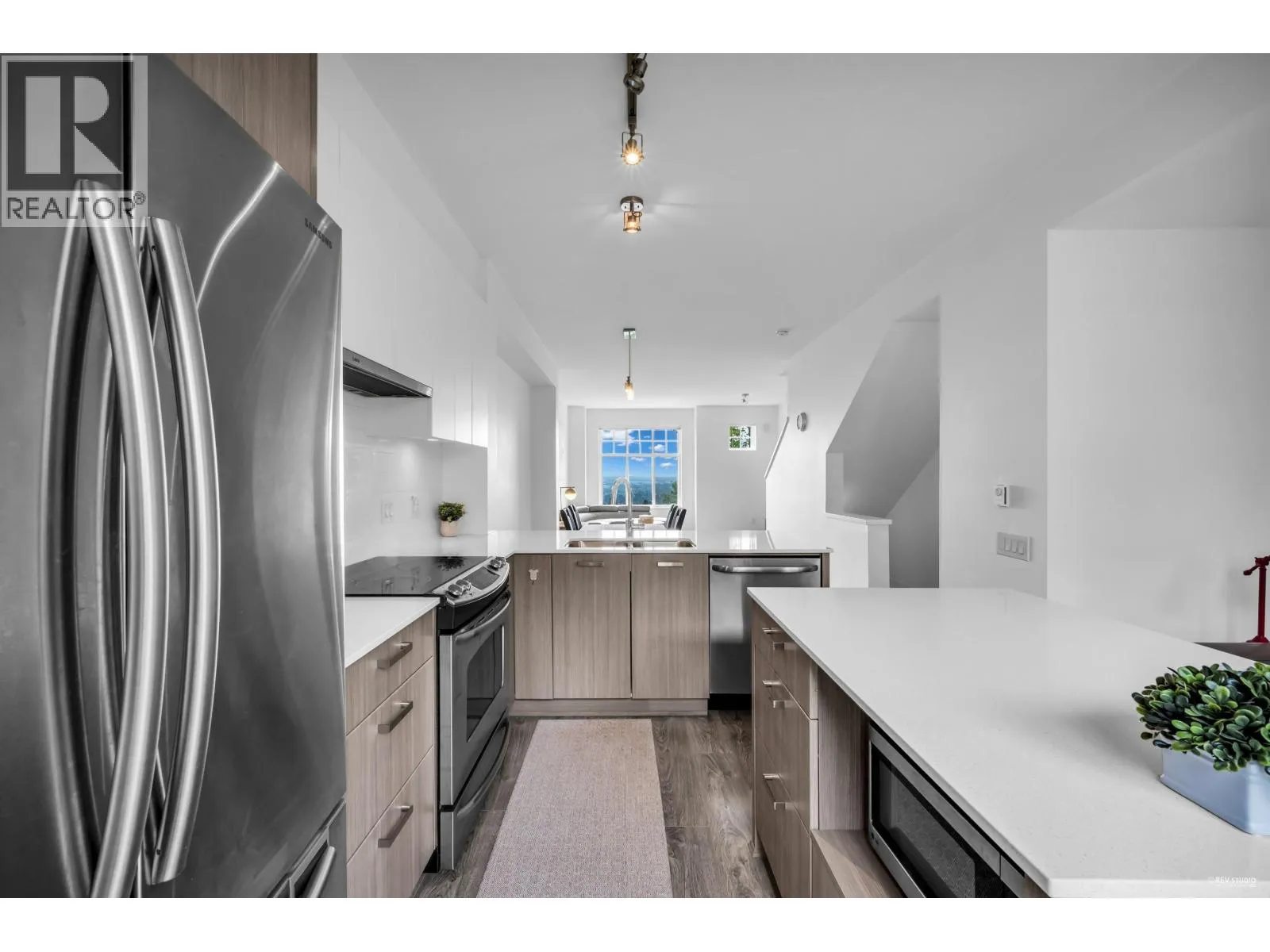 Welcome to this bright and spacious two-bedroom townhome in the desirable Riley complex at Burke Mountain. Enjoy breathtaking panoramic views from the open-concept living and dining areas. The modern kitchen features stainless steel appliances, two-tone cabinetry, an island, and a cozy breakfast nook, with direct access to a large, private yard-perfect for entertaining. Upstairs, the primary bedroom offers stunning views, dual closets, and a stylish ensuite with a walk-in shower. A second bedroom is located near a full family bathroom. The tandem garage accommodates two vehicles and includes extra space for storage or a workbench. Visitor parking and mailboxes are conveniently located just outside. Close to trails, parks, top schools, transit, and shopping. Open House: 11/1(Sat) 2-4PM (id:27476)