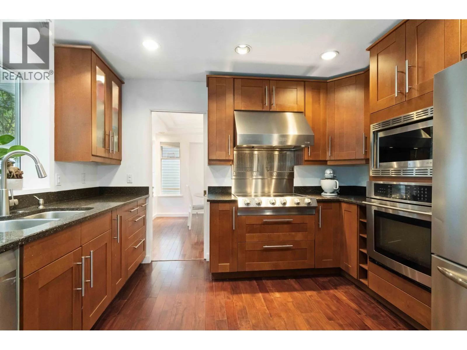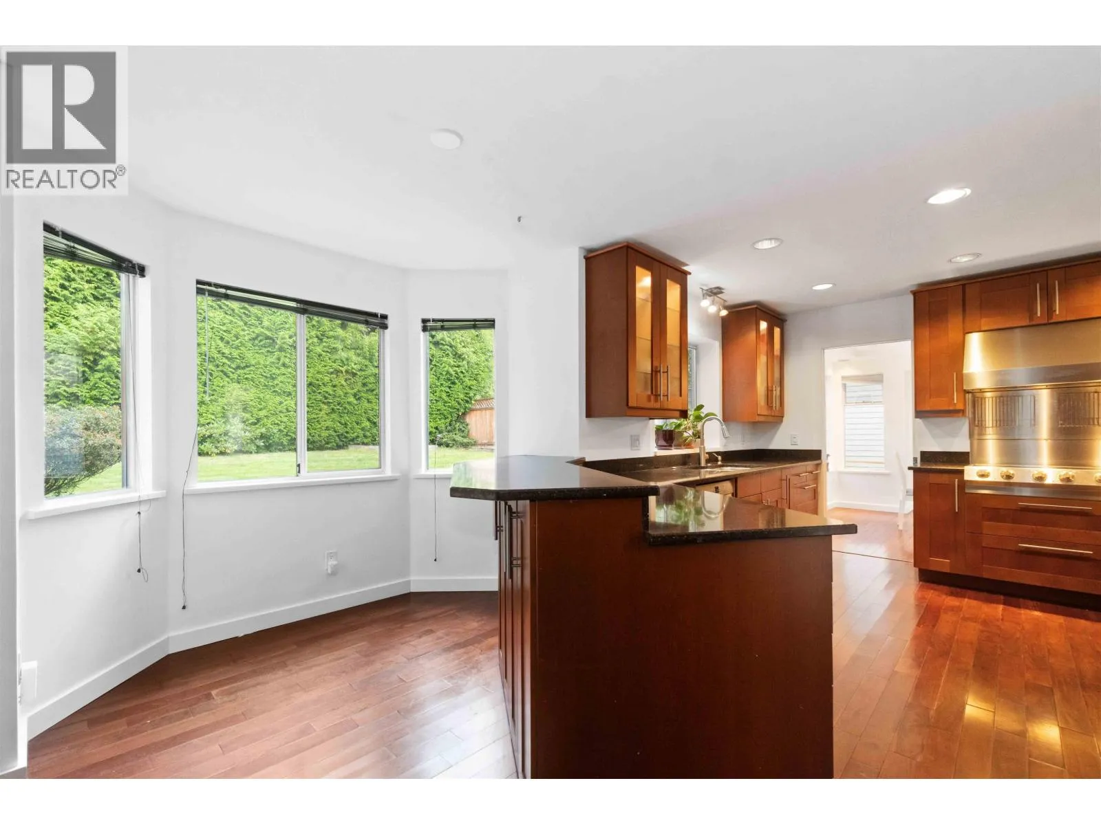 Spacious & private family home on a quiet cul-de-sac in desirable Westwood Plateau. Generous windows let in lots of natural light & offer a great view of the back yard from every room on the main floor. Spacious kitchen with stainless steel appliances, granite, breakfast bar, eating area & is adjacent to the family room with cozy fireplace & sliders to the patio & secluded rear yard. Sunken living room w/vaulted ceilings, separate dining, laundry & den finish the main. Large primary bedroom has a 4 piece ensuite & a sizable deck that overlooks the yard. Recreation room with wet bar, office, 4th bedroom, bathroom & storage are below. A/C, inground sprinklers & beautiful hardwood floors. Amazing location, with proximity to great hiking trails, close to shopping, excellent schools & recreation. (id:27476)