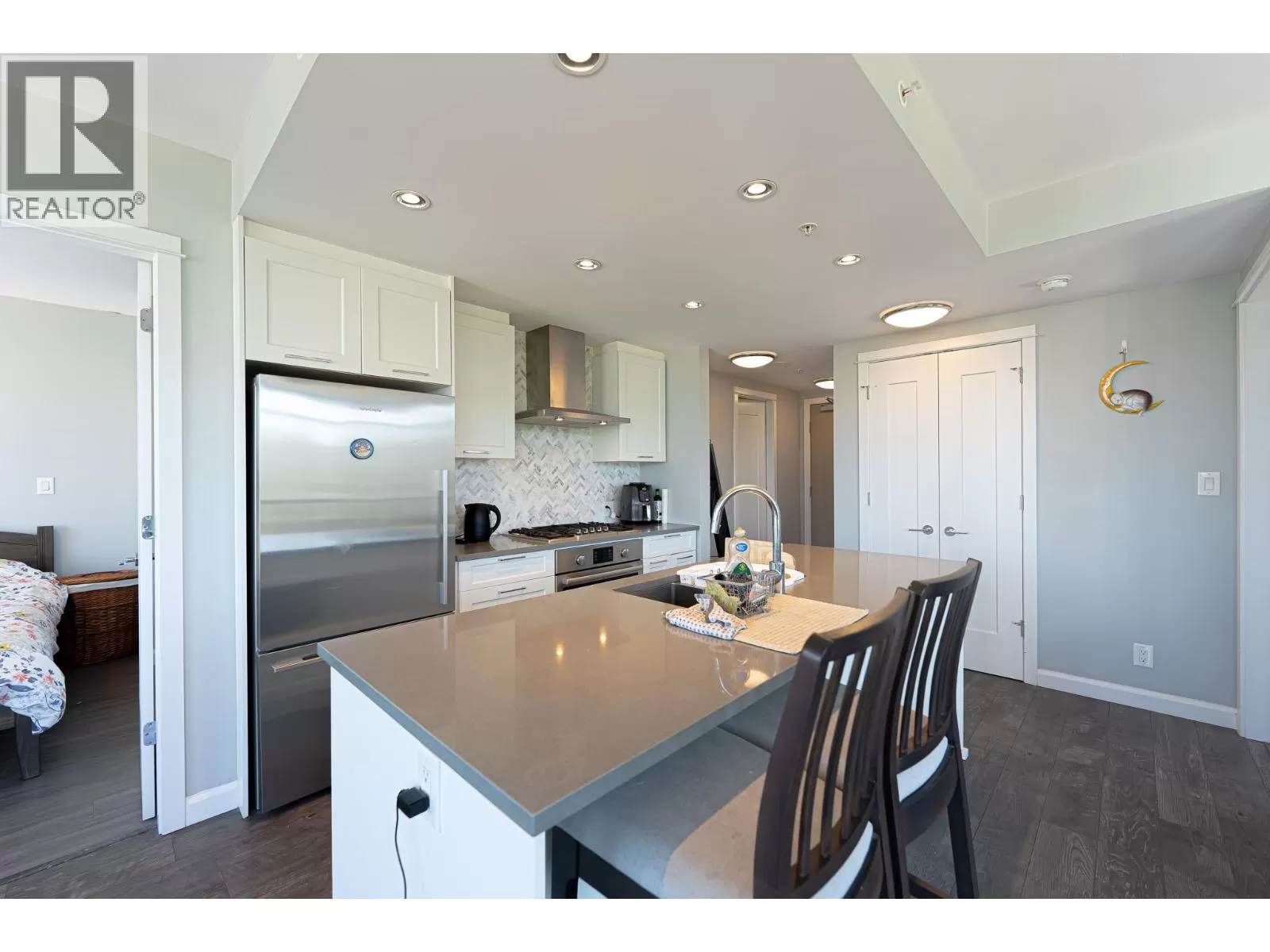 RARELY AVAILABLE North facing 2Bed 2Bath unit in beautiful CROWN by Beedie. Highly desired layout with bedrooms on opposite sides, giving each bedroom extra privacy. Open concept kitchen/dining/living area with floor to ceiling windows provide plenty of natural light and VIEWS of Burnaby & the mountains. Gourmet kitchen w/guartz counters and European s/s appliances, comfortable bathrooms & luxury laminate floors throughout, excellent for comfort luxury living. Building w/almost 6000 sqft amenities, including club house, fitness center, yoga studio, outdoor fireplace & BBQ, furnace patio and guest suite. Short stroll to skytrain, bus loop, Safeway, YMCA, & plenty of restaurants/stores. 5 min to SFU, 5 min to Lougheed Mall, 5 min to HWY, 15 min to Metrotown. (id:27476)